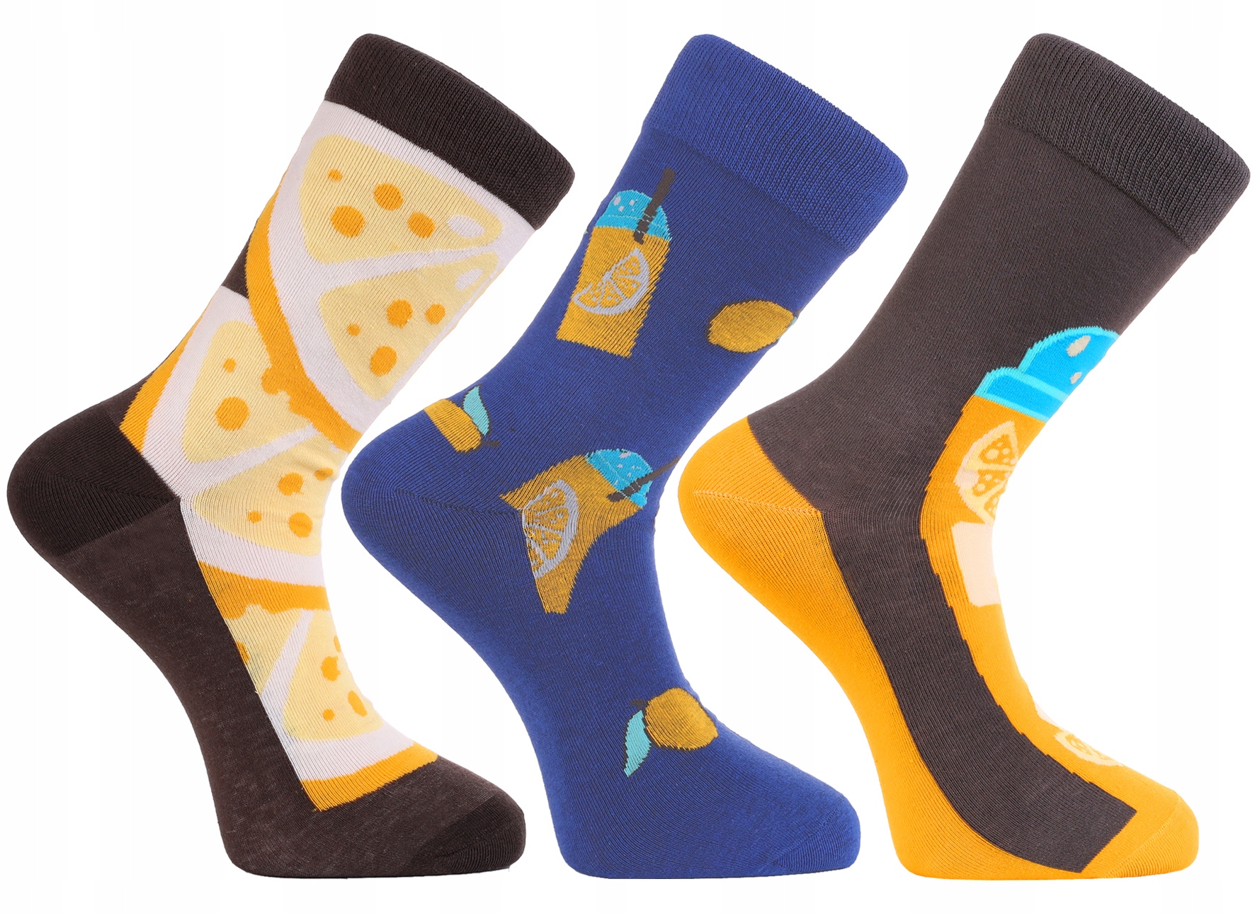 Skarpety męskie z motywem lemoniady, idealne dla mężczyzn lubiących kolorowe wzornictwo. Pasują również do stylizacji na luzie.