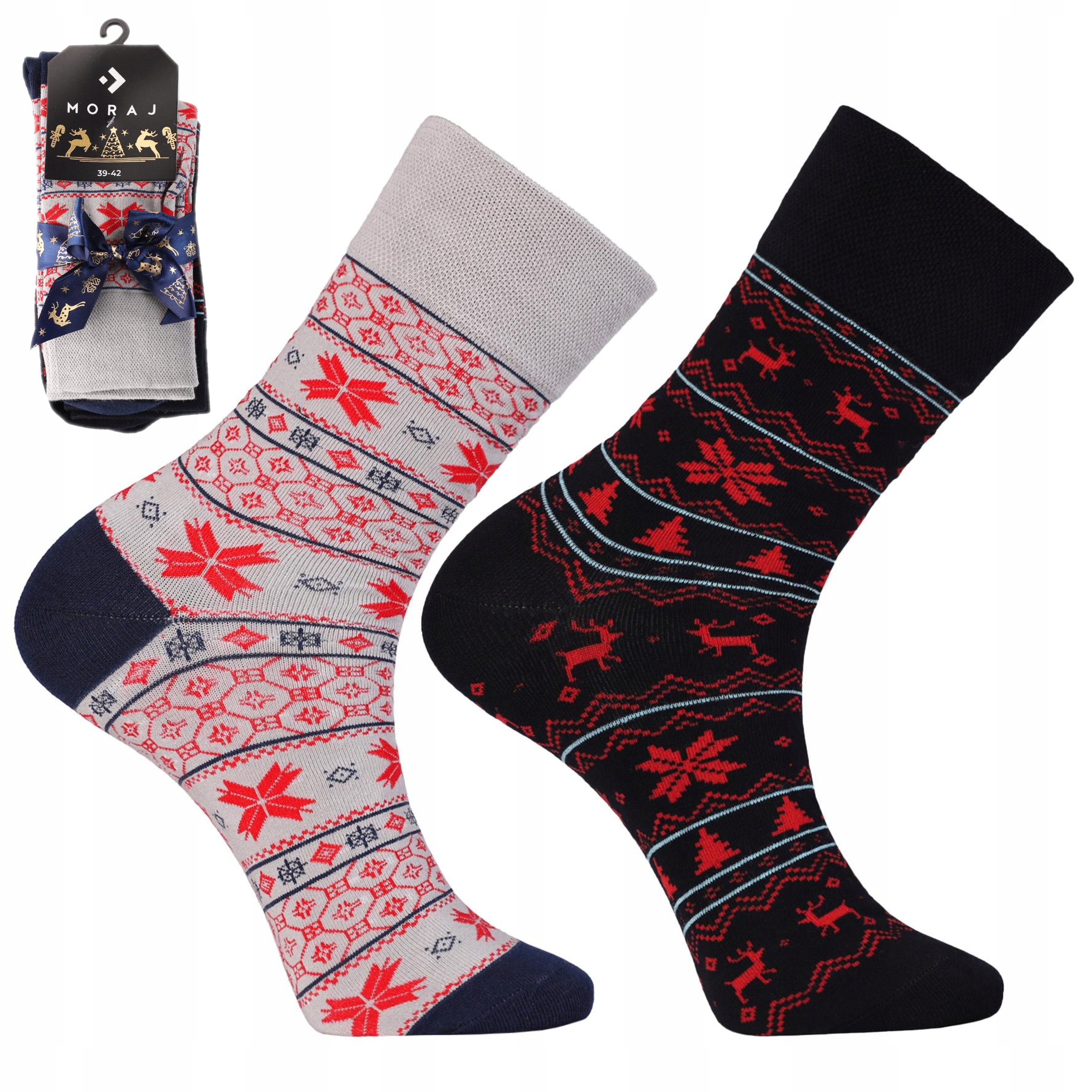 SKARPETY ŚWIĄTECZNE Męskie PREZENT NA ŚWIĘTA ze Wstążką 2-PAK MORAJ