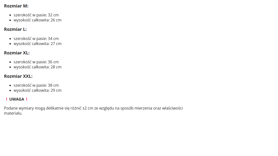 Rozmiar | OBWÓD W PASIE |