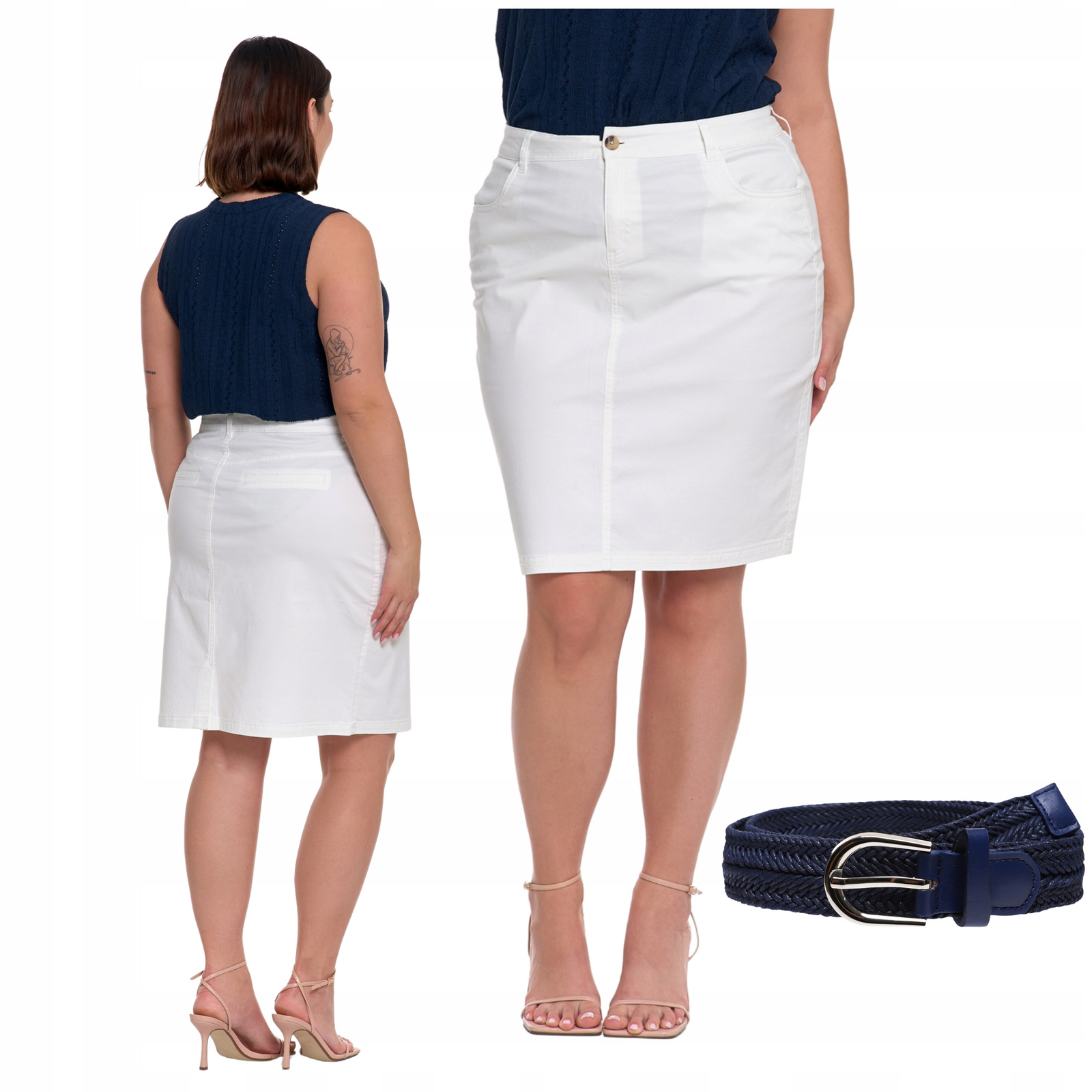 SPÓDNICA DAMSKA Ołówkowa Dopasowana Spódniczka z Paskiem Gładka MORAJ