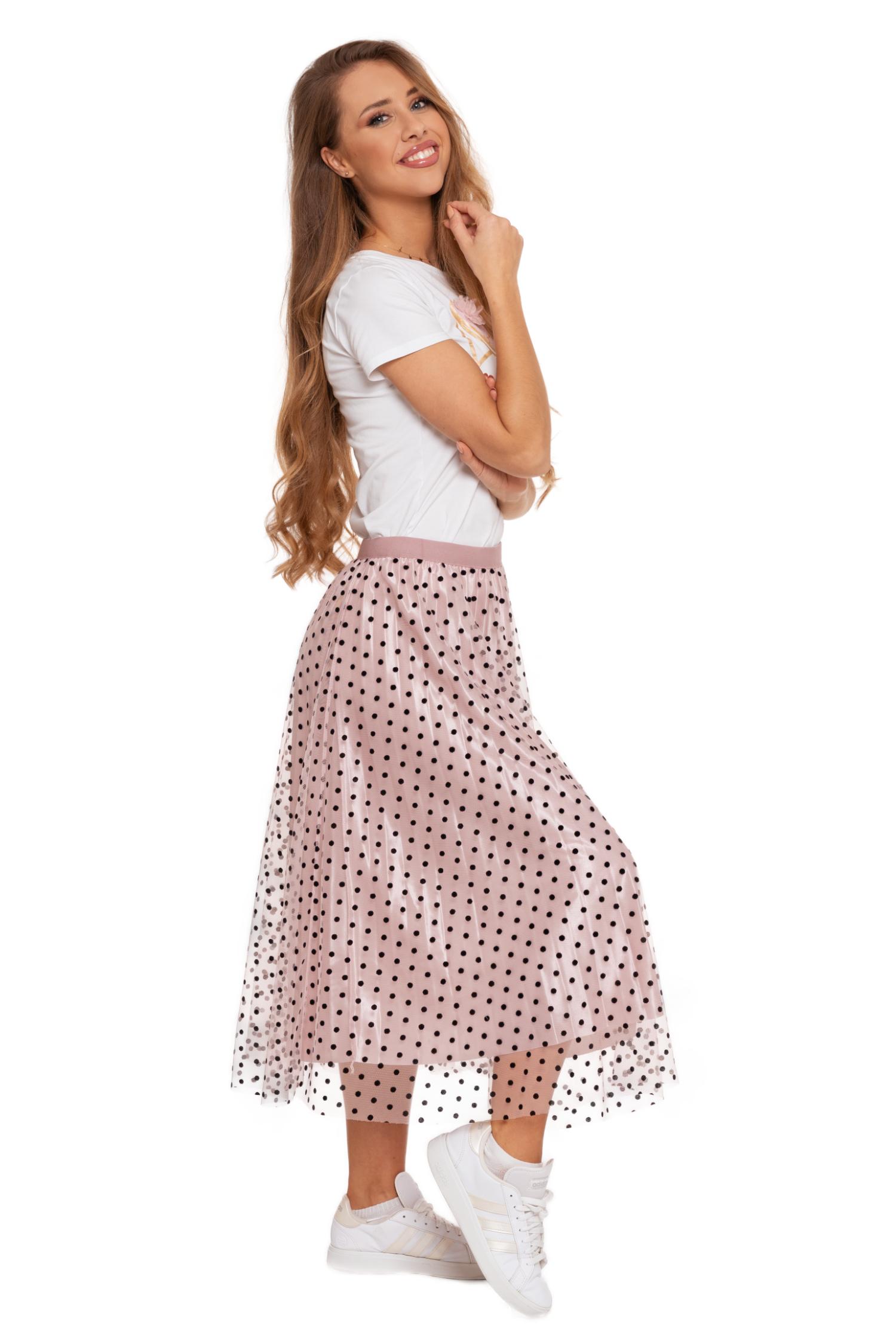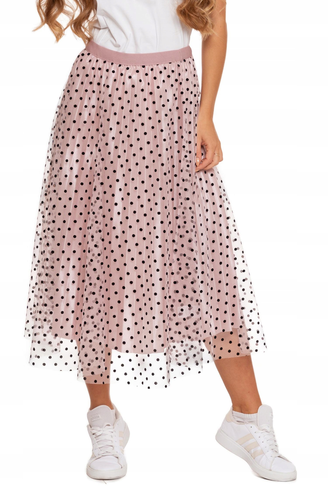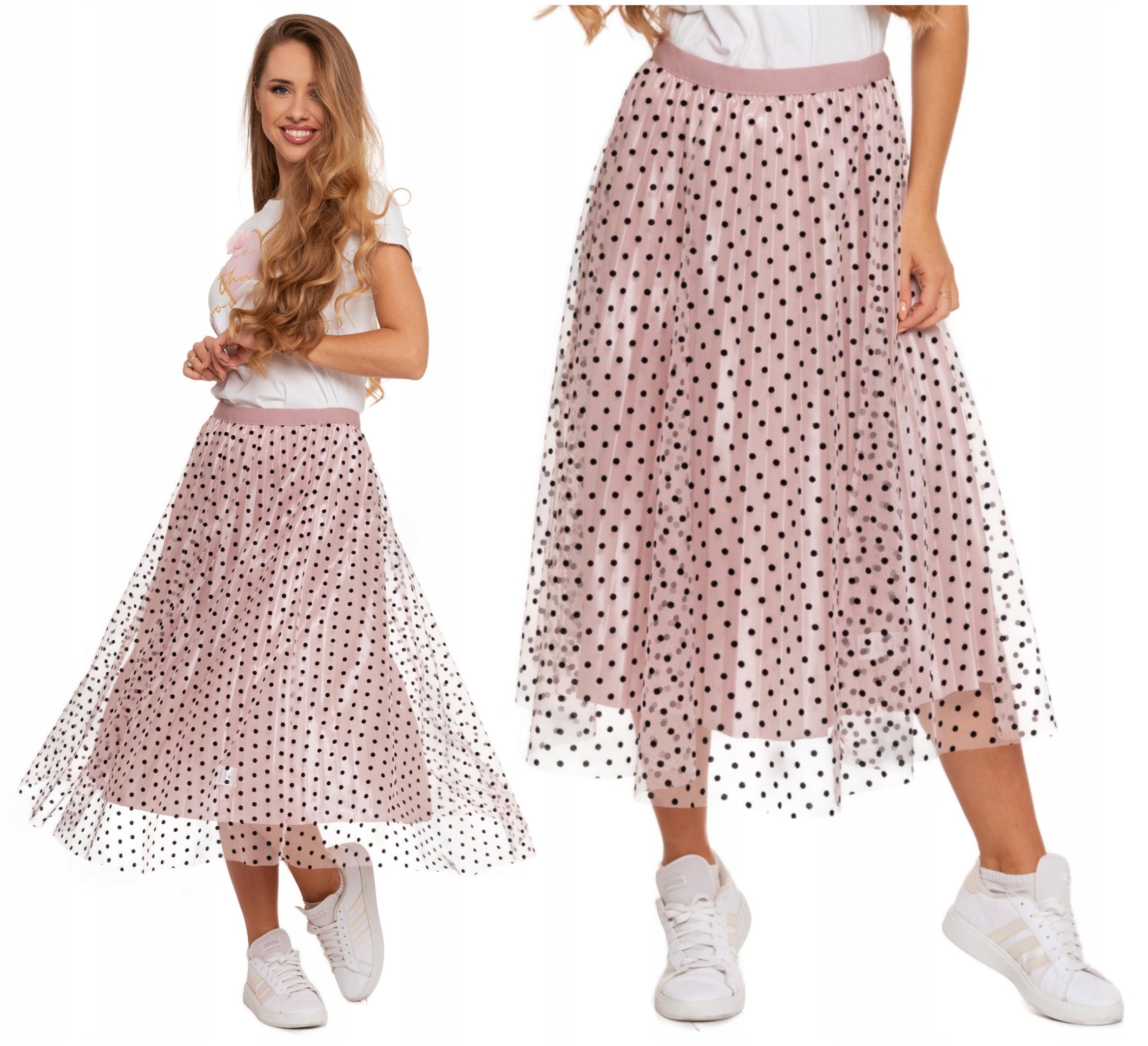 Spódnica Damska Tiulowa Elegancka Modna Zwiewna Różowa w Groszki MORAJ