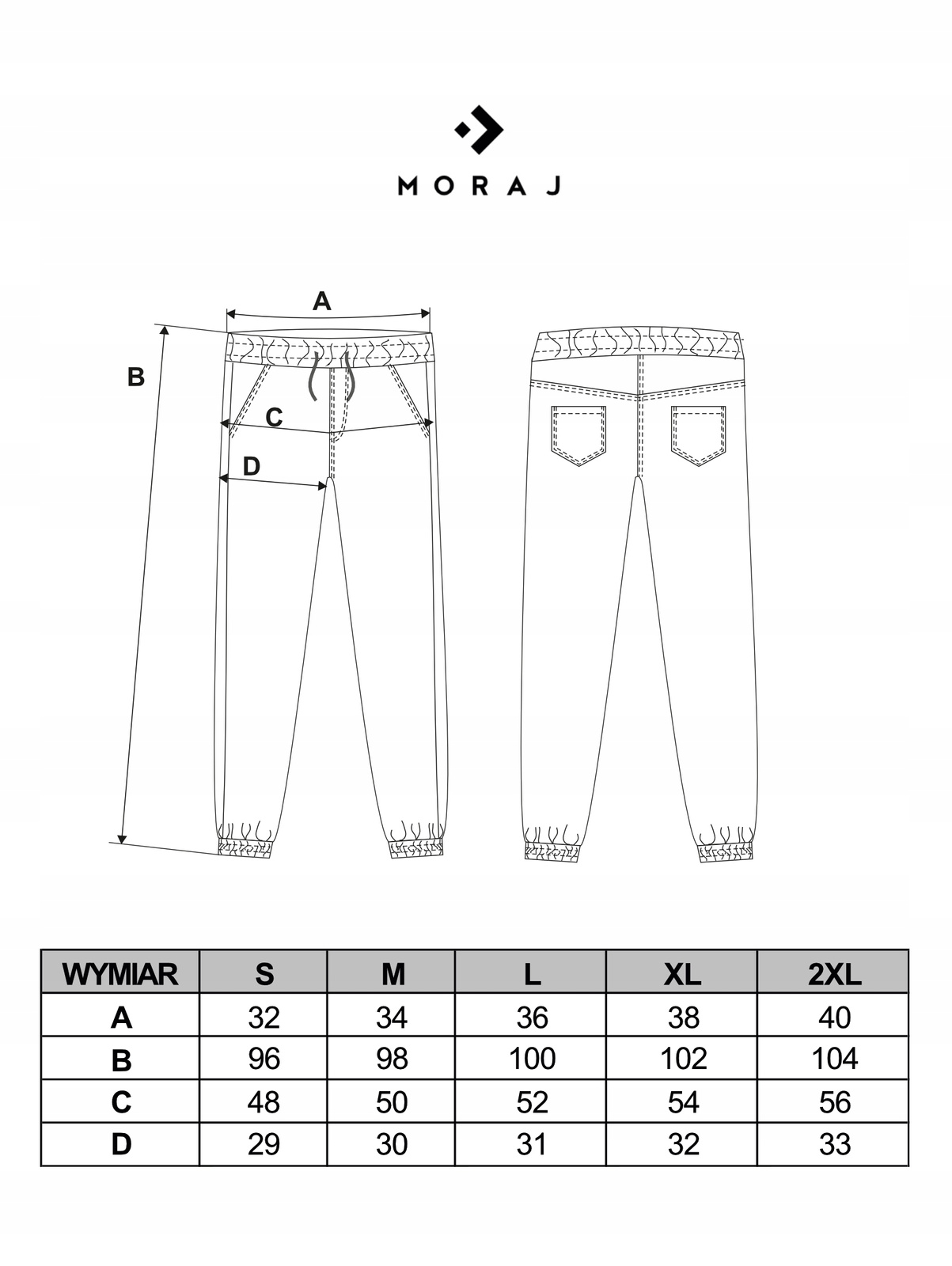 Rozmiar | SZEROKOŚĆ W PASIE | DŁUGOŚĆ CAŁKOWITA | SZEROKOŚĆ W BIODRACH | SZEROKOŚĆ NOGAWKI UDACH |