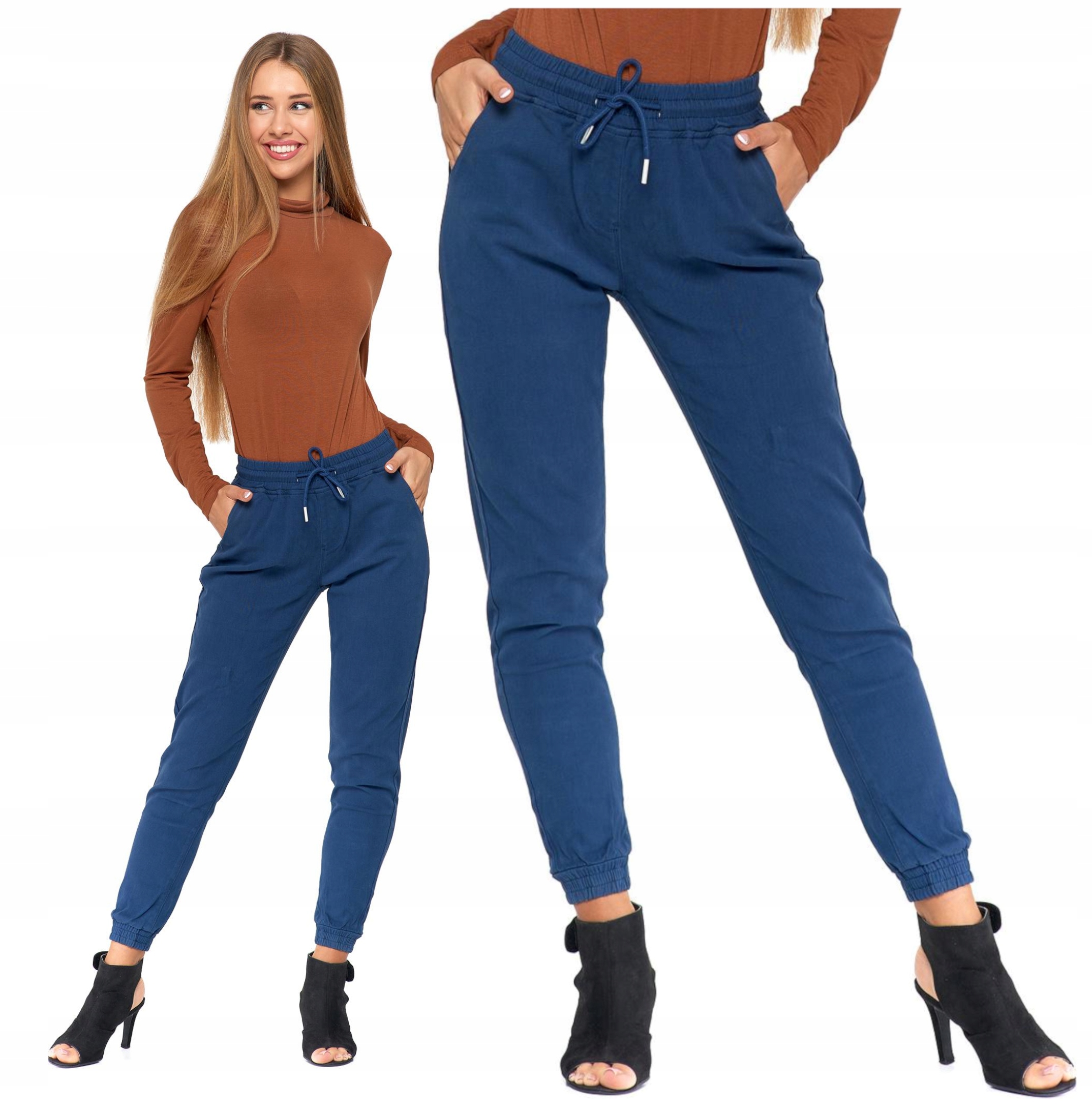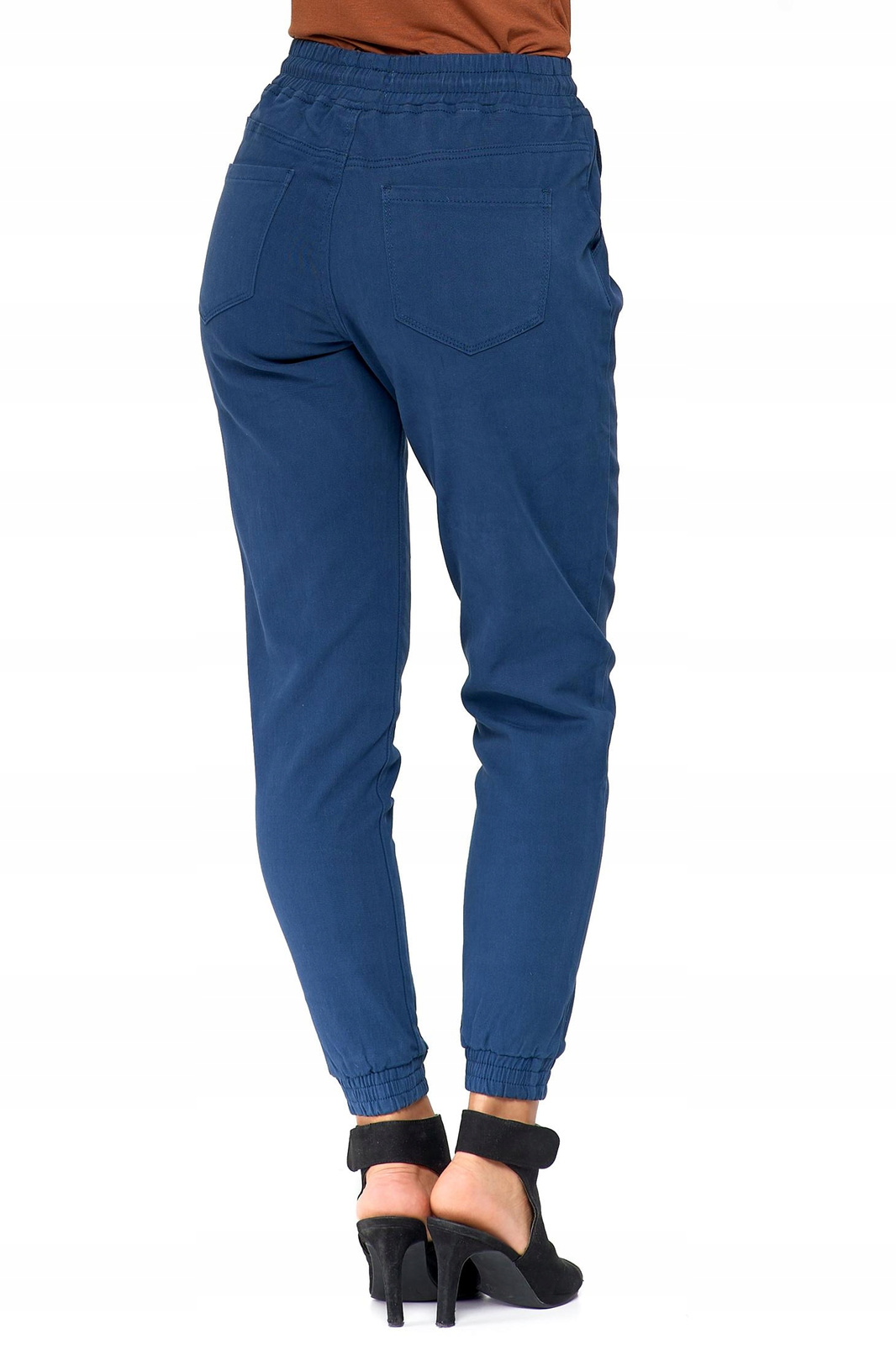 Spodnie damskie joggery. Uszyte są z tkaniny denim.