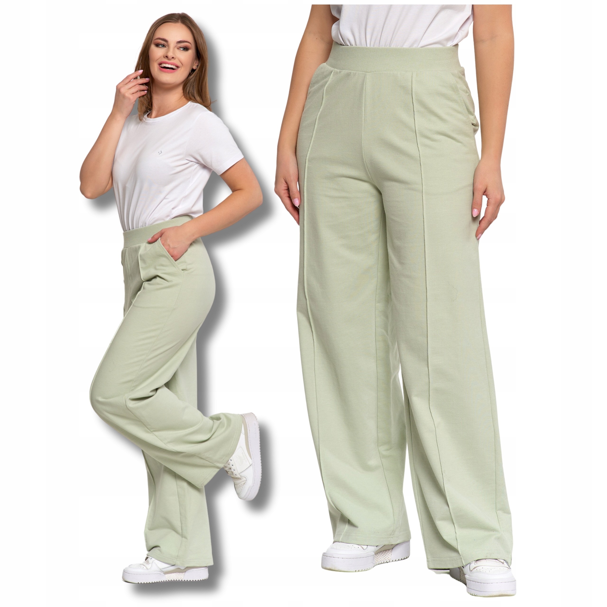 SPODNIE DAMSKIE Szerokie Nogawki Eleganckie Dresowe Wysoki Stan MORAJ