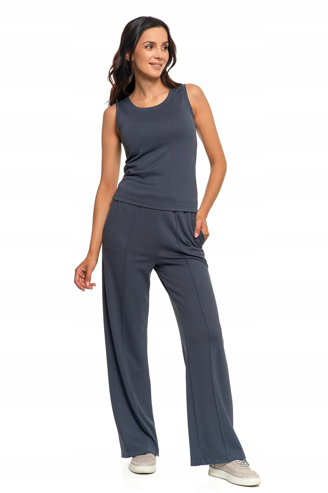 Stylowe damskie spodnie z szerokimi nogawkami, które łączą w sobie elegancję i wygodę.