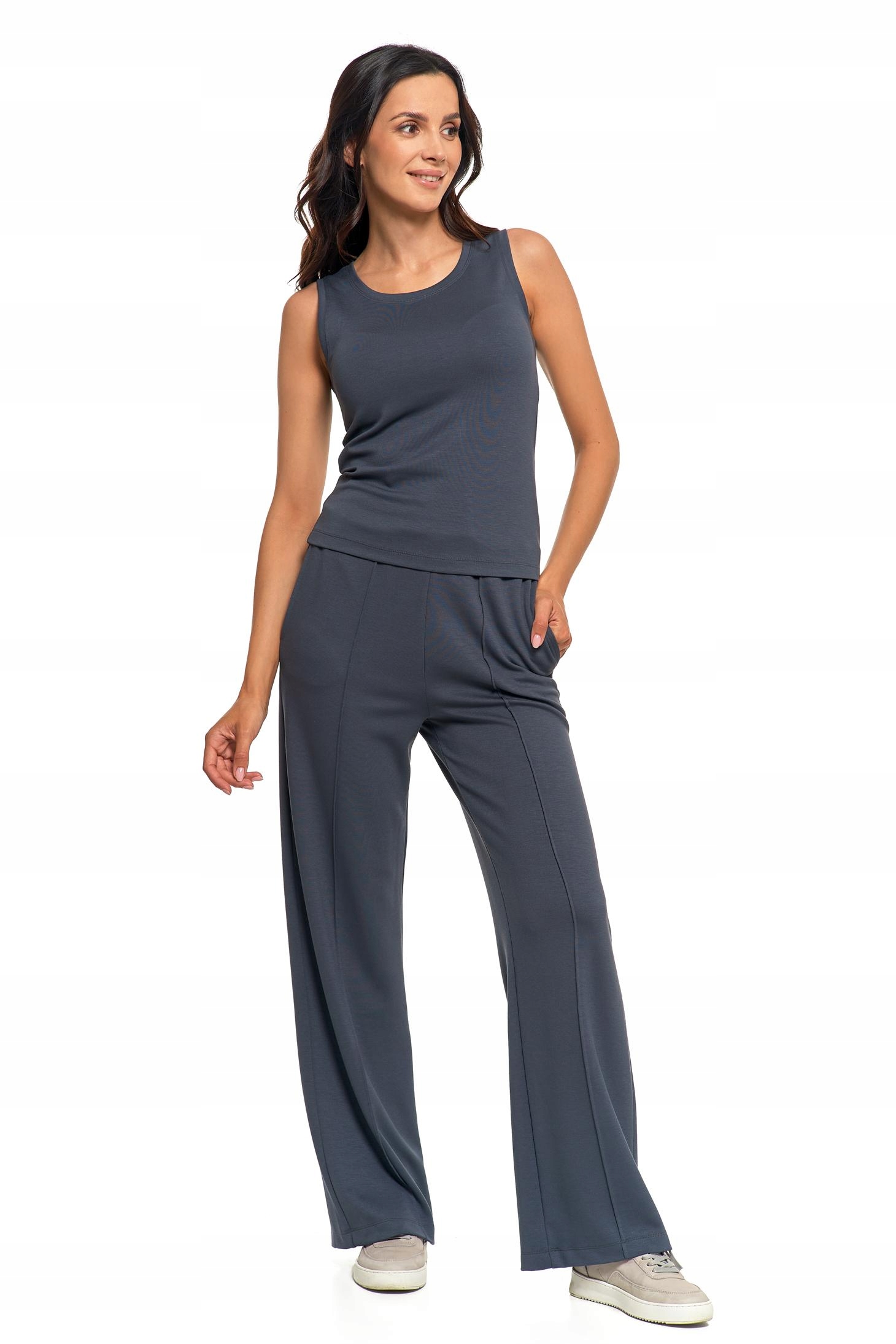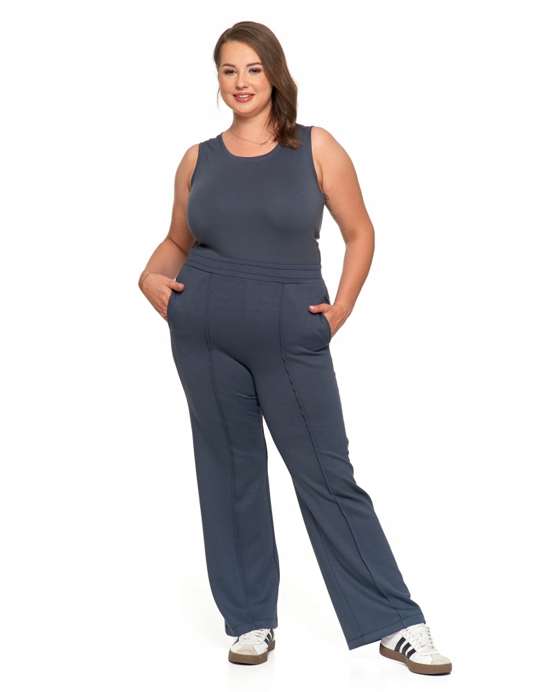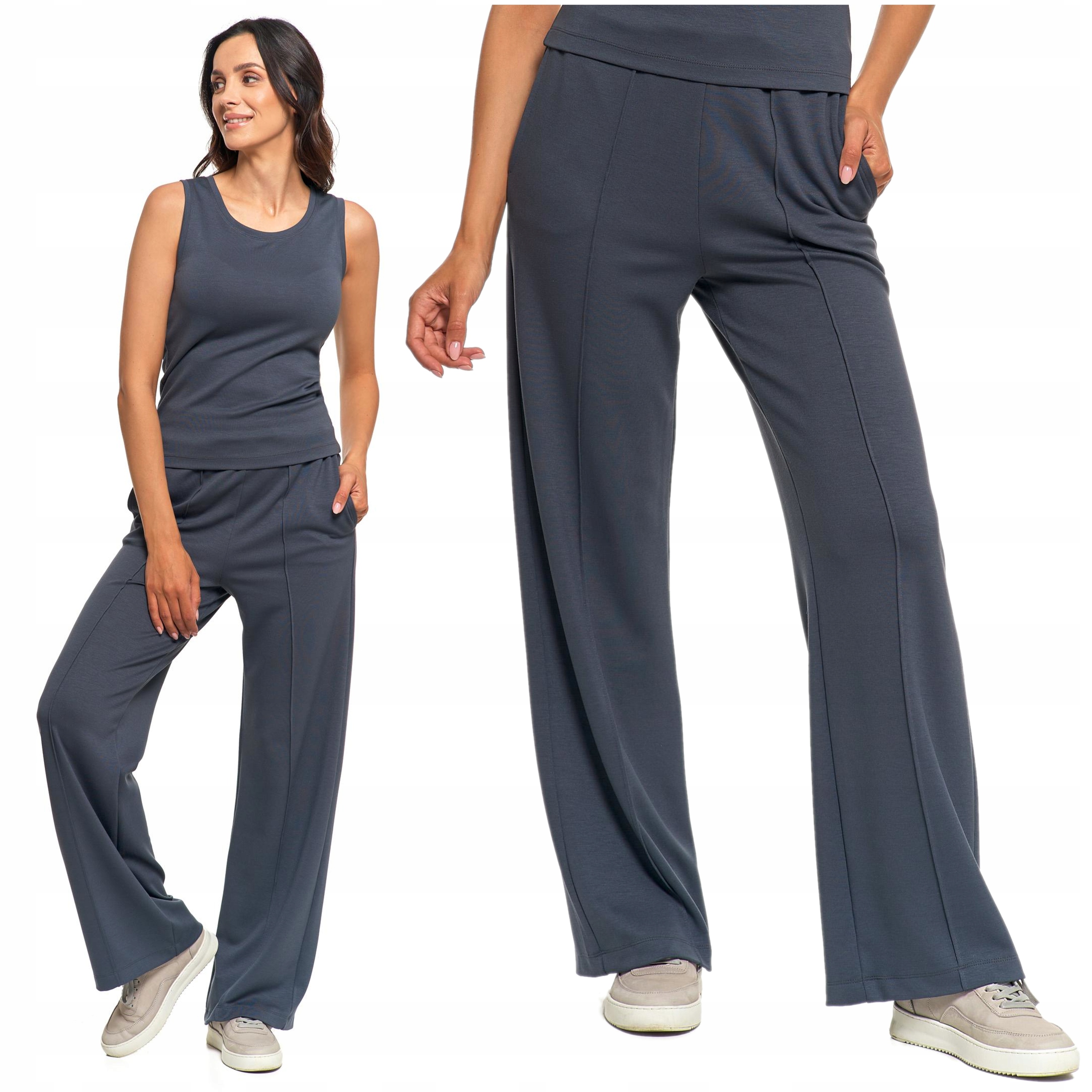 SPODNIE DAMSKIE Szerokie Nogawki Eleganckie Dresowe Wysoki Stan MORAJ