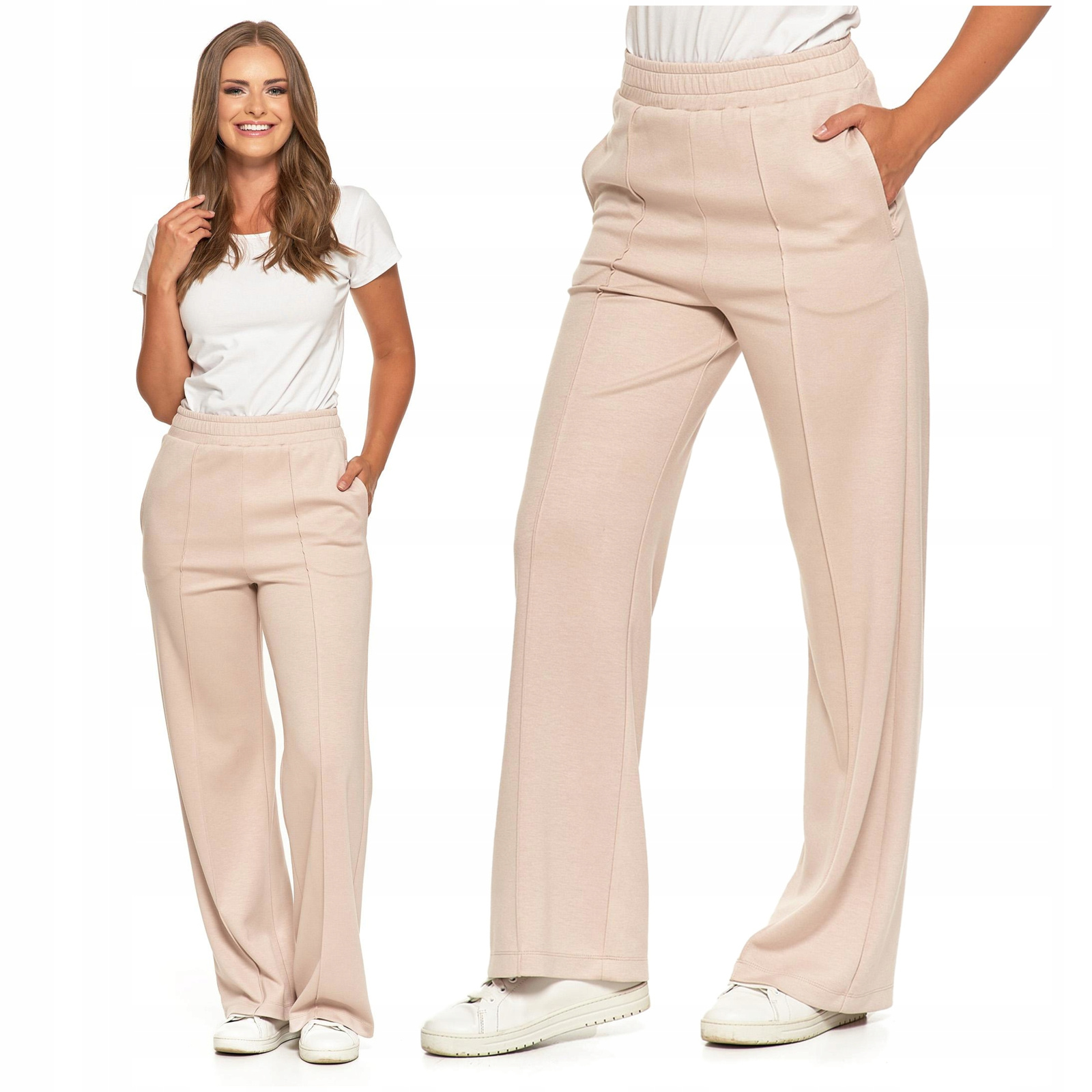SPODNIE DAMSKIE Szerokie Nogawki Eleganckie Dresowe Wysoki Stan MORAJ