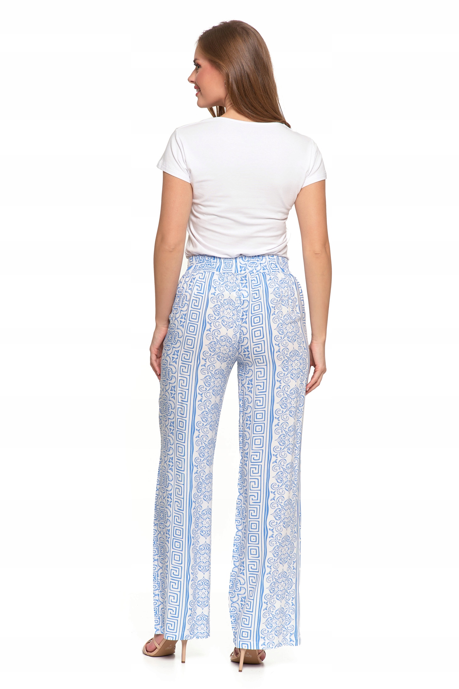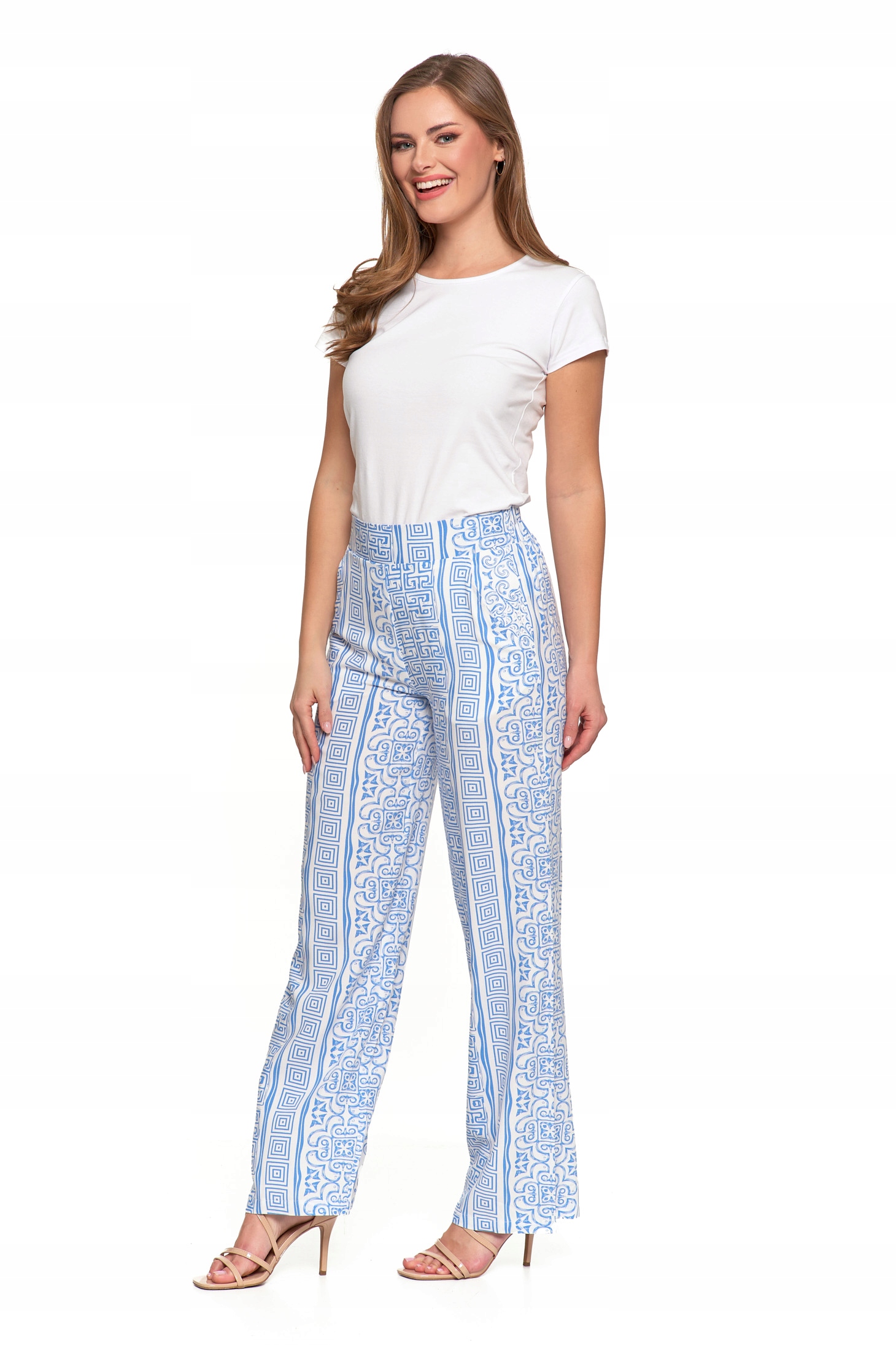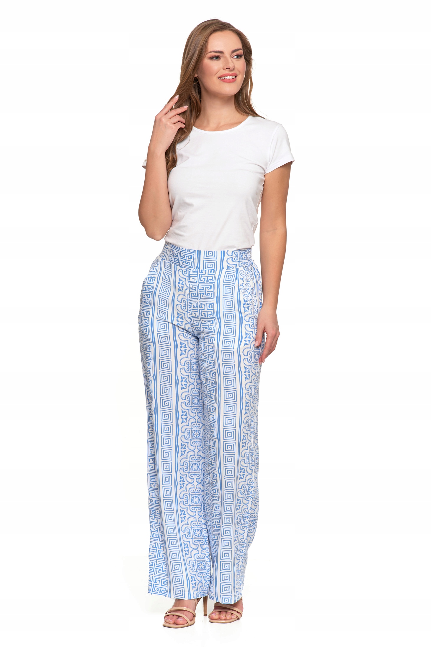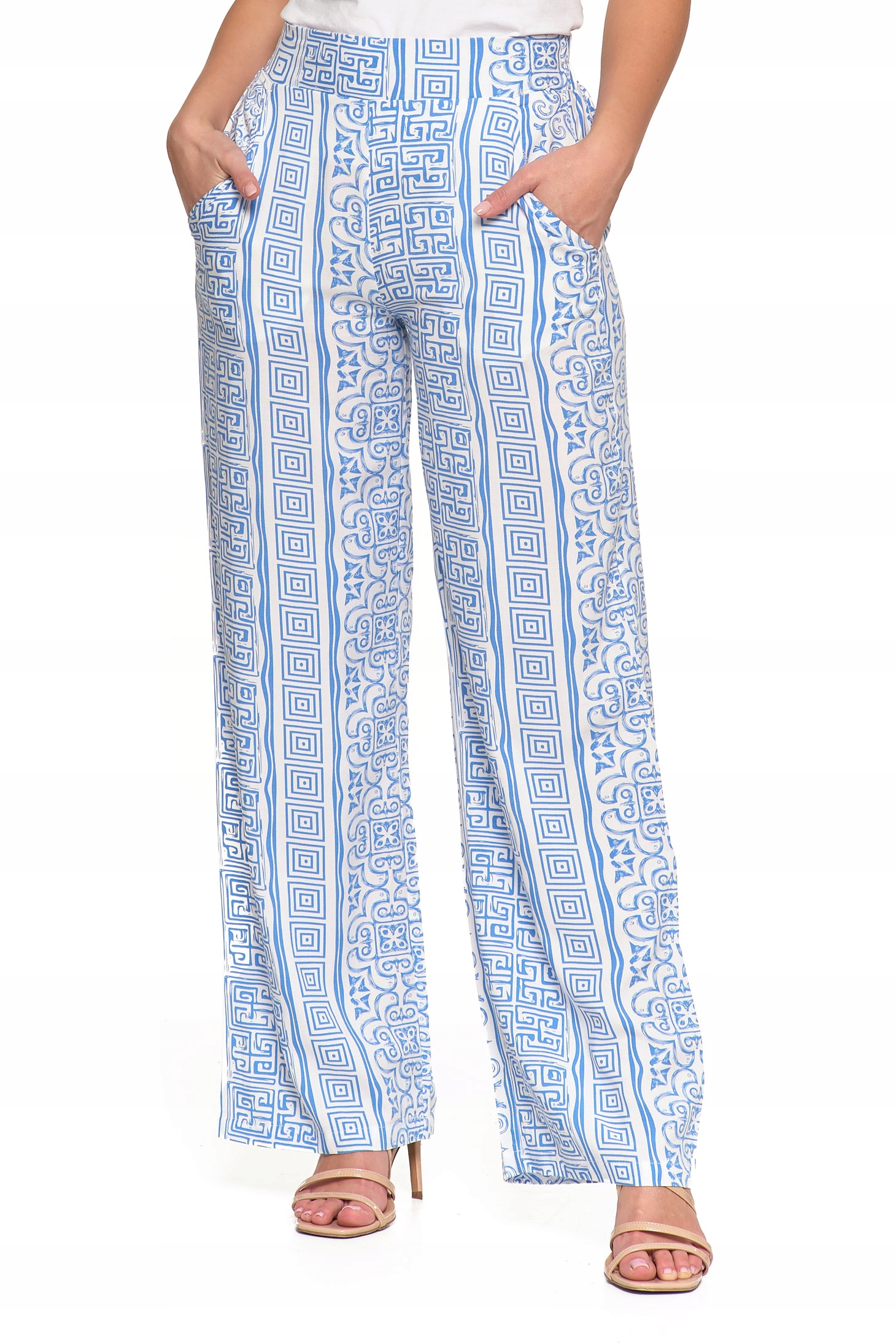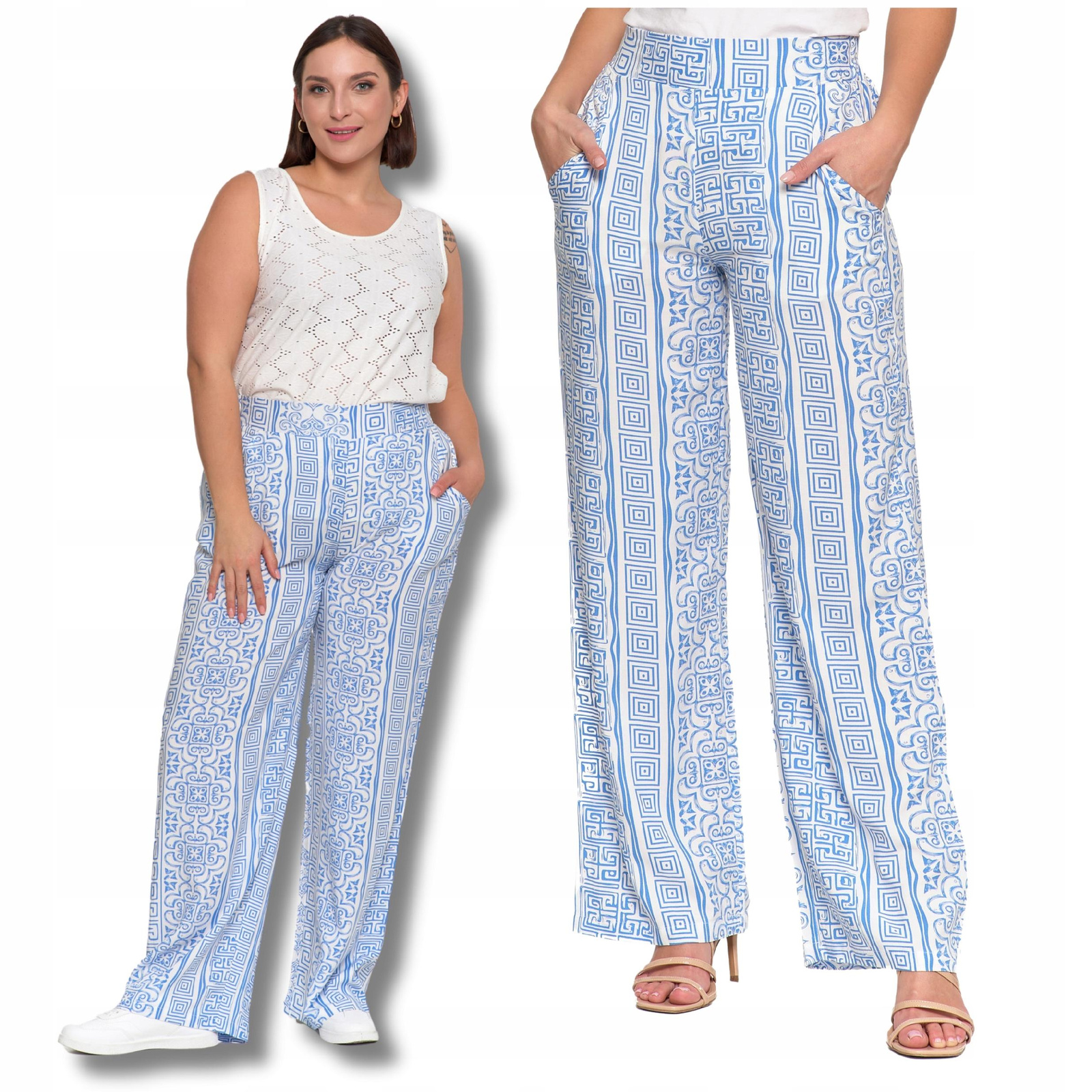 SPODNIE DAMSKIE SZEROKIE PROSTE NOGAWKI Wzorzyste Eleganckie MORAJ