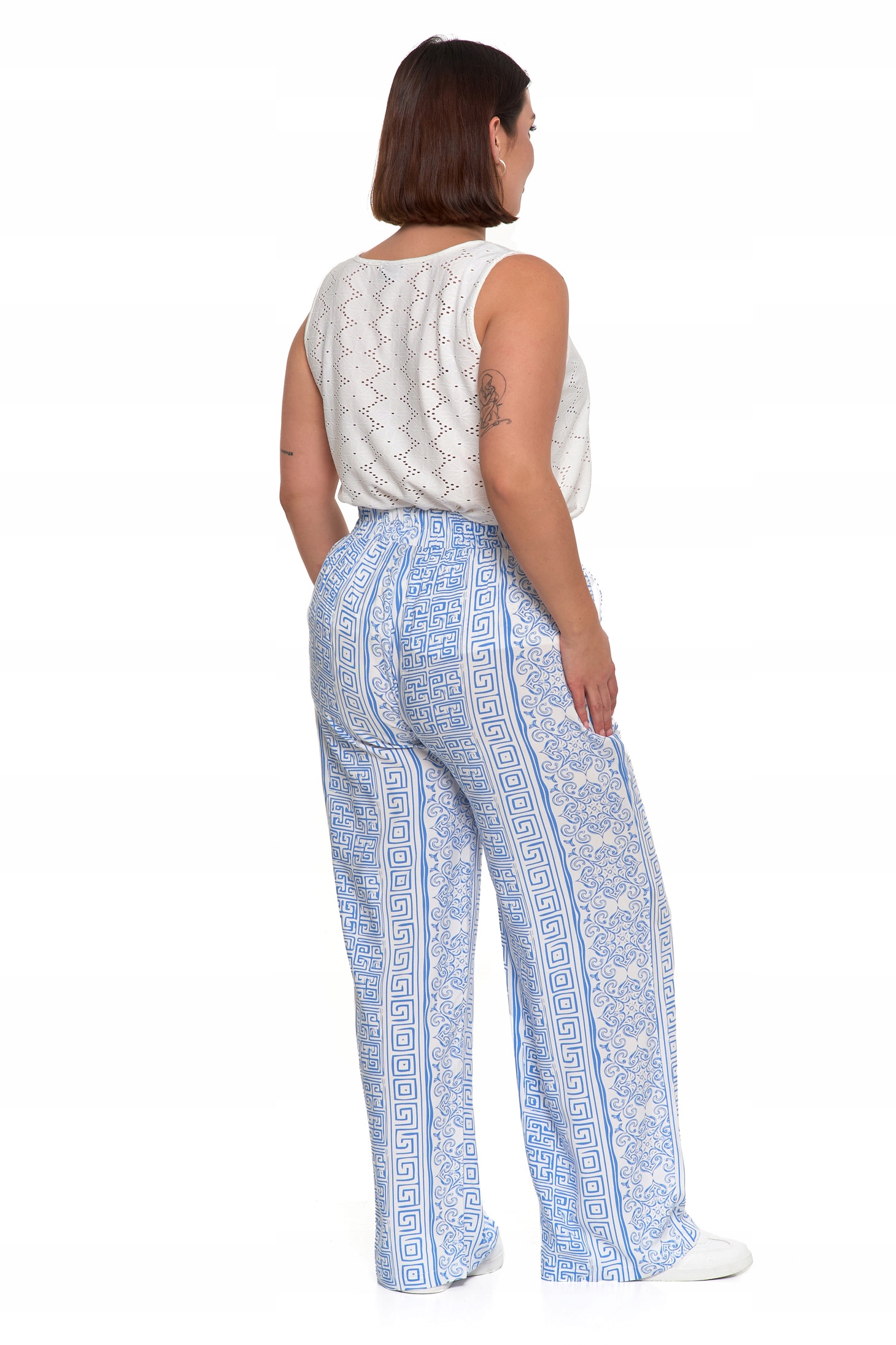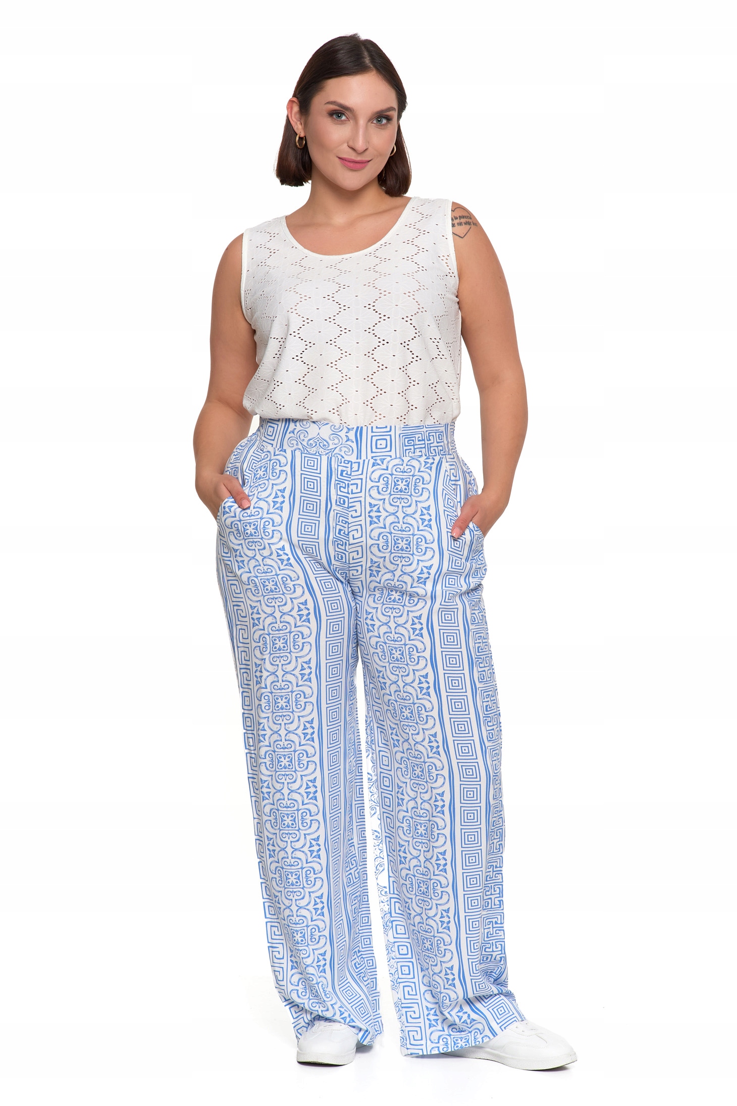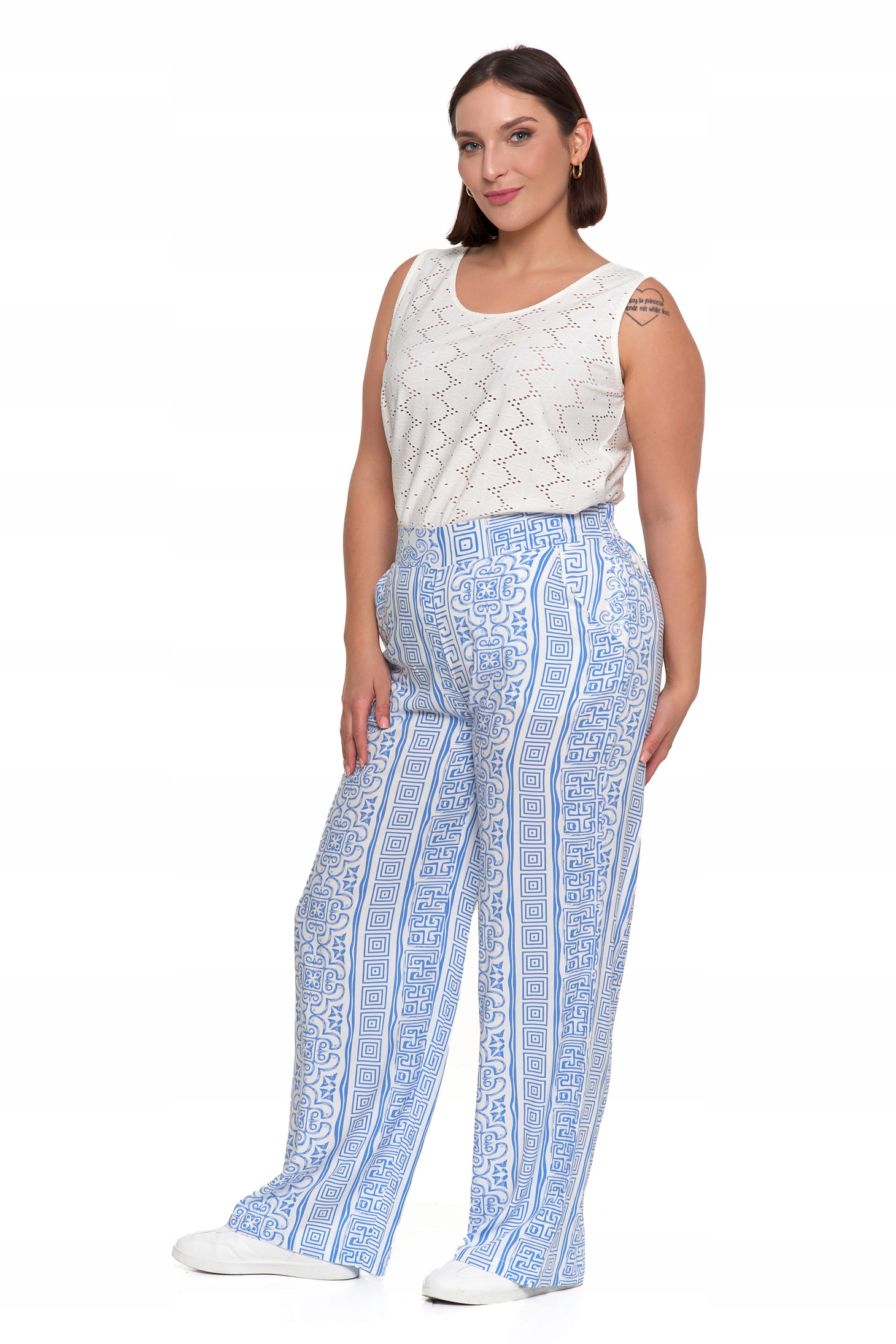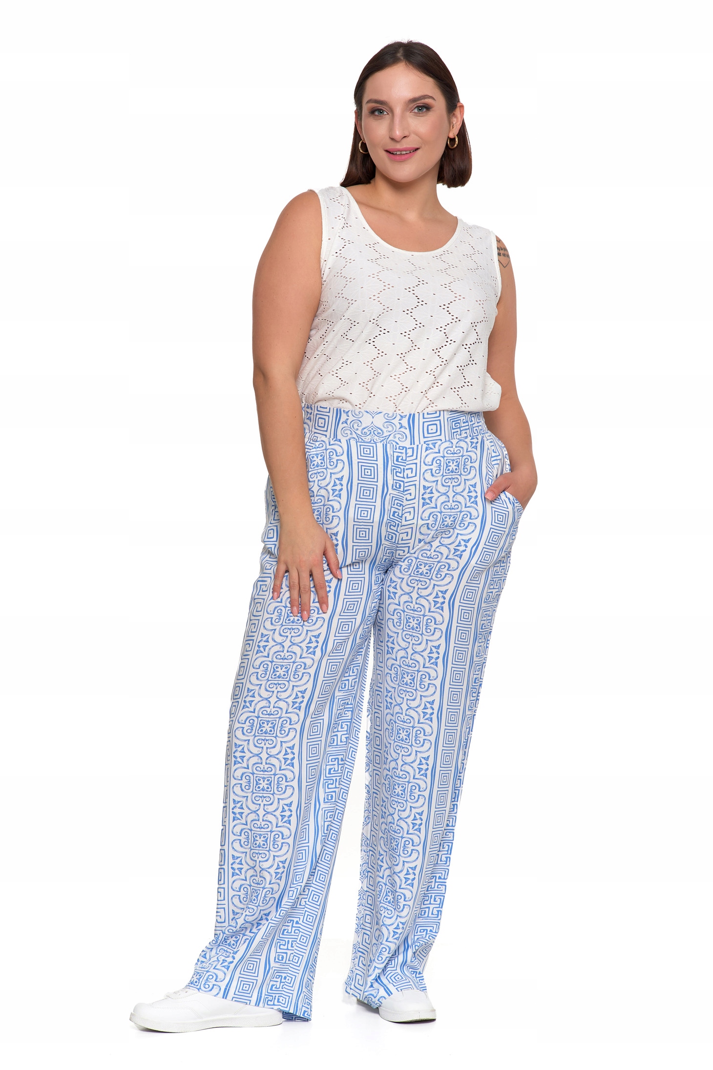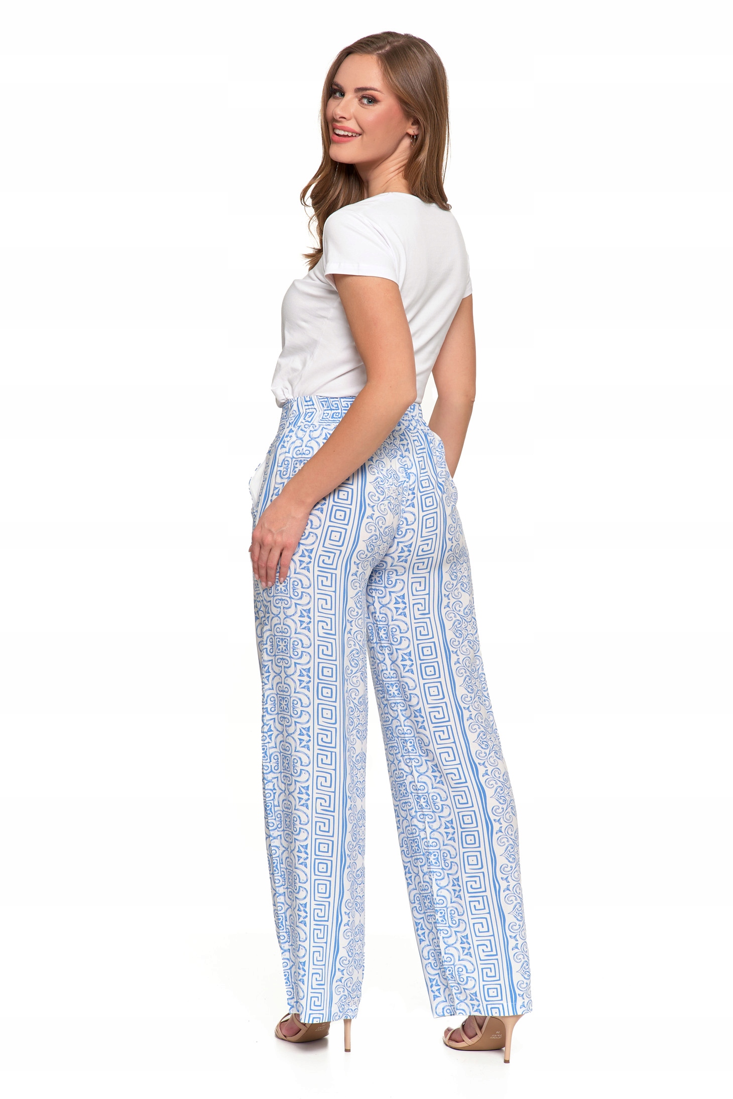 SPODNIE DAMSKIE SZEROKIE PROSTE NOGAWKI Wzorzyste Eleganckie MORAJ