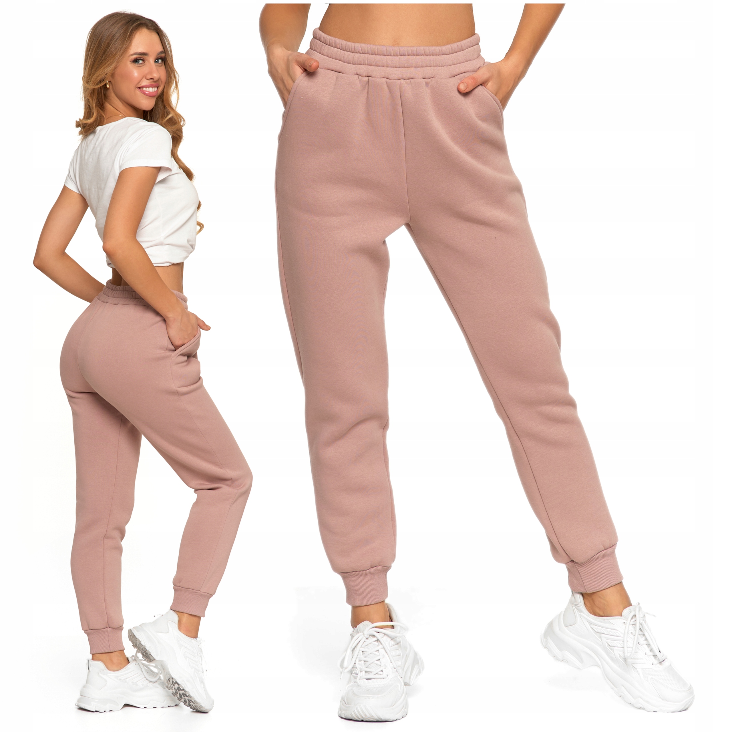 Spodnie Dresowe Damskie MORAJ Ocieplane Wysoki Stan Kieszenie Gładkie