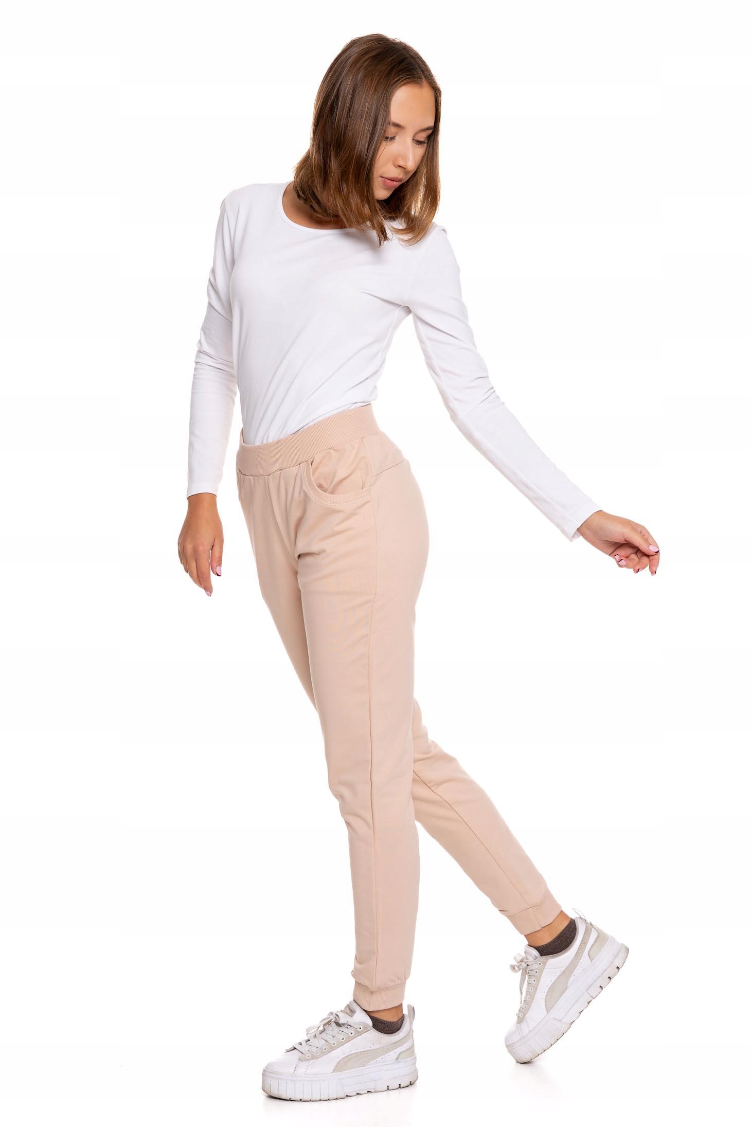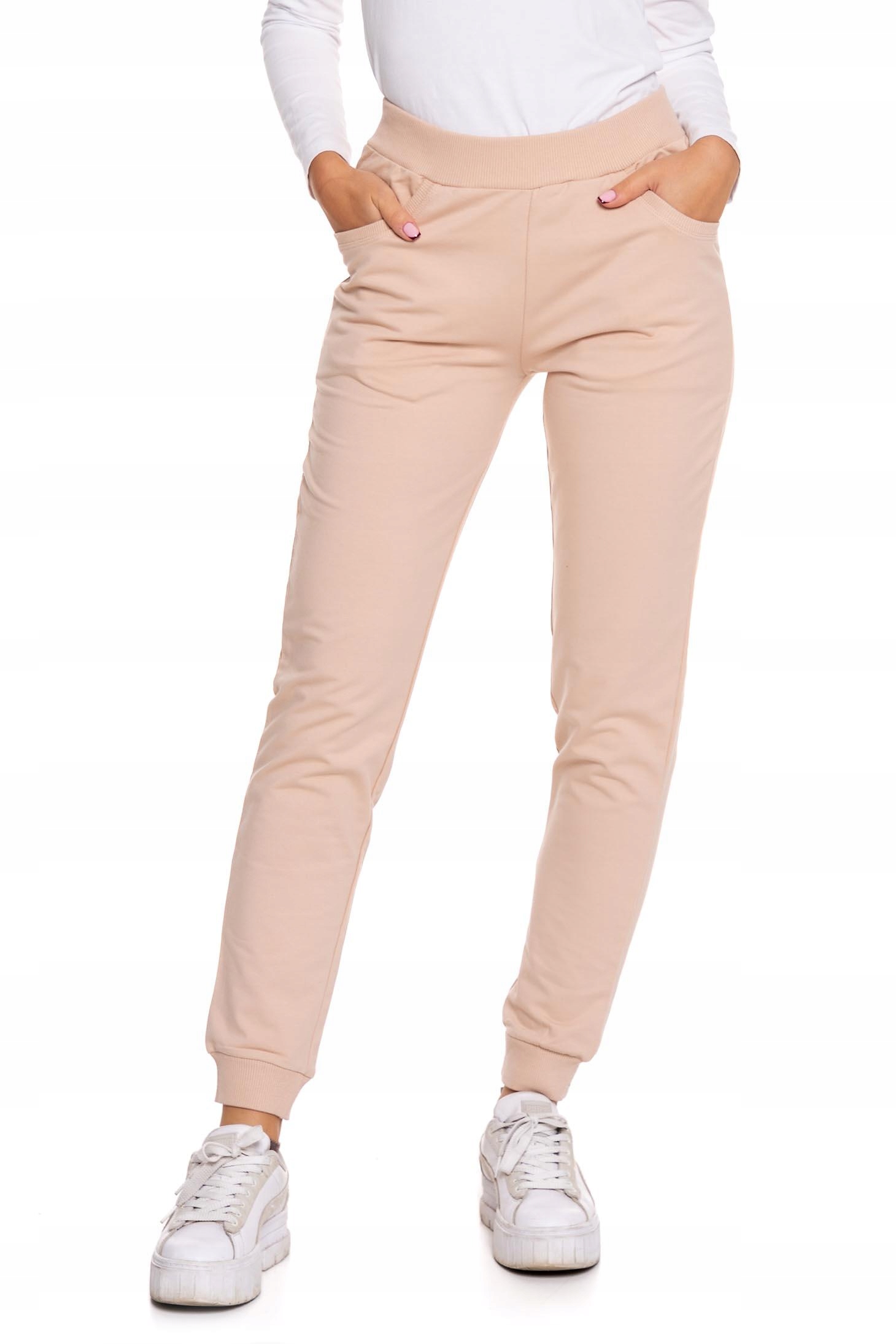 Wykonane z miękkiego, elastycznego materiału, spodnie doskonale dopasowują się do sylwetki, zapewniając pełną swobodę ruchów. Szeroki, elastyczny pas podkreśla talię, oferując wygodę noszenia bez konieczności dodatkowego wiązania. Spodnie posiadają funkcjonalne kieszenie, które dodają im praktyczności, idealne na co dzień, do treningu czy na spacer. Ściągacze na nogawkach sprawiają, że spodnie doskonale leżą i nie zsuwają się.