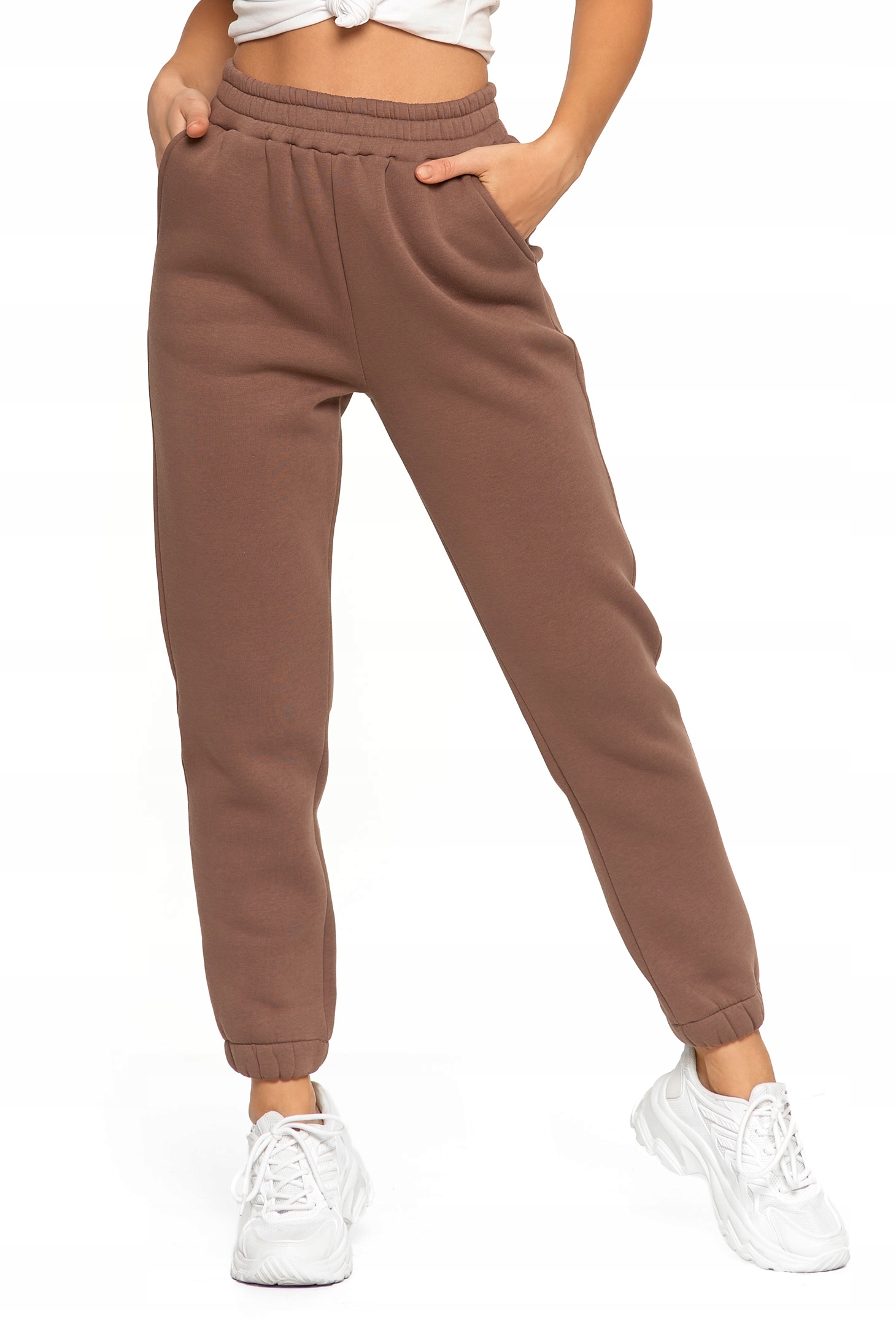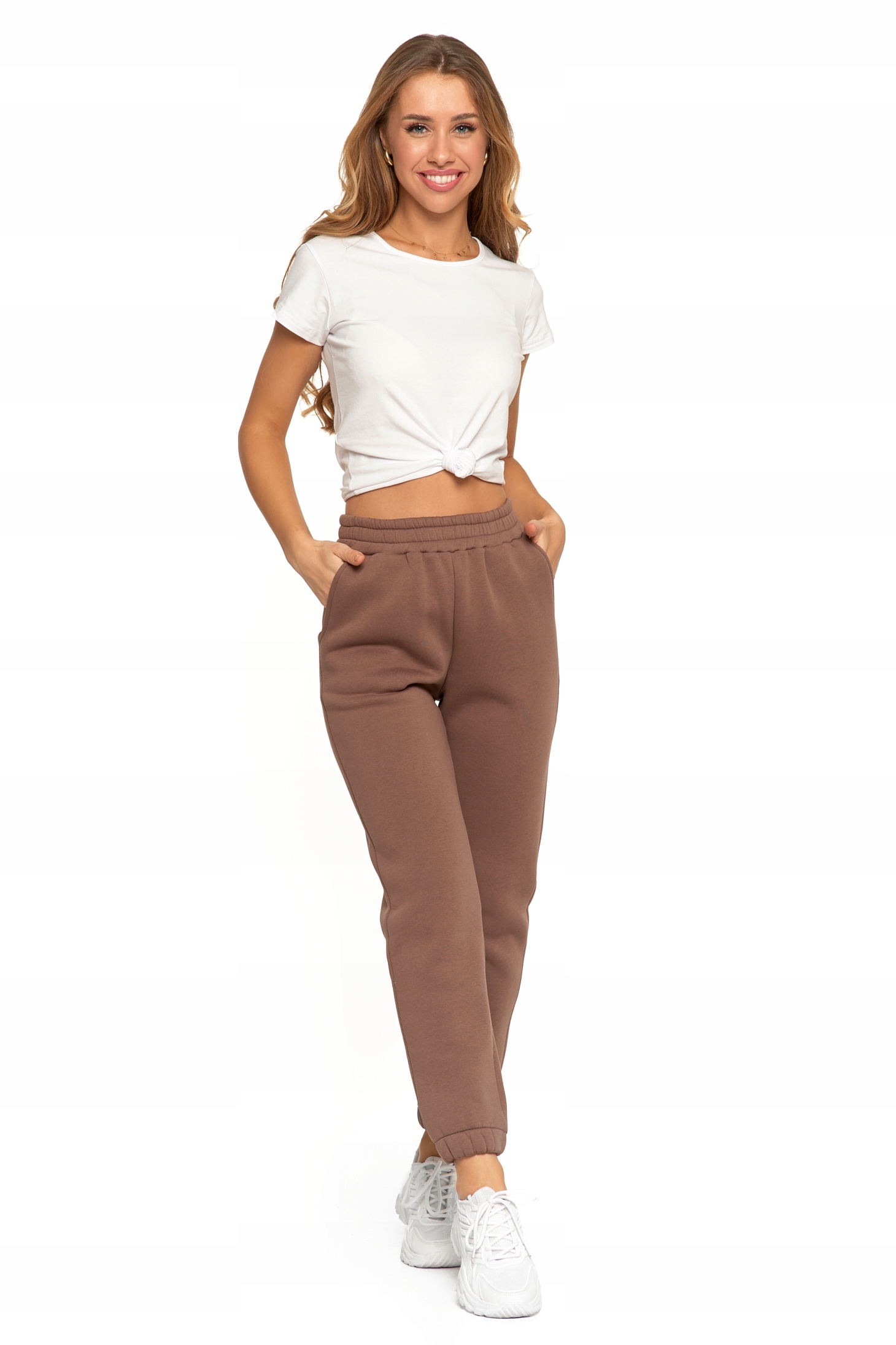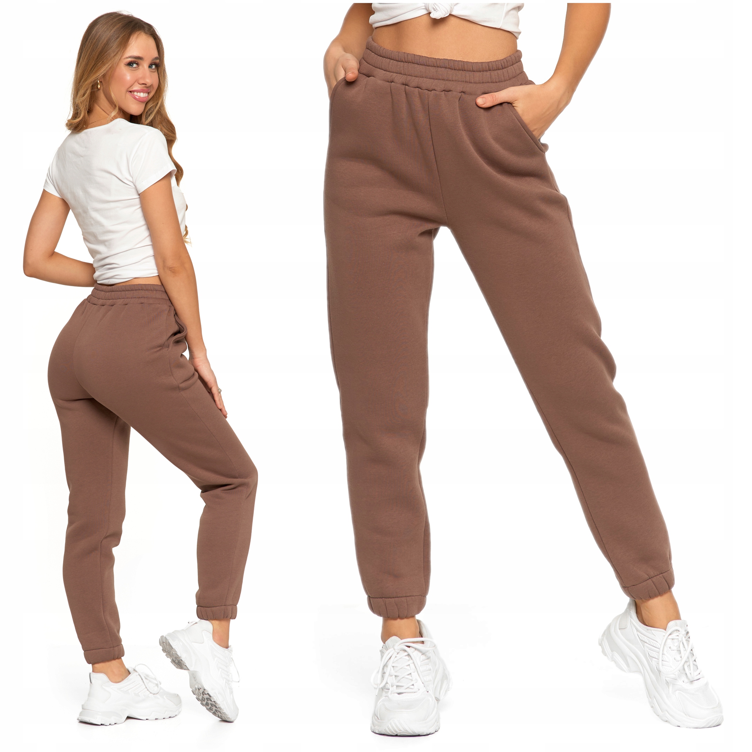 SPODNIE DRESOWE Damskie Ocieplane Gładkie Wysoki Stan Modny Kolor MORAJ