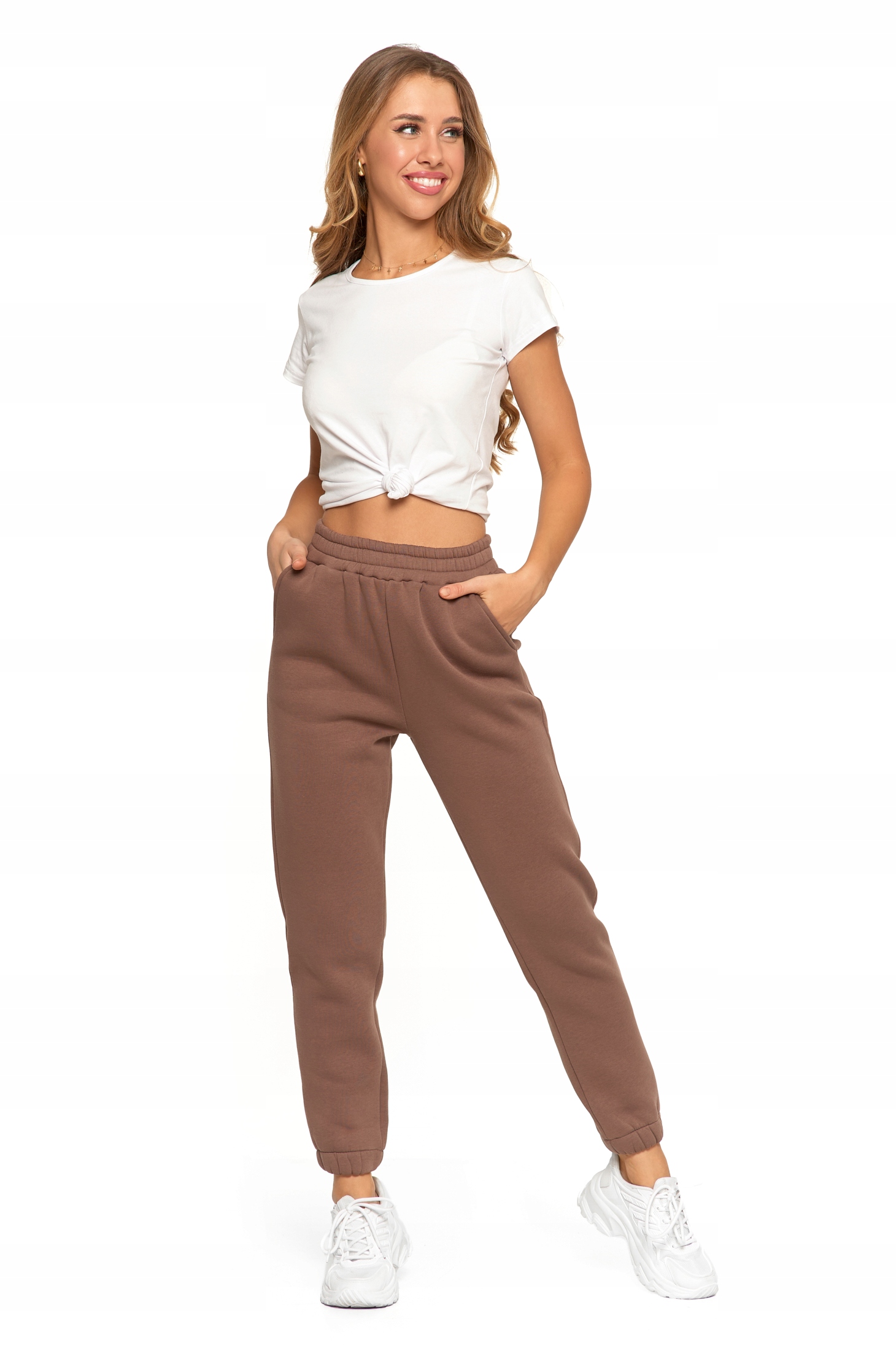 Wykonane z miękkiego, ciepłego materiału, doskonale sprawdzą się w chłodniejsze dni. Wysoki stan nie tylko zapewnia wygodę, ale także podkreśla sylwetkę, dając poczucie swobody i modnego wyglądu. Gładki, uniwersalny design oraz staranne wykończenie sprawiają, że spodnie te są idealne na co dzień – do pracy, na spacer czy relaks w domu.