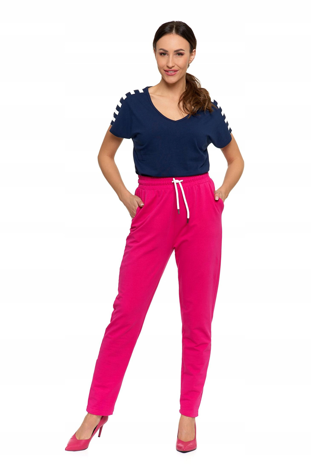Spodnie damskie dresowe z prostą nogawką to idealny wybór dla kobiet ceniących wygodę i styl. Wykonane z elastycznej dzianiny bawełnianej z domieszką elastanu, te spodnie są nie tylko miękkie i przyjemne w dotyku, ale także zapewniają doskonałe dopasowanie do sylwetki. Wiązanie w talii pozwala na regulację obwodu, dzięki czemu możesz dopasować spodnie do swojego komfortu. Szeroka guma w talii nie tylko zapewnia pewne trzymanie, ale także dodaje modnego akcentu do całości. Posiadają również praktyczne kieszenie, które są świetne do przechowywania drobnych przedmiotów.