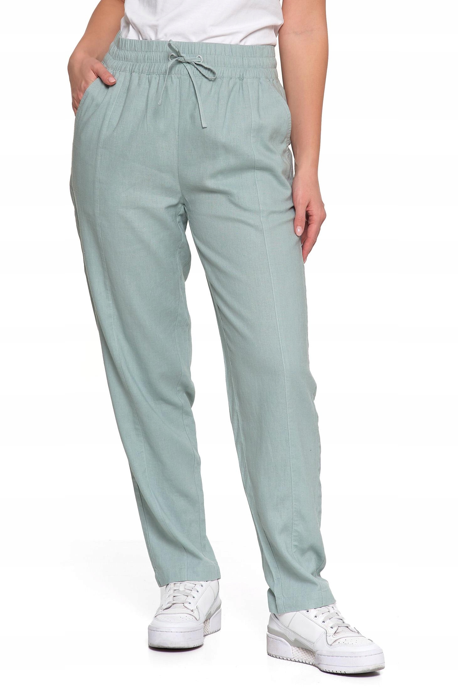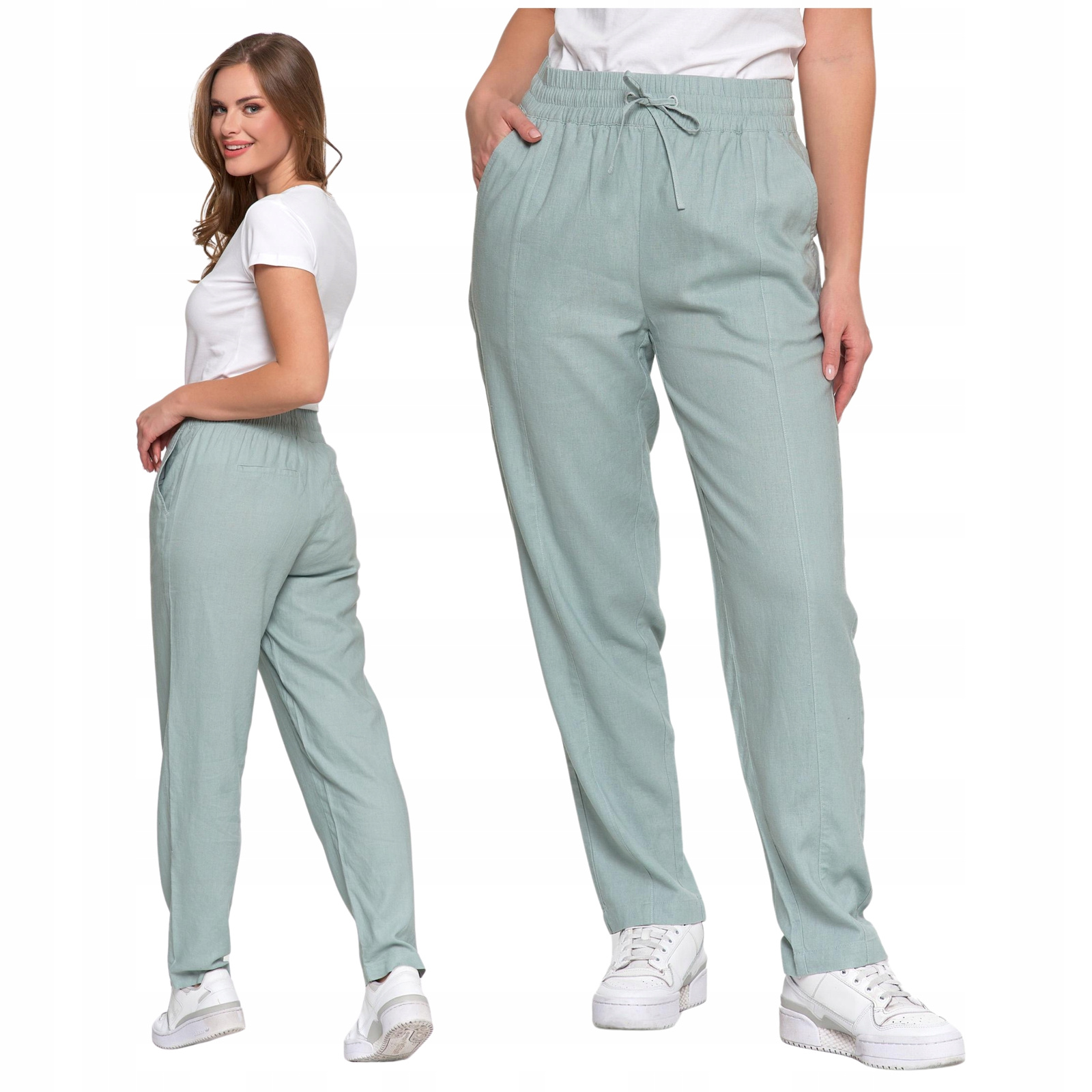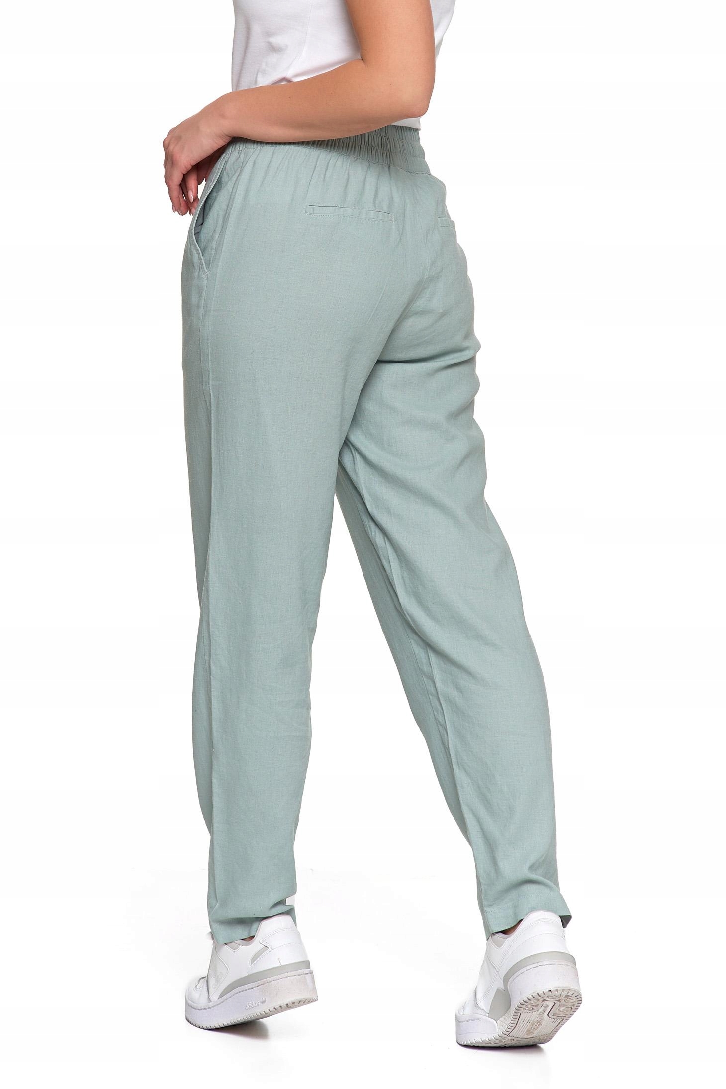 Spodnie Lniane Damskie Eleganckie Gumka w Pasie Prosta Nogawka MORAJ