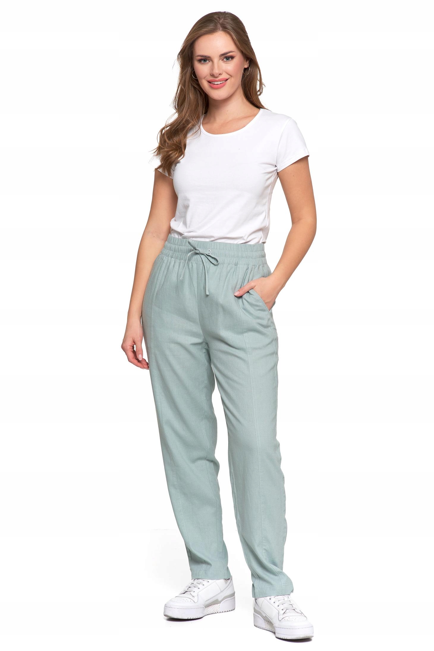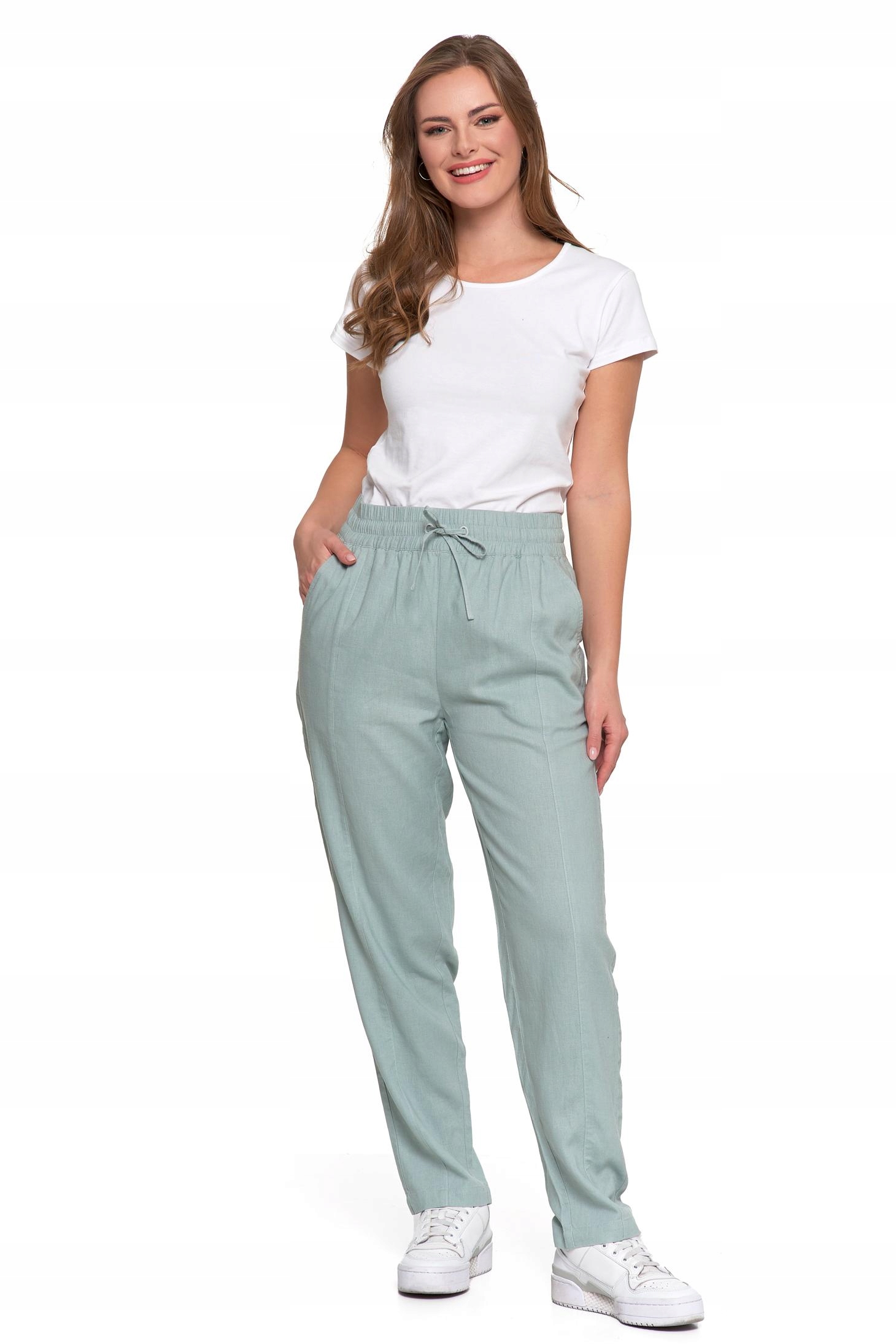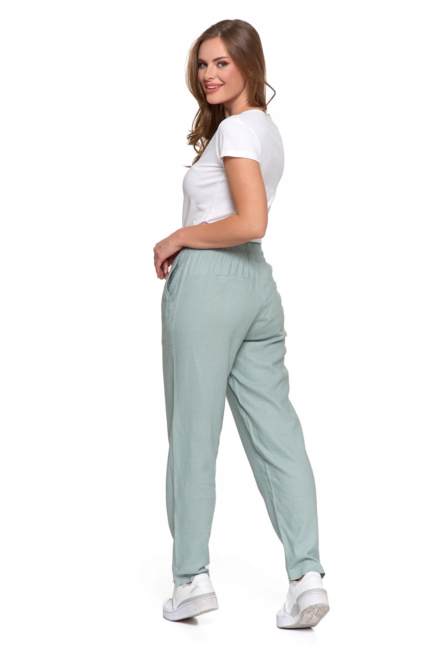 Spodnie Lniane Damskie Eleganckie Gumka w Pasie Prosta Nogawka MORAJ