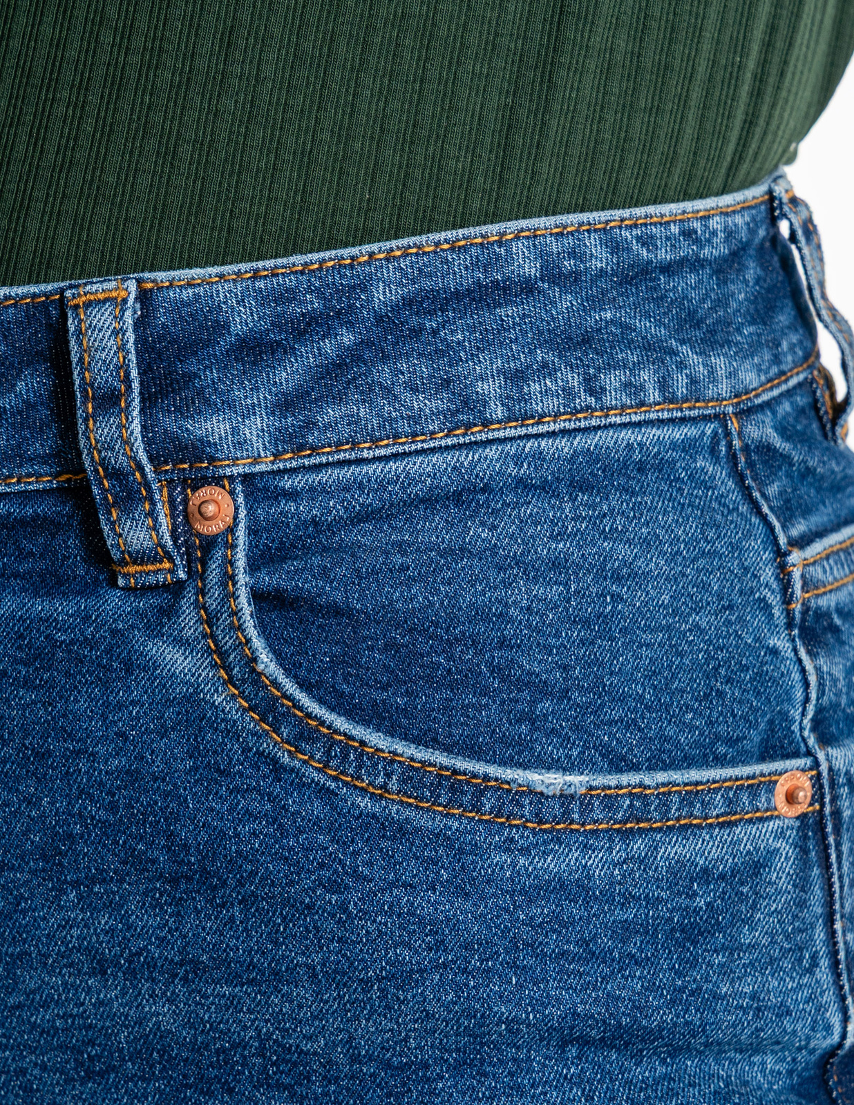 Te damskie spodnie jeansowe o kroju mom fit to połączenie klasycznego stylu z wygodą. Wykonane z wysokiej jakości bawełny z dodatkiem elastanu, zapewniają nie tylko komfort noszenia, ale także delikatnie dopasowują się do sylwetki.