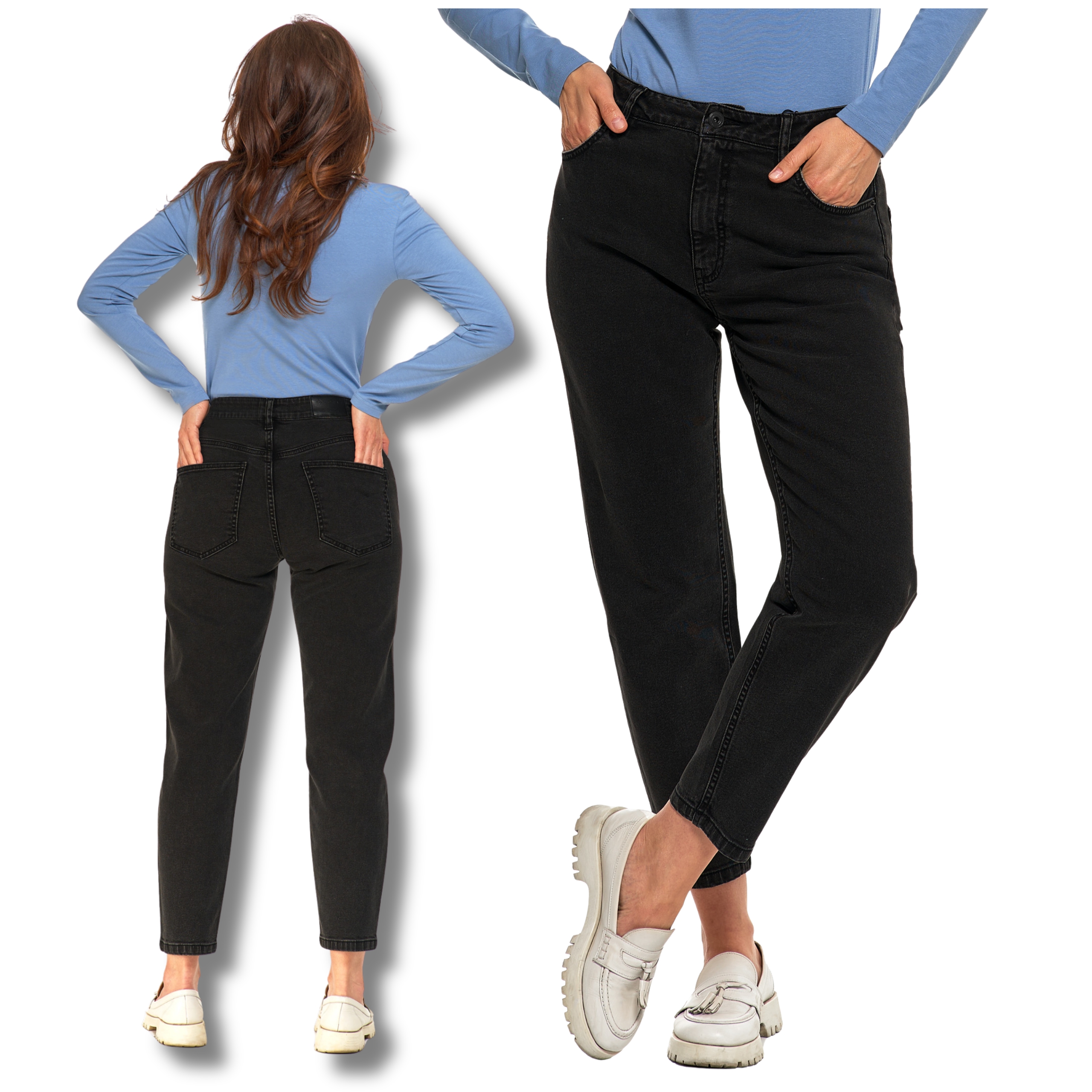 SPODNIE MOM FIT JEANSOWE DAMSKIE WYSOKI STAN LUŹNE MODNE JEANSY MORAJ