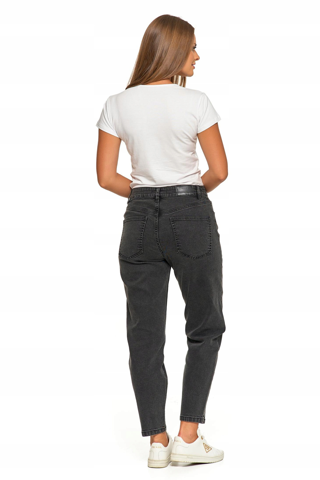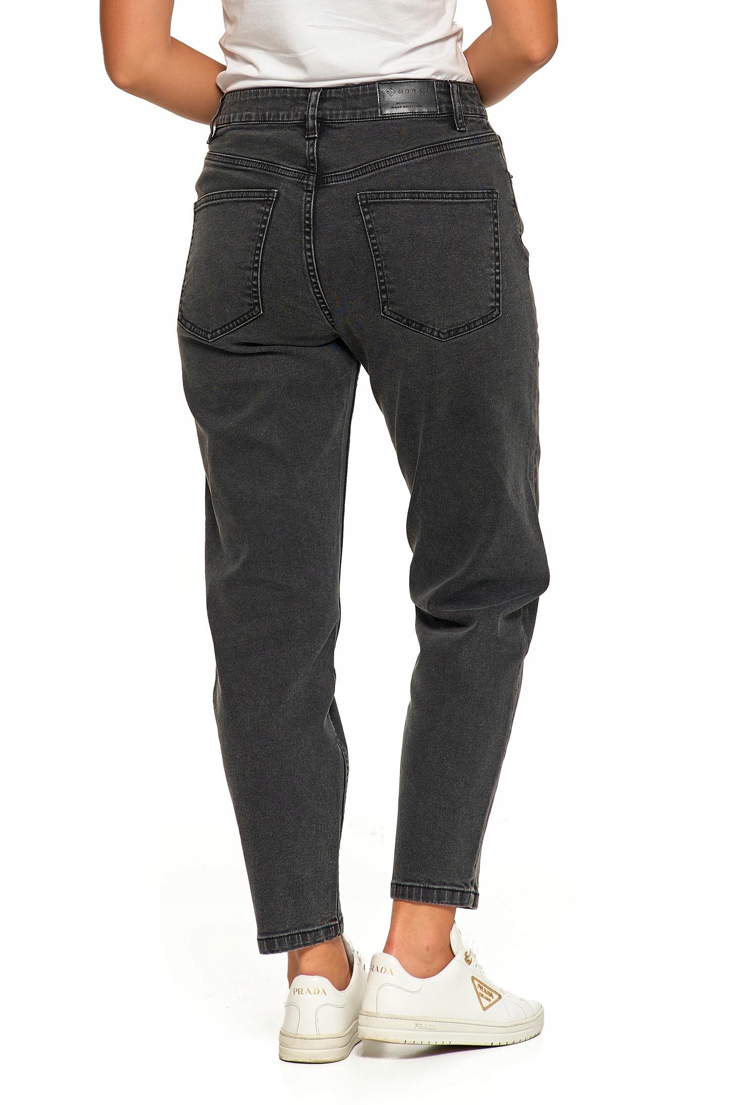 Krój mom fit charakteryzuje się luźniejszymi nogawkami, które zwężają się ku dołowi, podkreślając talię i nadając sylwetce stylowy wygląd. Spodnie posiadają 5 funkcjonalnych kieszeni, w tym małą kieszonkę na drobiazgi. Zapięcie na zamek błyskawiczny zapewnia łatwe zakładanie i zdejmowanie, a ich klasyczny, nieco wyższy stan doskonale wpisuje się w modowe trendy. Materiał z bawełny z elastanem sprawia, że spodnie są nie tylko wytrzymałe, ale i elastyczne, co zwiększa komfort noszenia na co dzień.