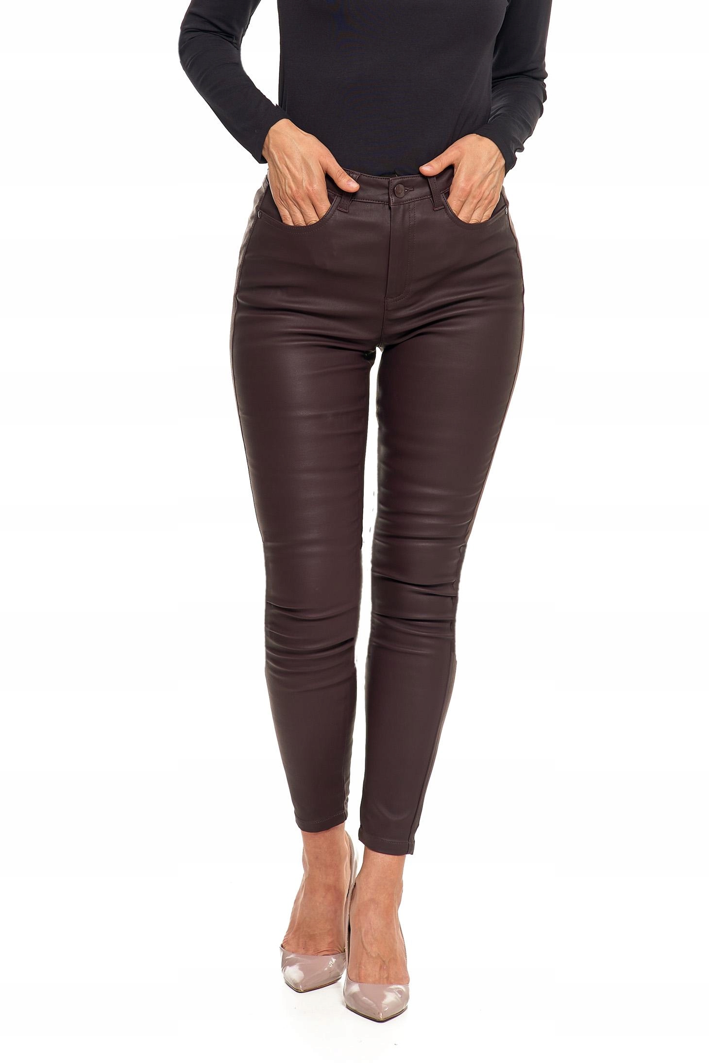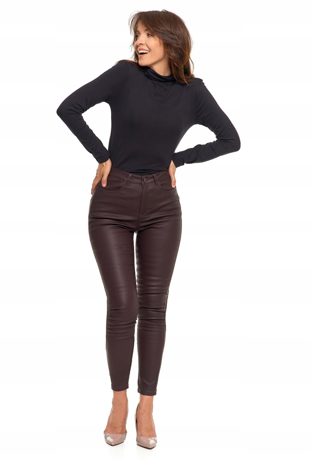 Spodnie damskie skinny z wysokim stanem z eko-skóry wykonane z elastycznego materiału z dodatkiem wiskozy i domieszek, to idealny wybór dla kobiet, które cenią styl i wygodę.