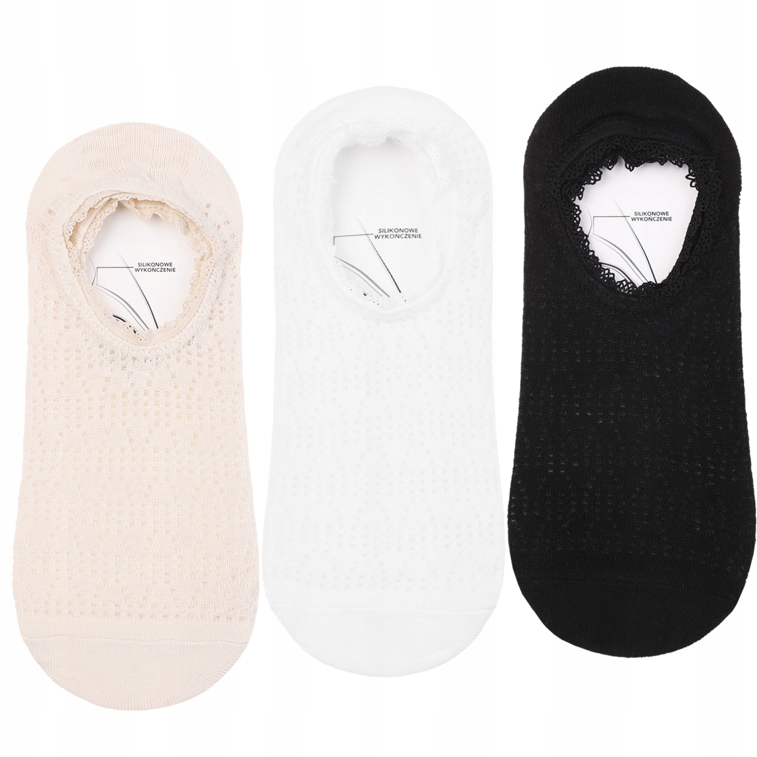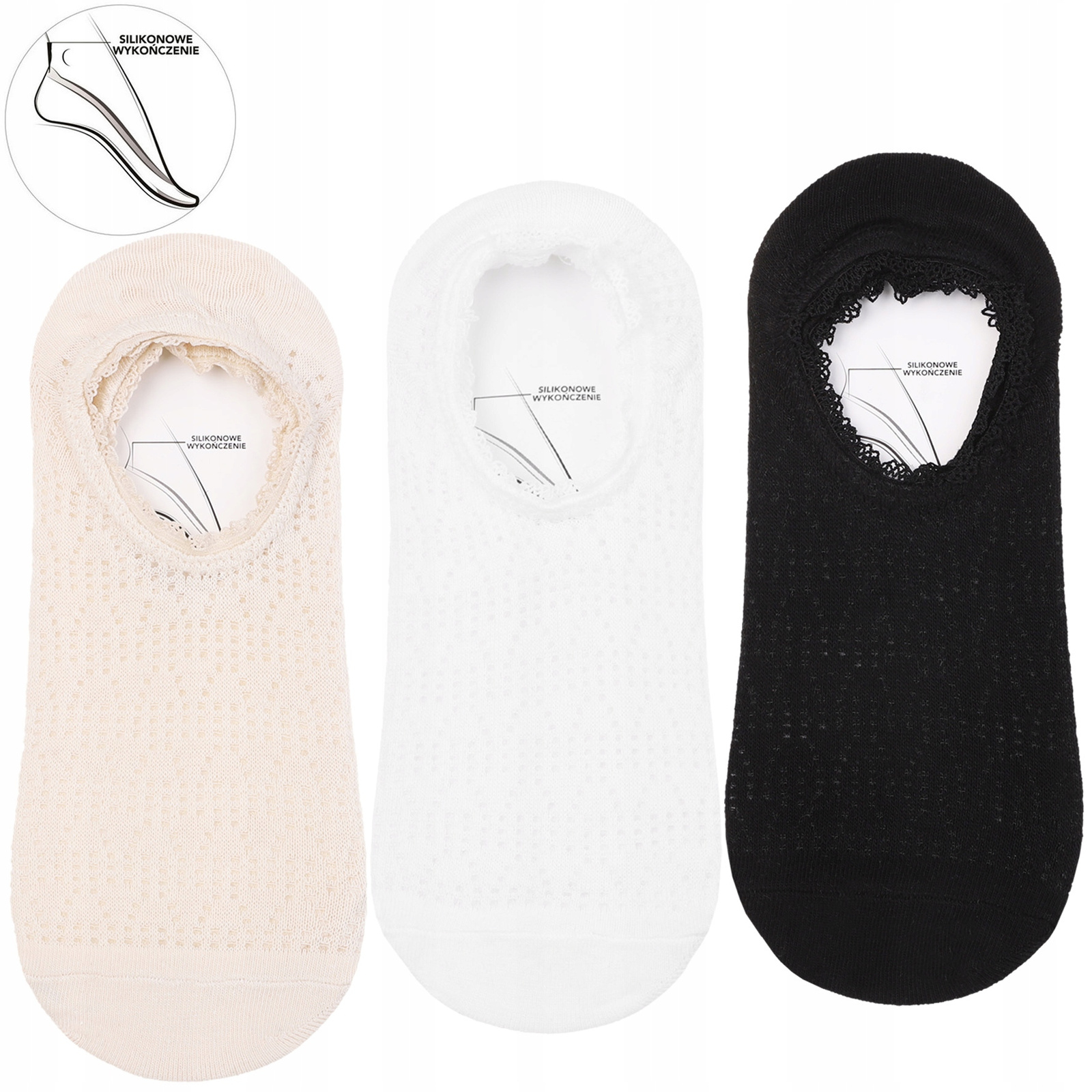 Stopki Damskie MORAJ Skarpetki Balerinki Delikatna Koronka 3-PAK