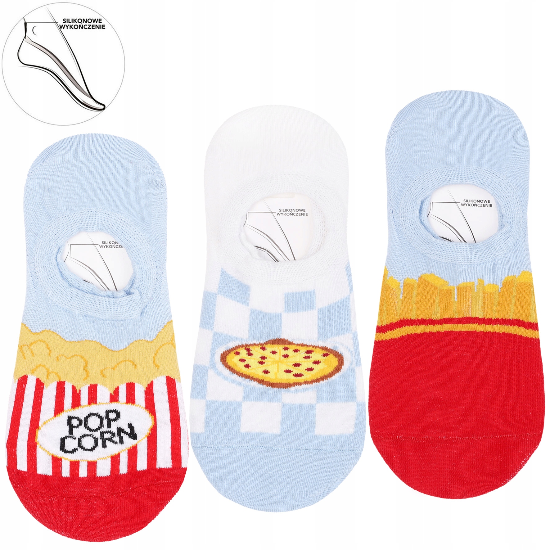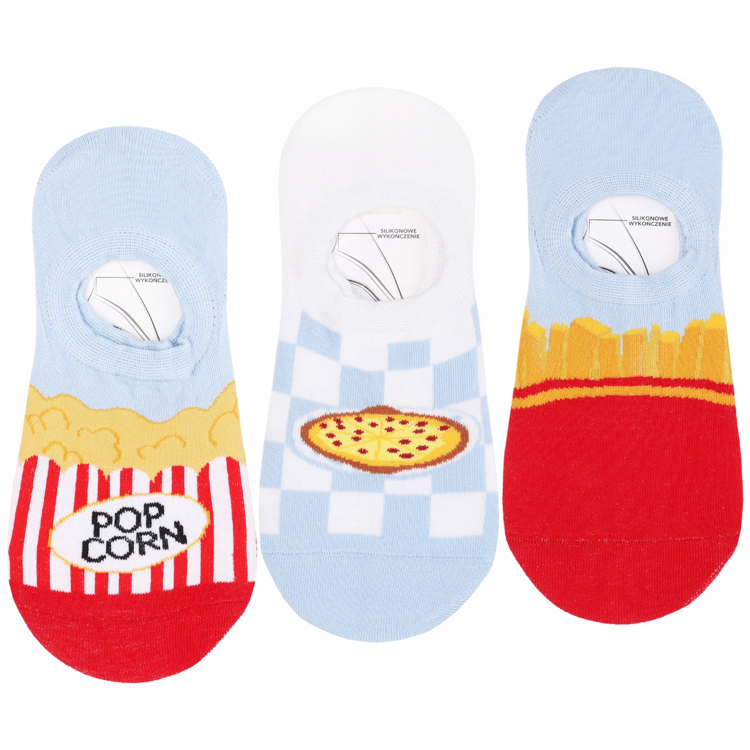 Stopki Damskie MORAJ Skarpetki Balerinki Frytki Popcorn Pizza 3-PAR
