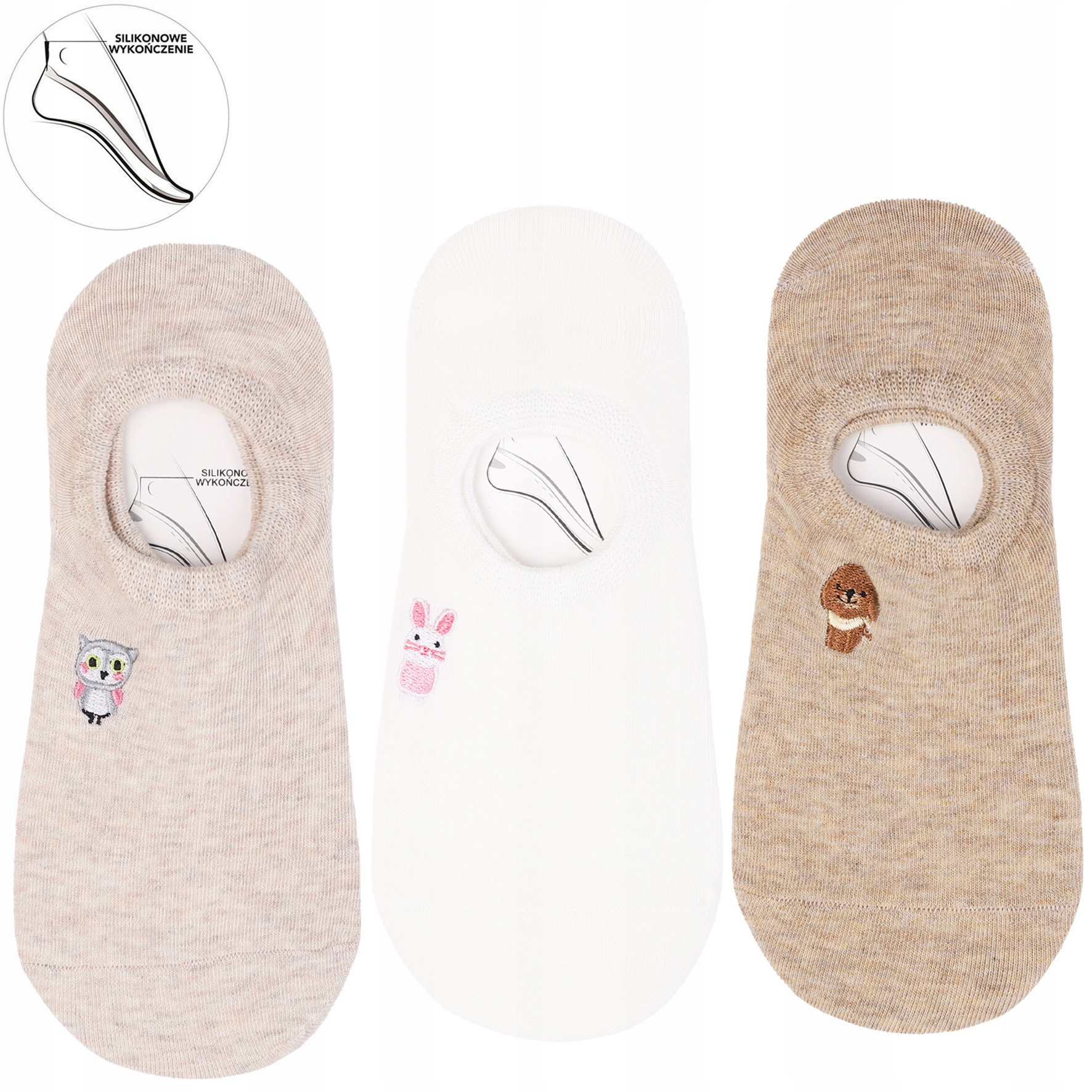 Stopki Damskie MORAJ Skarpetki Balerinki Uroczy HAFT Zwierzątka 3-PAK