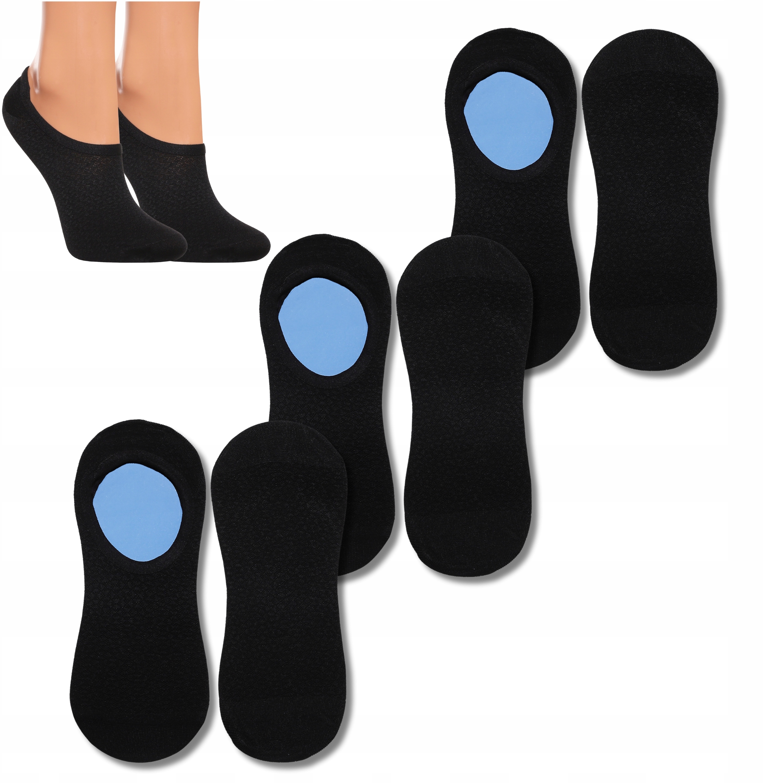 Stopki Damskie Niskie Skarpetki Czarne Balerinki Silikon MORAJ 3-PAK
