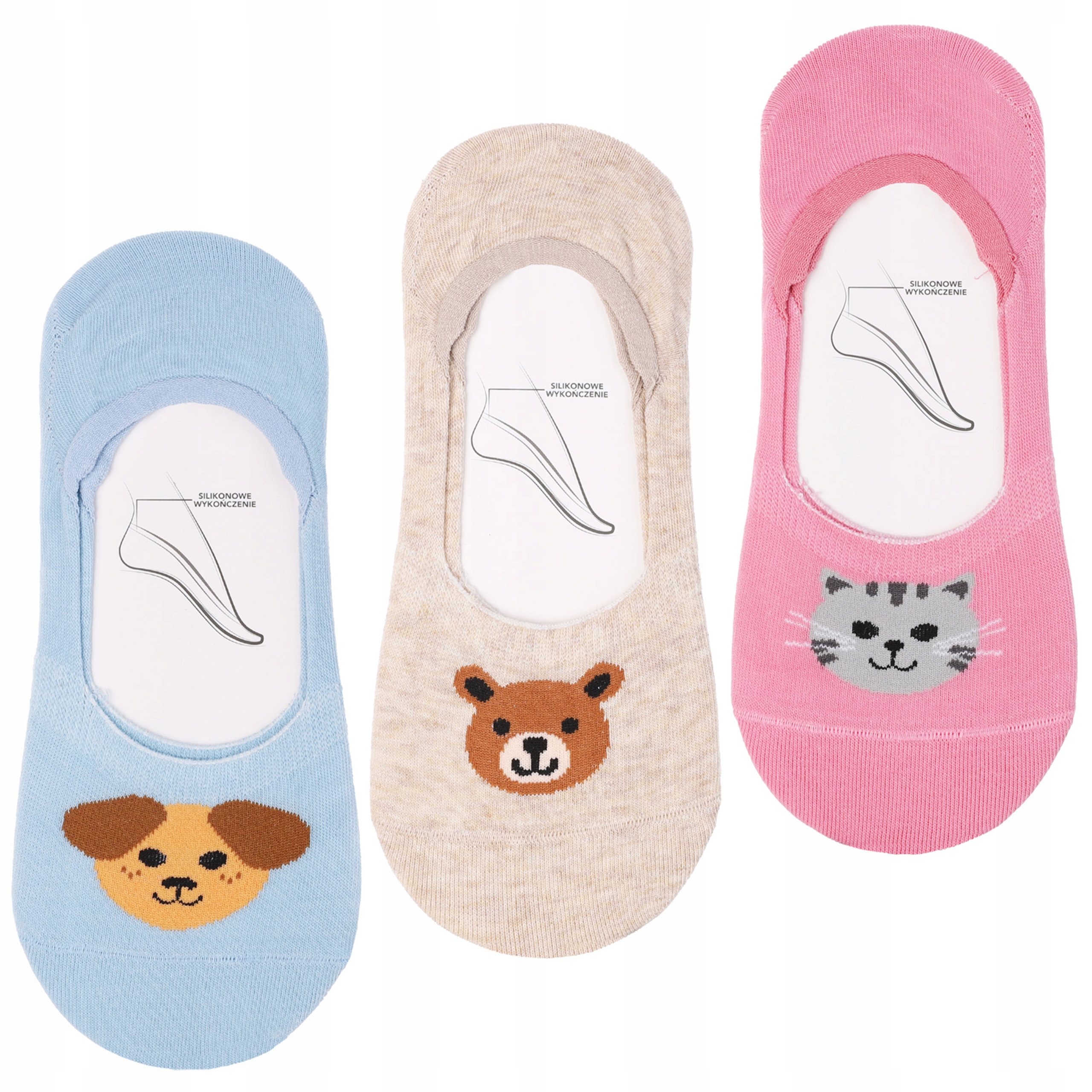 STOPKI DAMSKIE Niskie Skarpety Kot Pies Miś Skarpetki MORAJ 3-pary