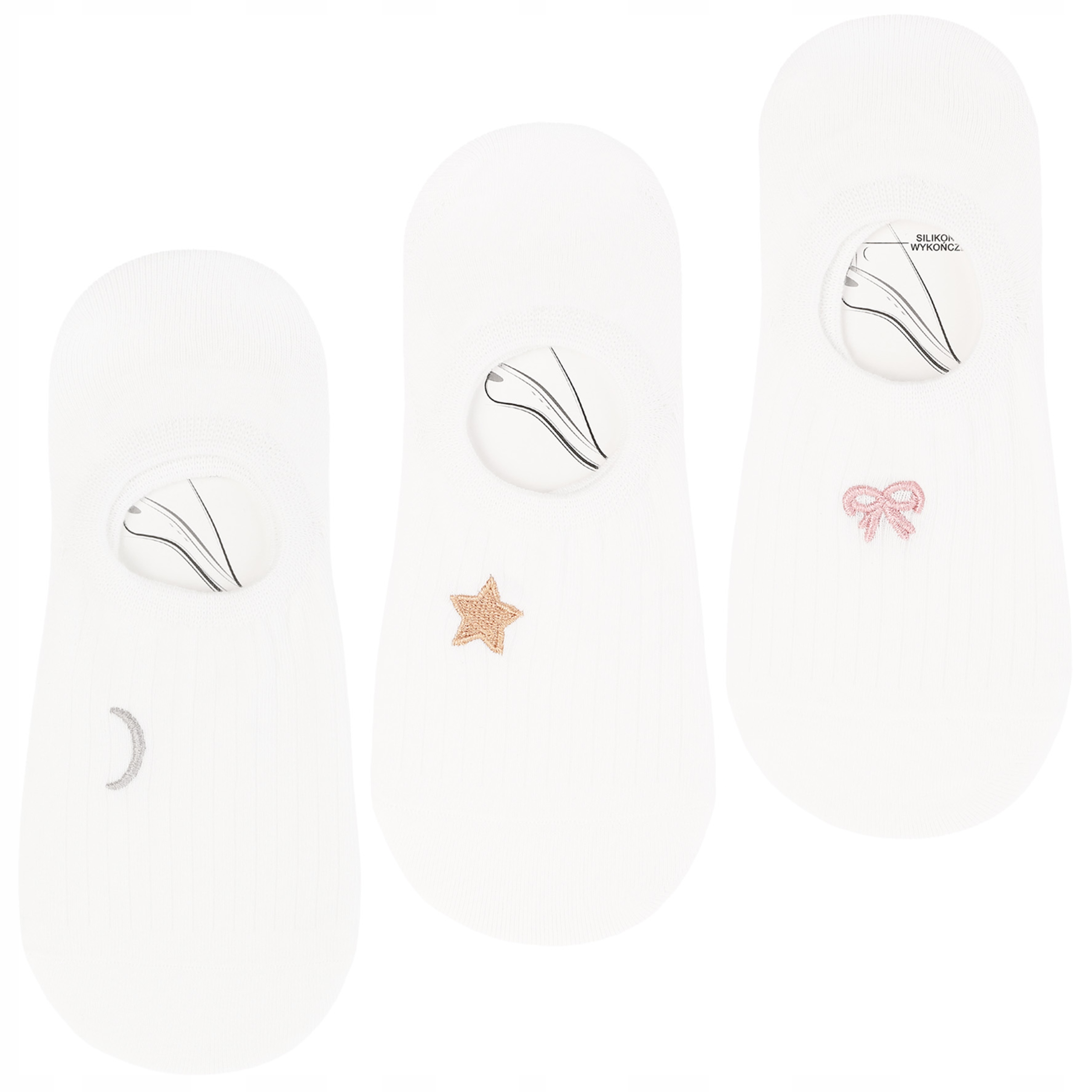 Stopki Niskie Skarpetki Damskie Delikatny Prążek Haft MORAJ 3-pary
