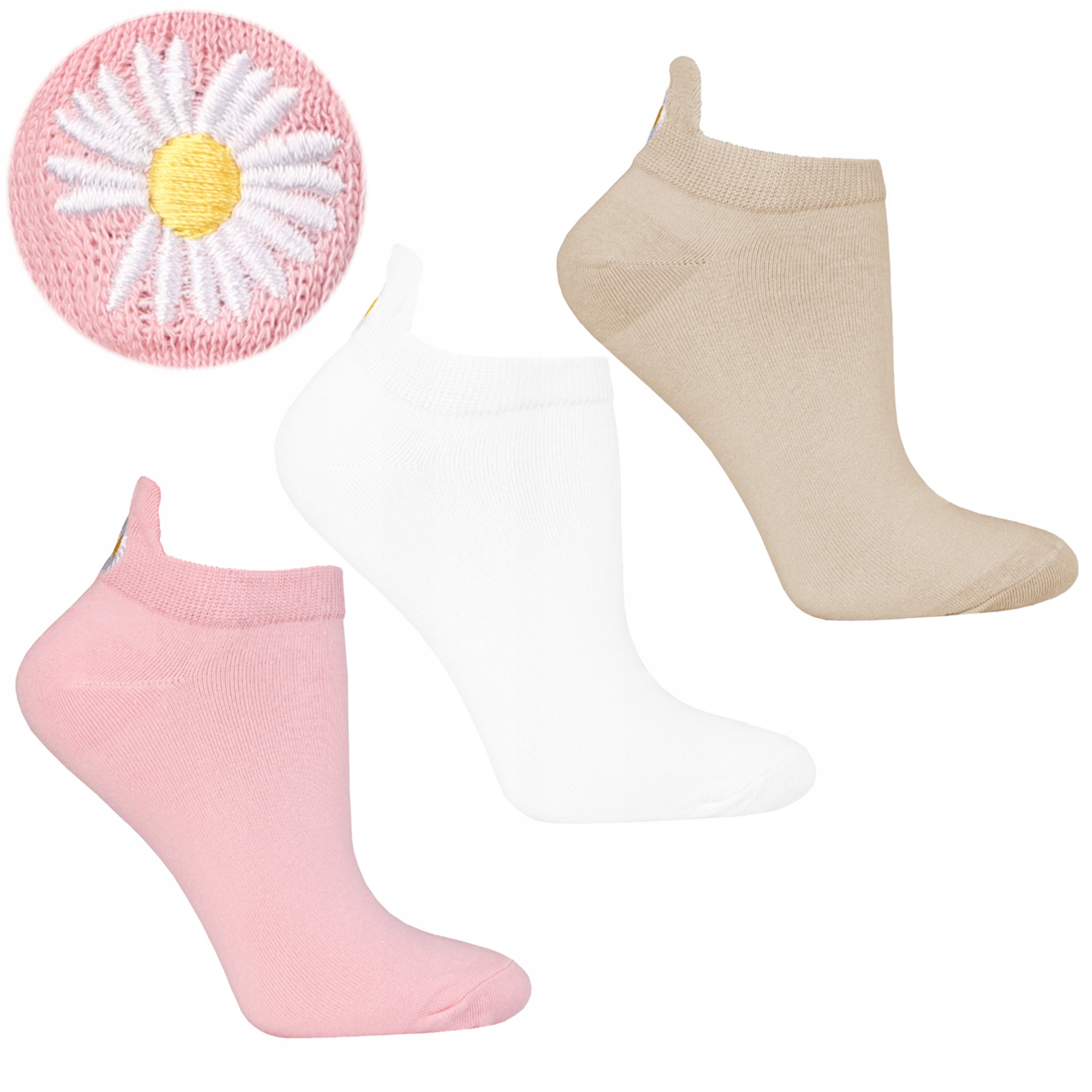 3-pak bawełnianych kolorowych stopek z haftowanymi kwiatami to połączenie funkcjonalności, wygody i stylu. Dzięki nim Twoje stopy będą czuły się rewelacyjnie, a Ty będziesz prezentować się modnie niezależnie od okazji.