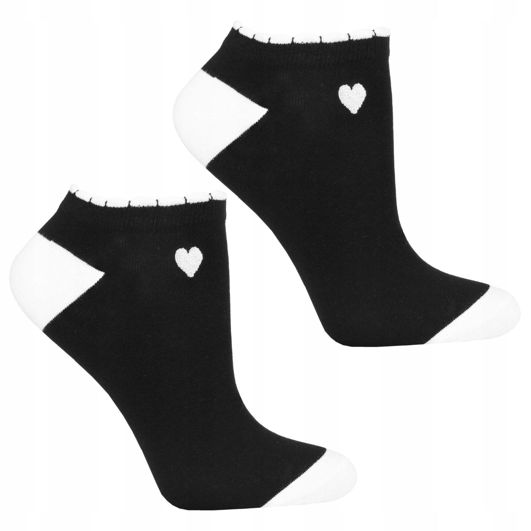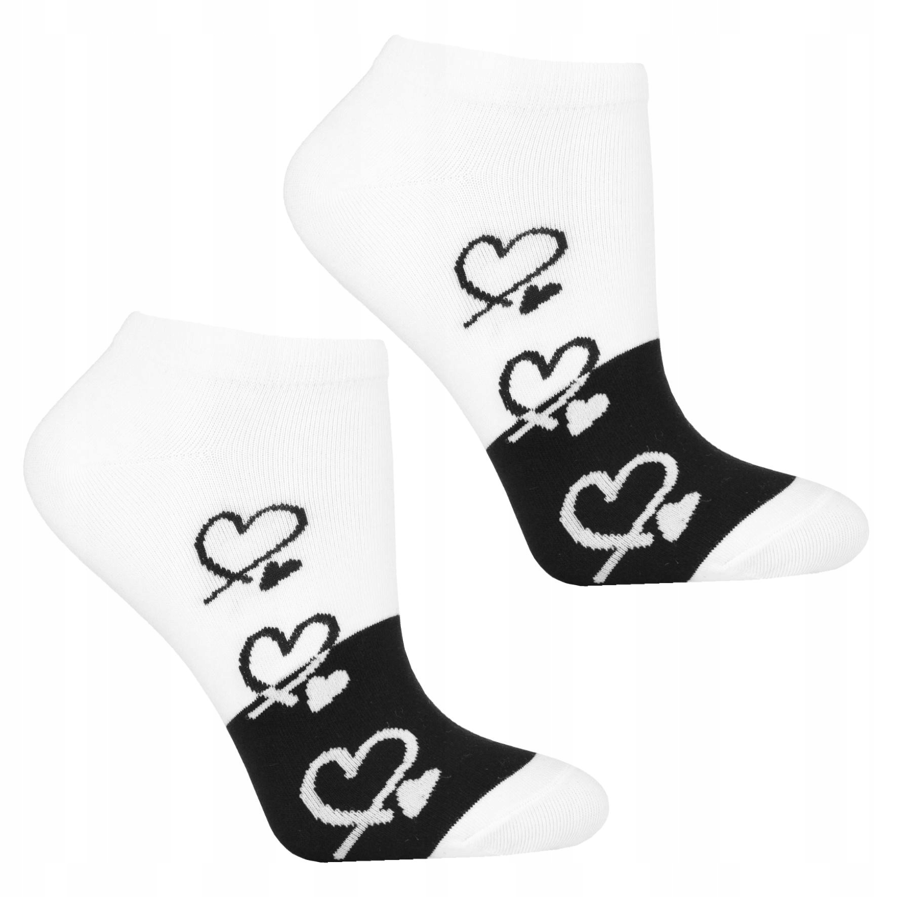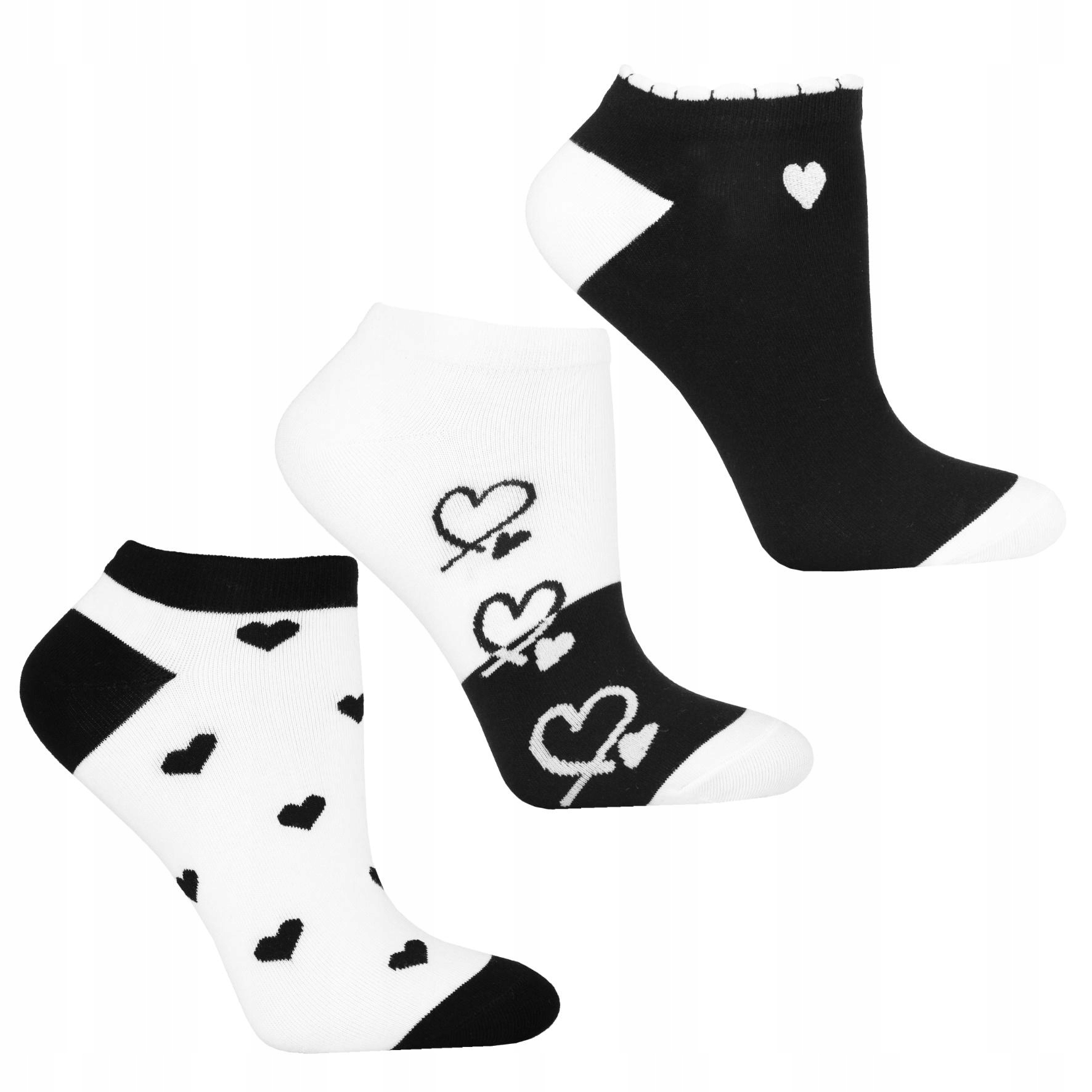Stopki Skarpetki Damskie HAFT Serca Czarno Białe do kostki MORAJ 3PAK