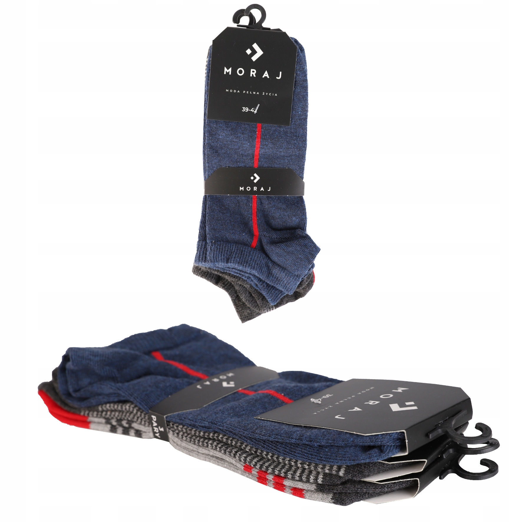 Stopki Skarpetki Męskie Niskie Skarpety Wzór w Paski MORAJ 3-PAK