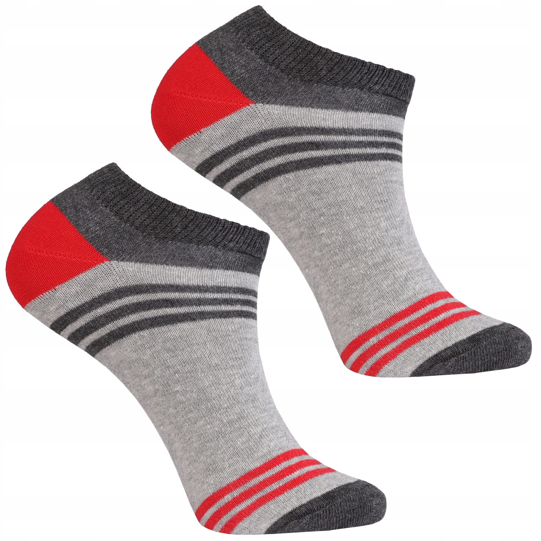 Charakterystycznym elementem tych skarpet są paski, które dodają im stylowego akcentu. Paski są utrzymane w kolorze czerwonym i szarym, co nadaje skarpetom niepowtarzalnego wyglądu i sprawia, że wyróżniają się spośród innych modeli na rynku.