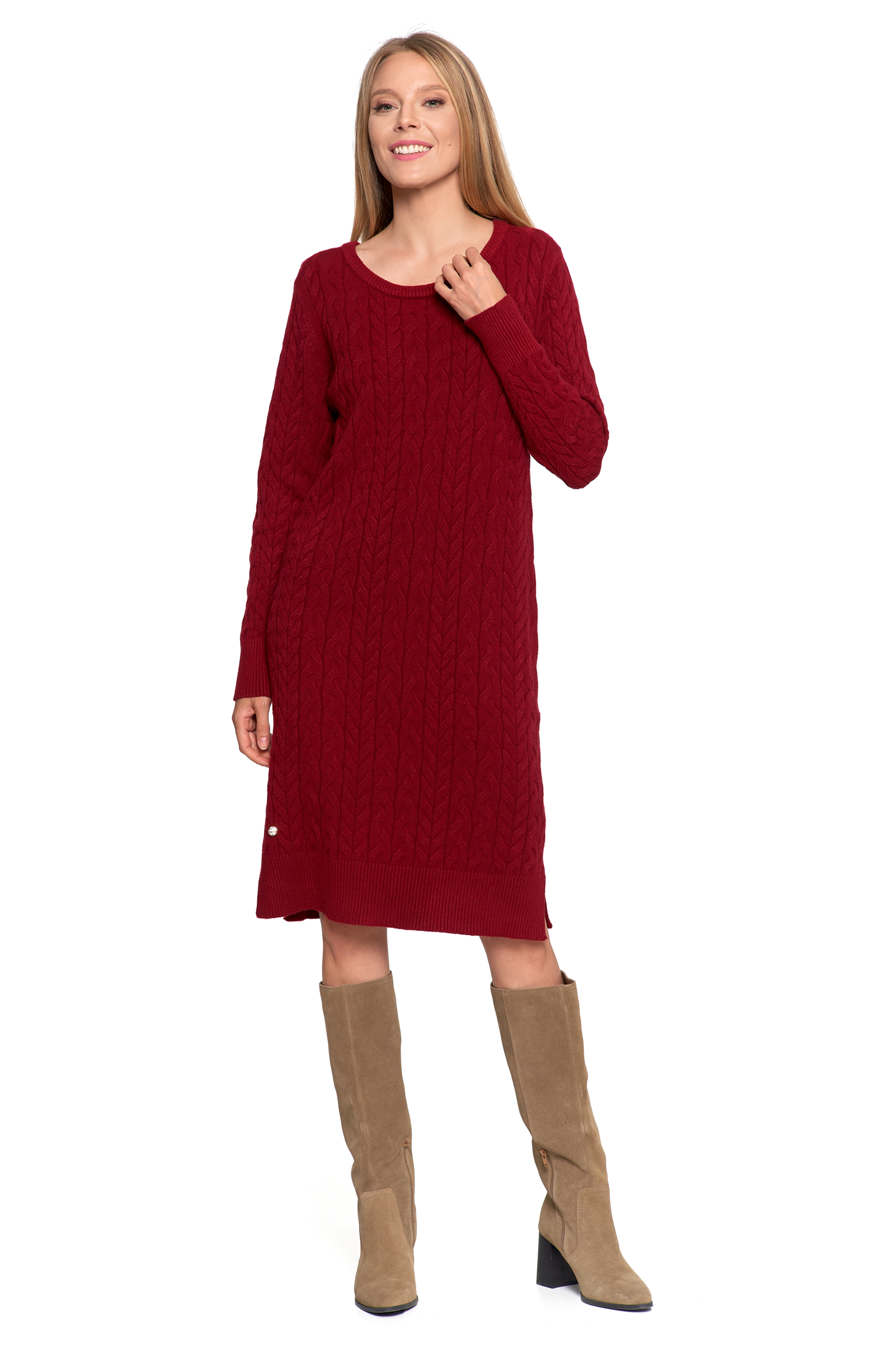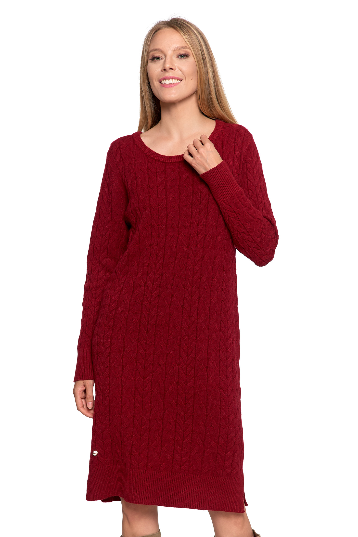 Ta sukienka swetrowa to idealne połączenie wygody i ponadczasowego stylu, stworzone z myślą o chłodniejszych dniach. Wykonana z wysokiej jakości wiskozy, jest miękka, elastyczna i niezwykle przyjemna w dotyku, a klasyczny splot warkoczowy dodaje jej uroku.