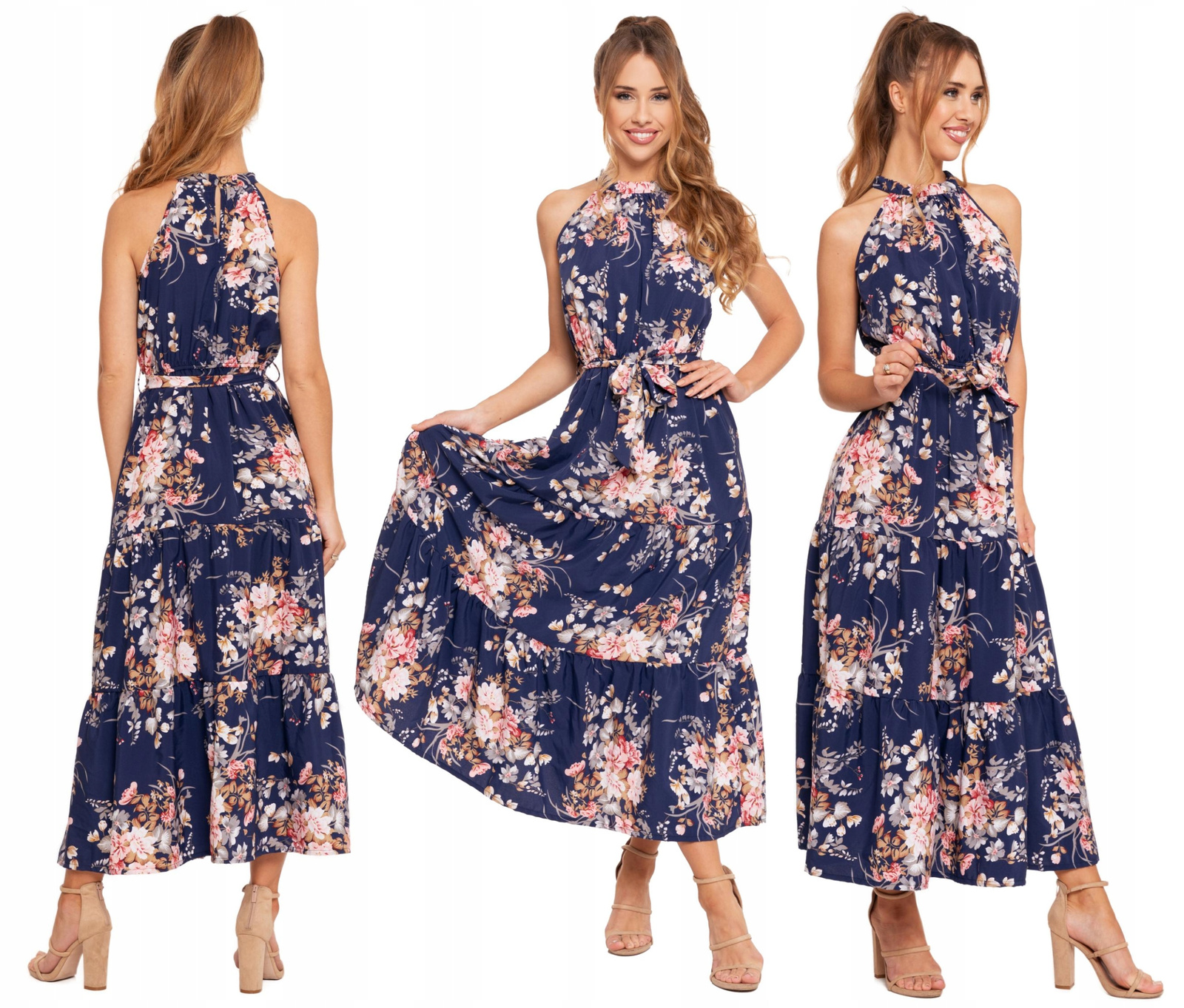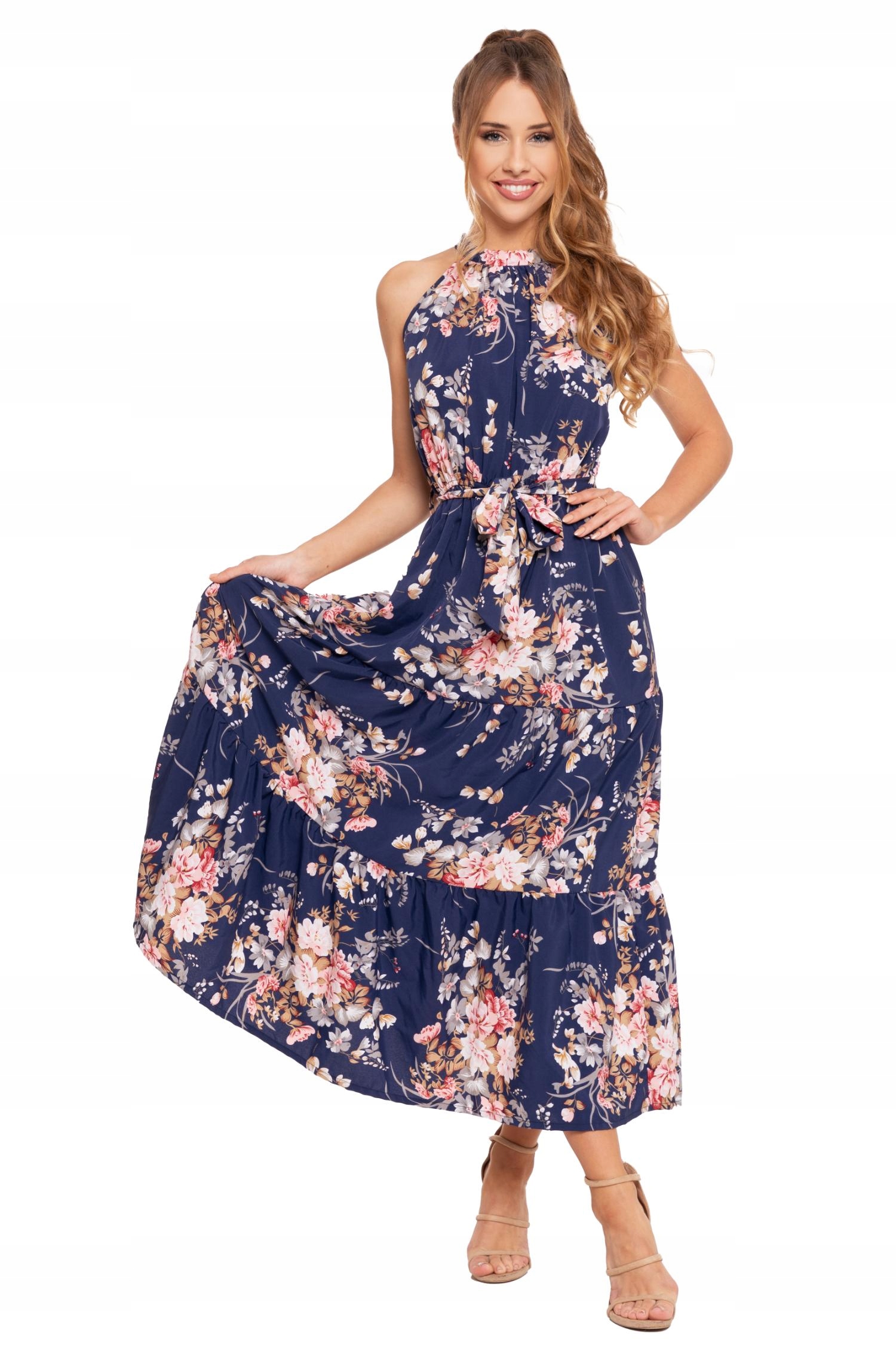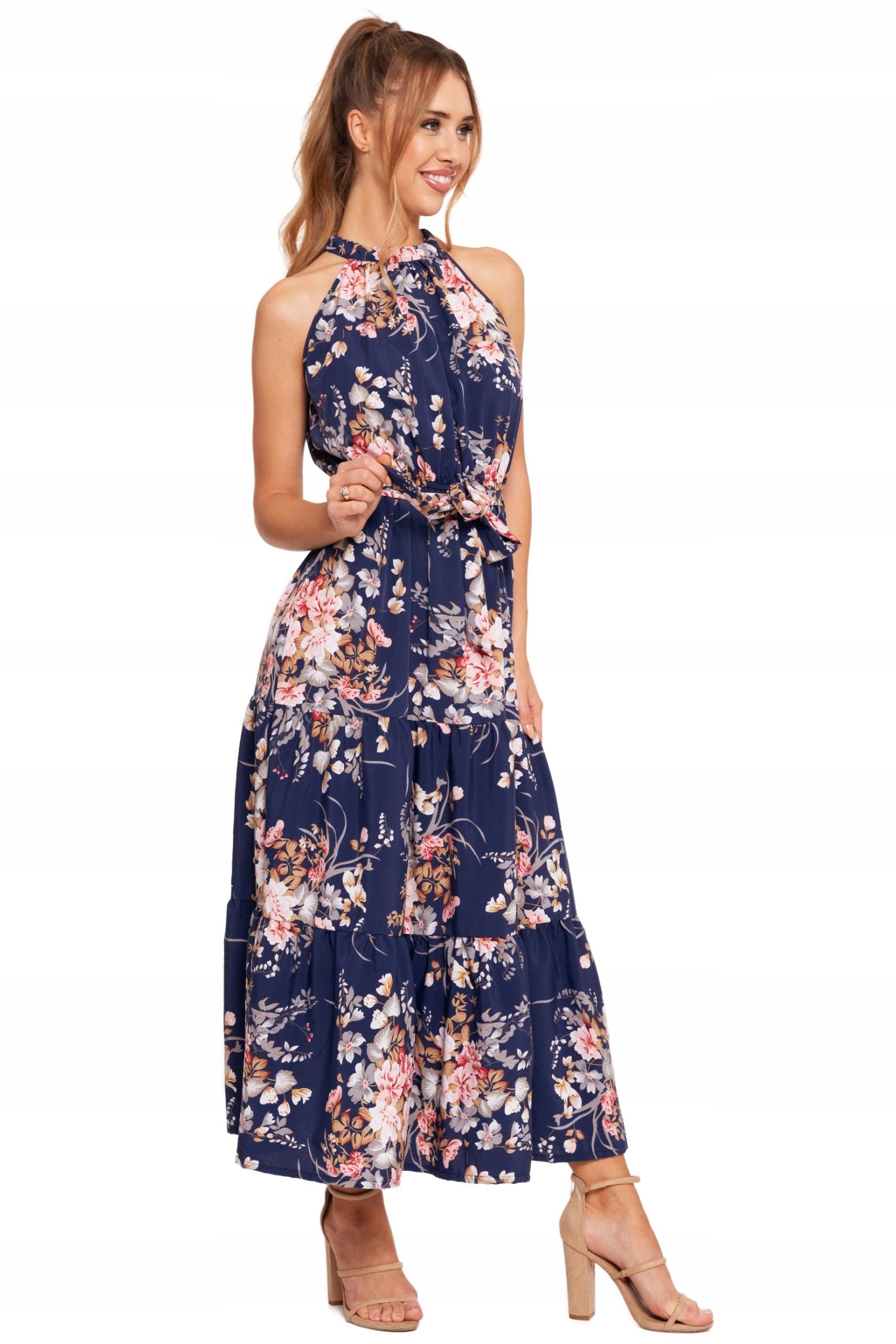 Opinie o SUKIENKA DAMSKA Długa Elegancka Maxi Bez Rękawów w Kwiaty Letnia MORAJ