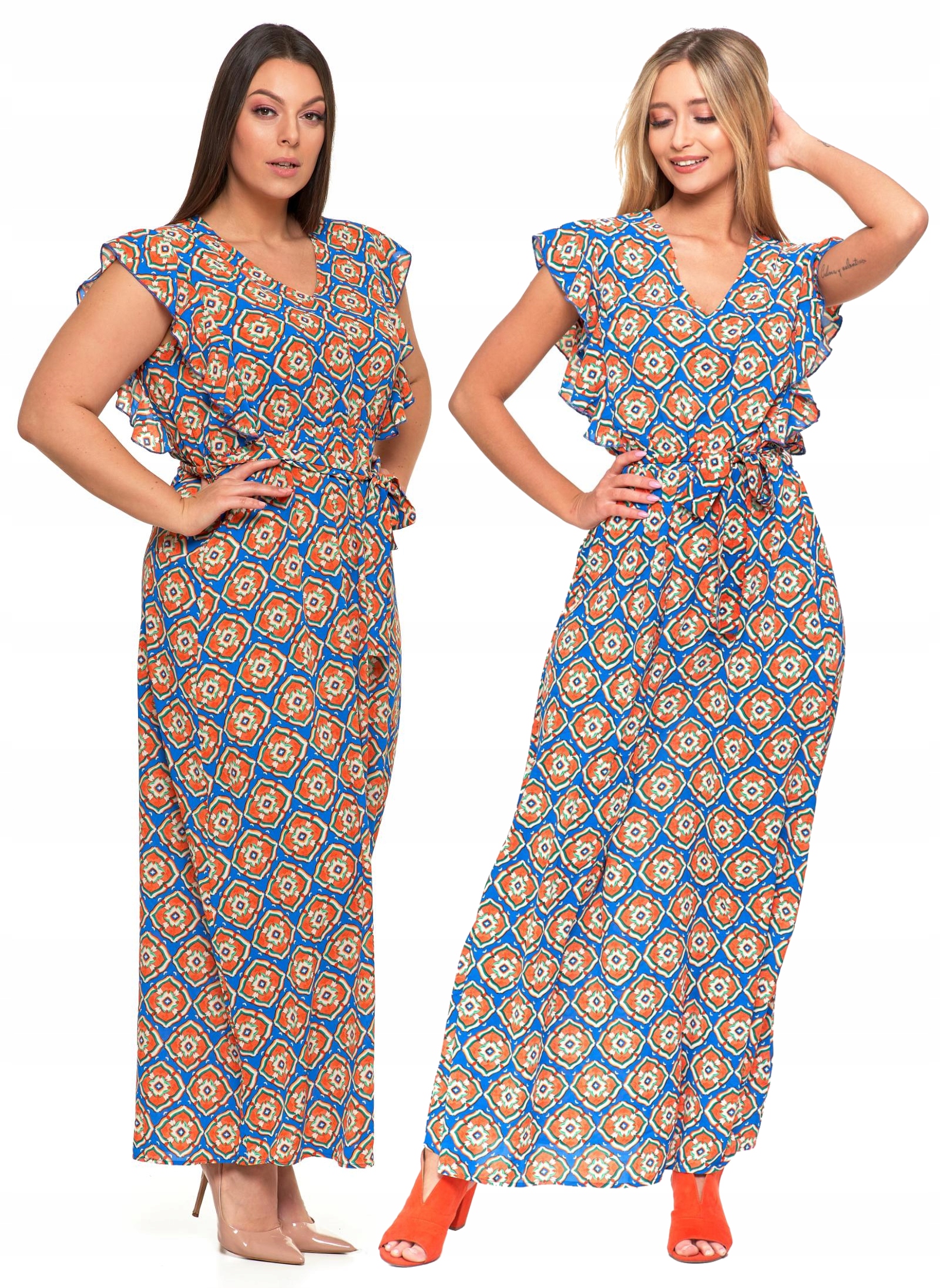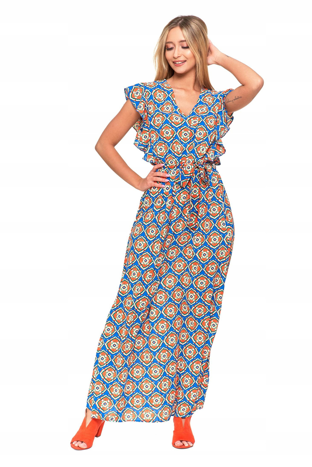 Sukienka Damska Maxi Motylkowy Rękaw Zwiewna Kolorowa na lato MORAJ