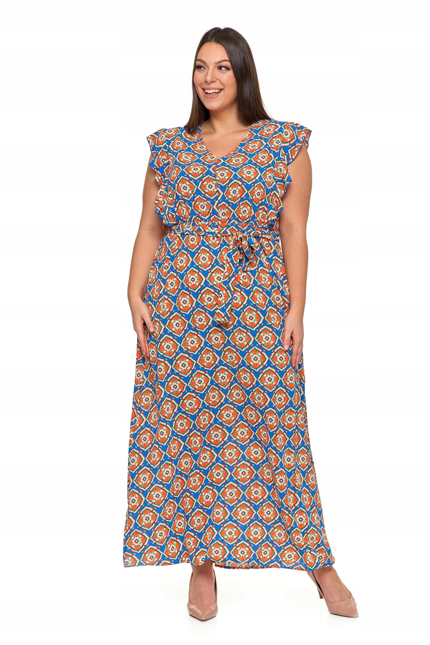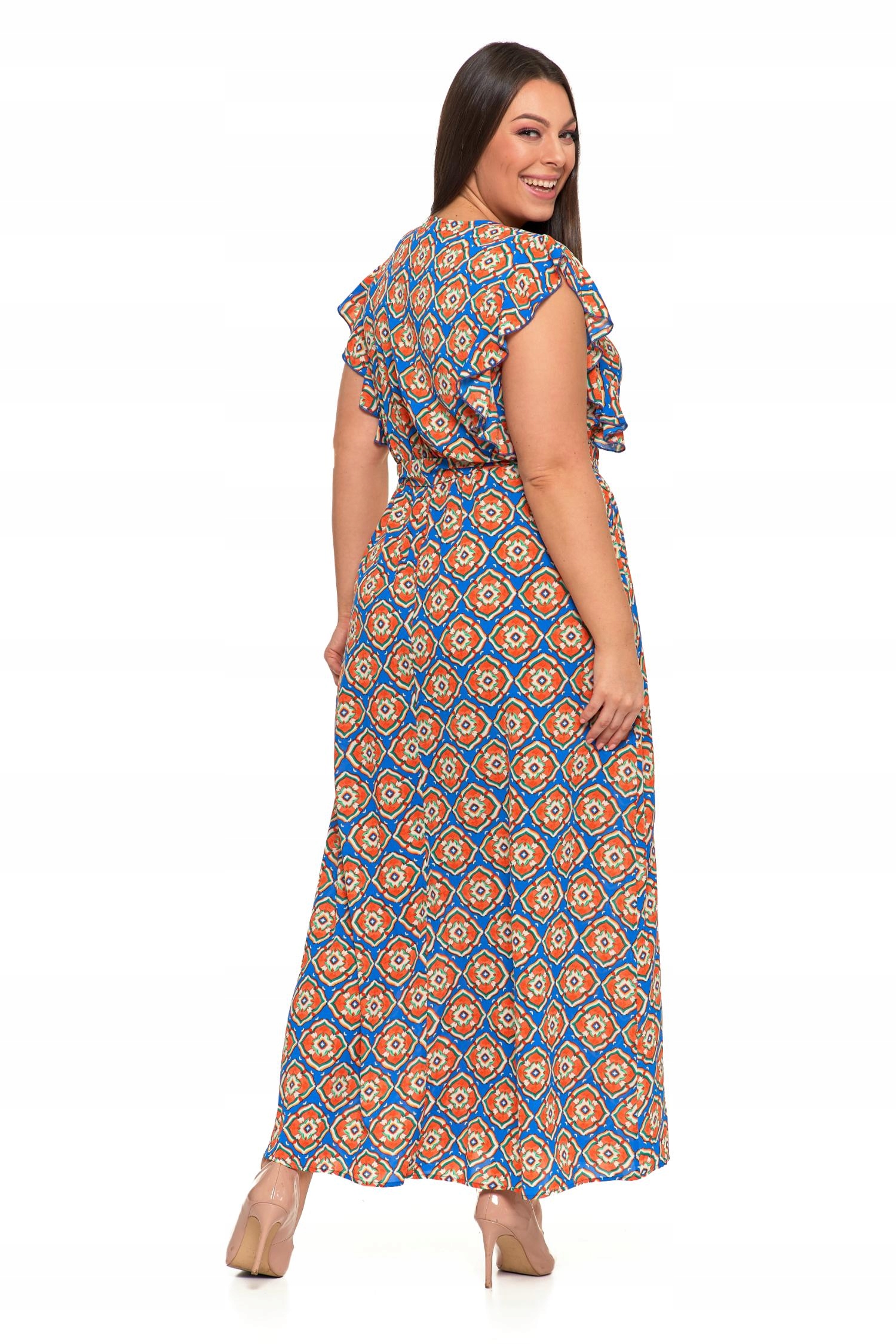 Ta kolorowa sukienka maxi to kwintesencja letniego szyku i wygody. Wyjątkowy, orientalny wzór przywodzi na myśl bogactwo kultury Dalekiego Wschodu, a jego żywe kolory są idealne na wszelkie letnie wydarzenia. Dekolt w serek subtelnie podkreśla szyję, a krótkie, motylkowe rękawy dodają lekkości i swobody.