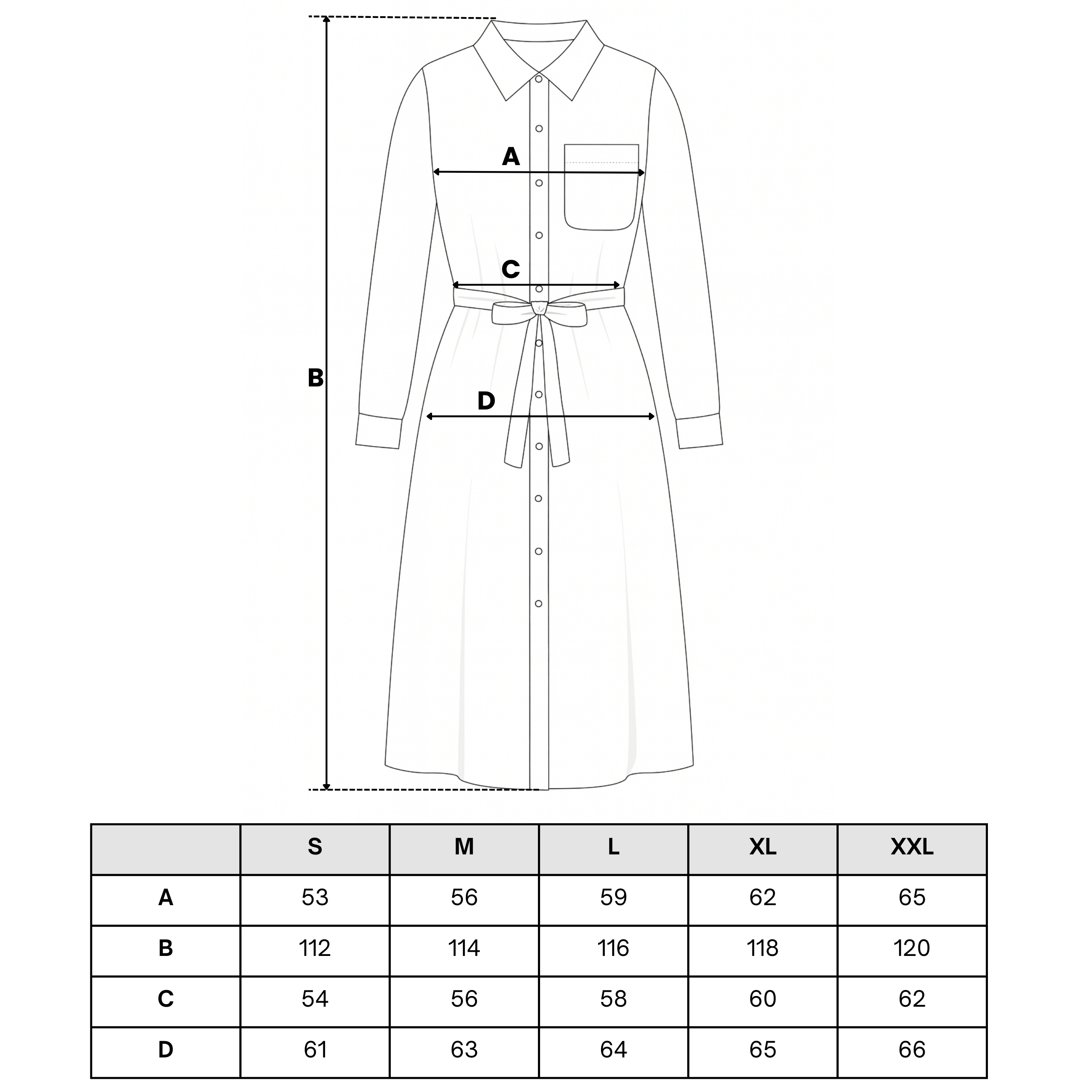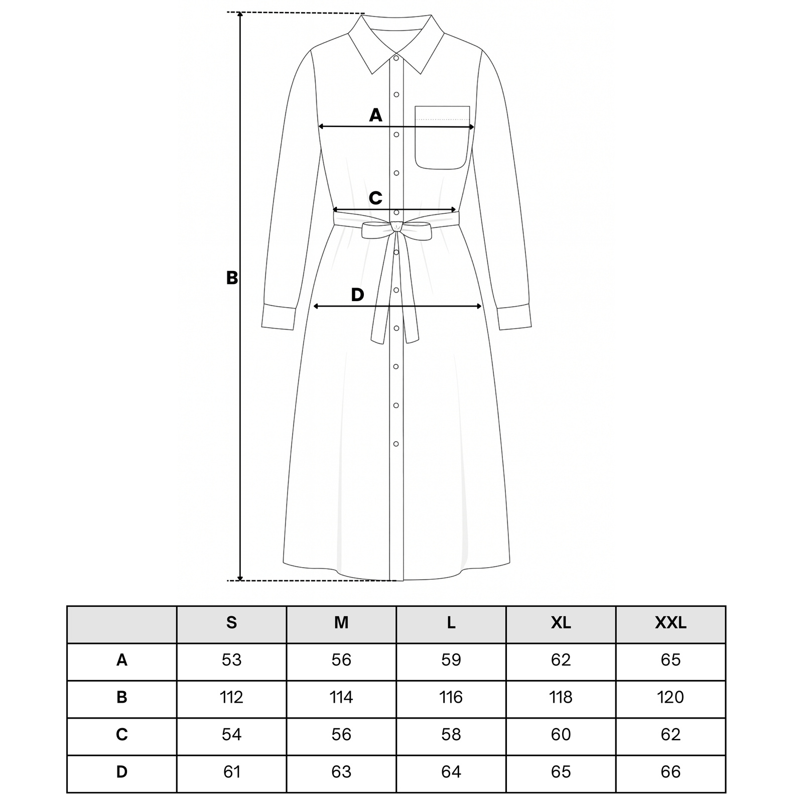 • Koszulowy krój z kołnierzykiem – ponadczasowy fason pasujący na wiele okazji.