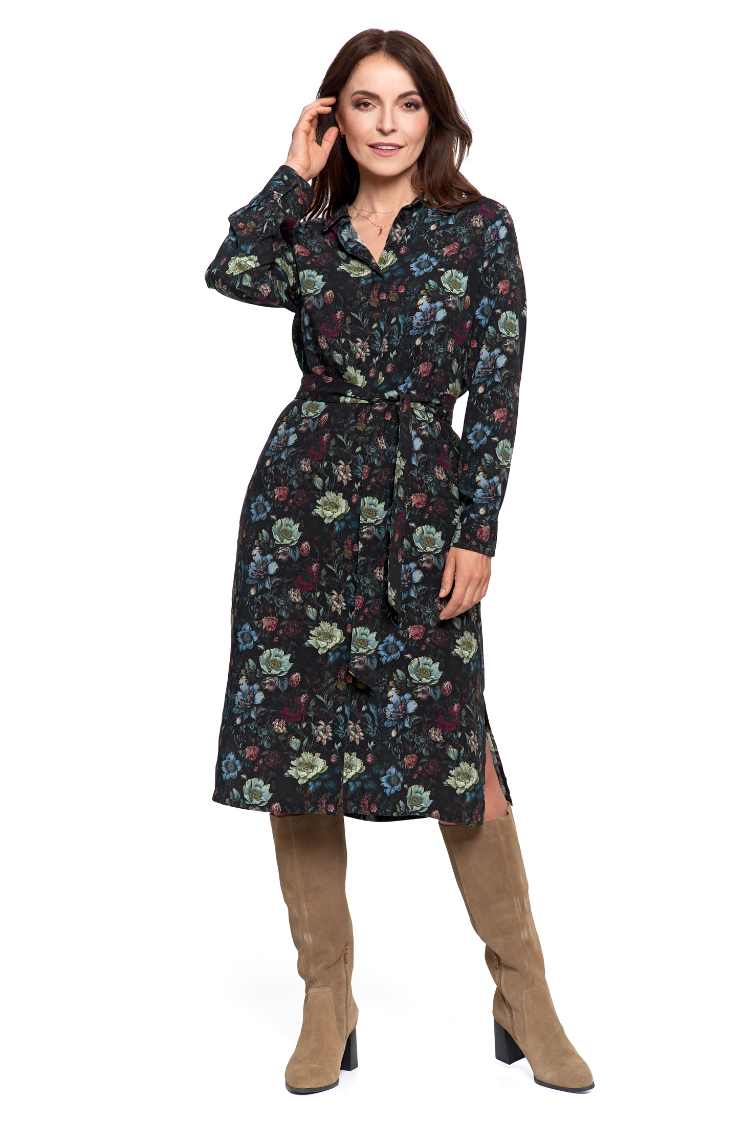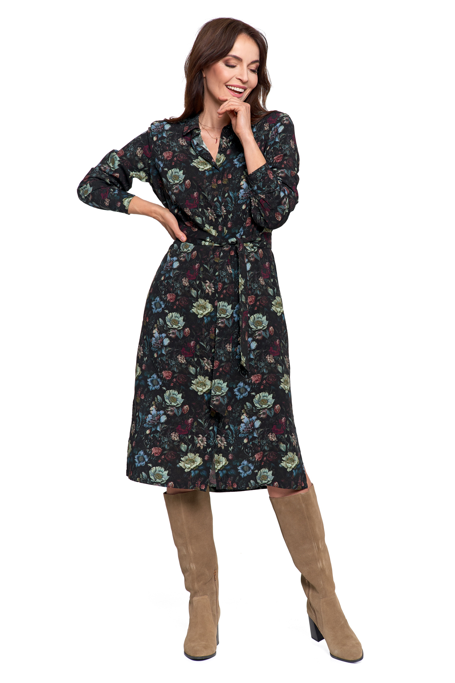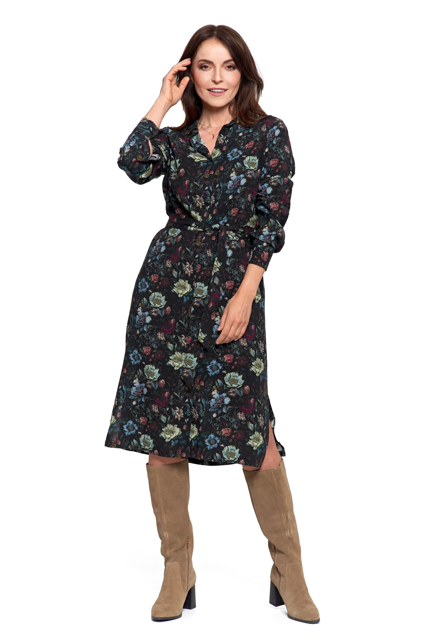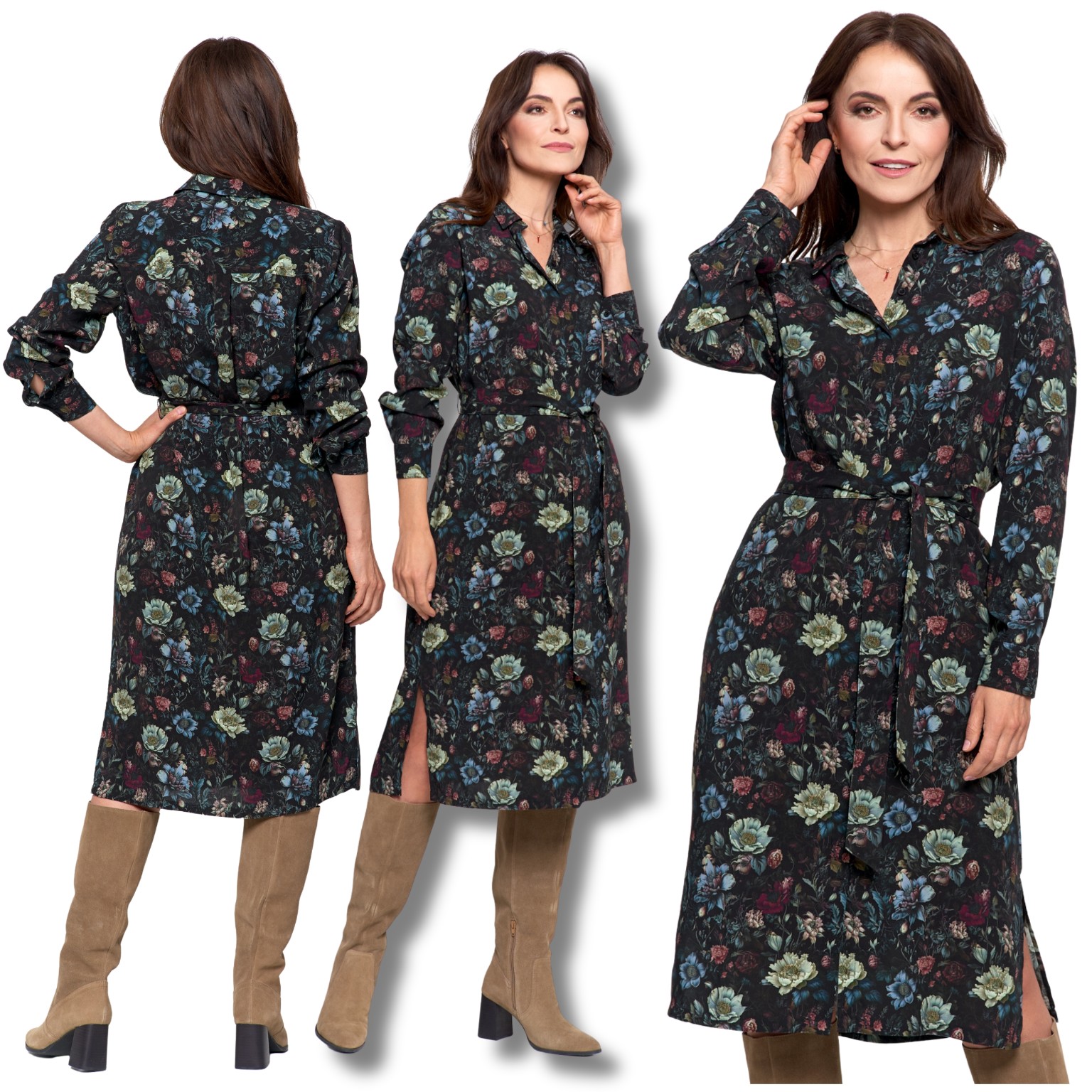 SUKIENKA DAMSKA MIDI KOSZULOWA SUKNIA Z WISKOZY W KWIATY MODNA MORAJ