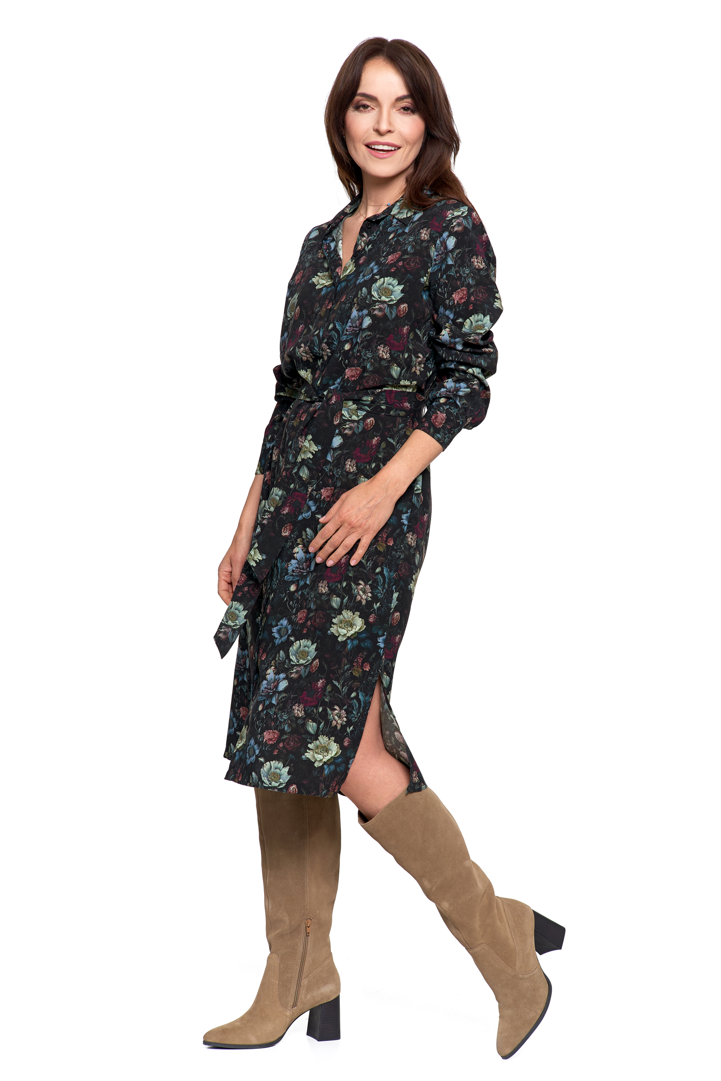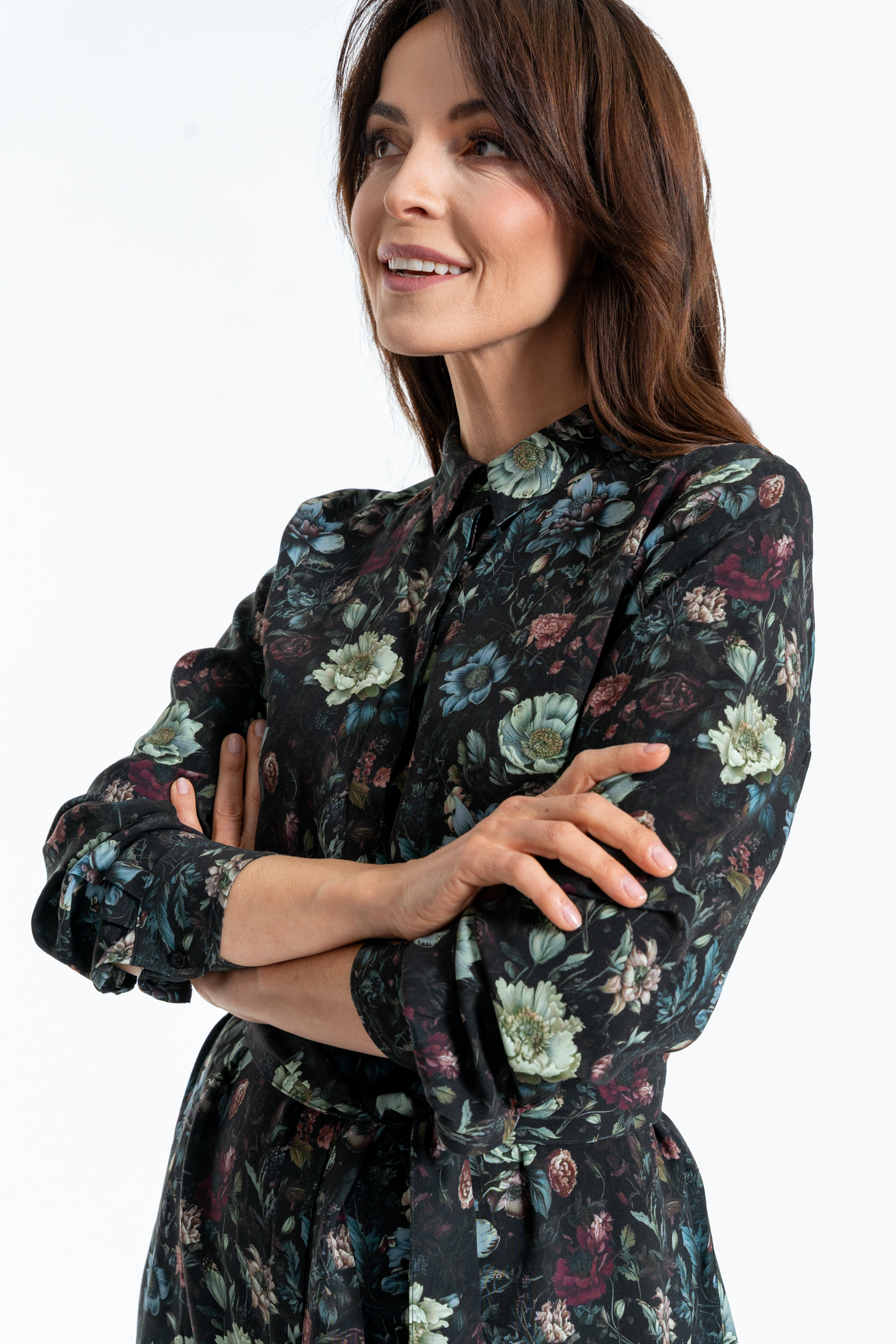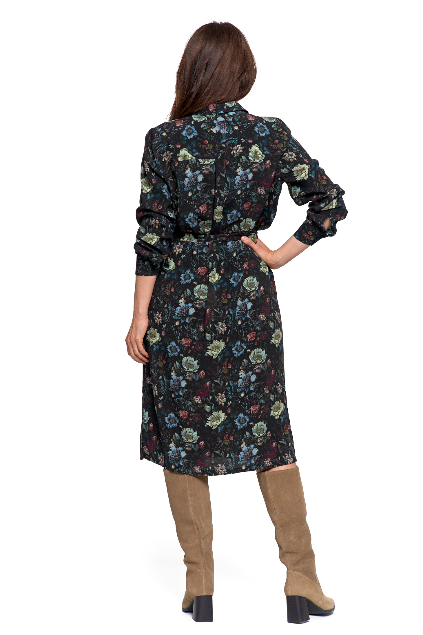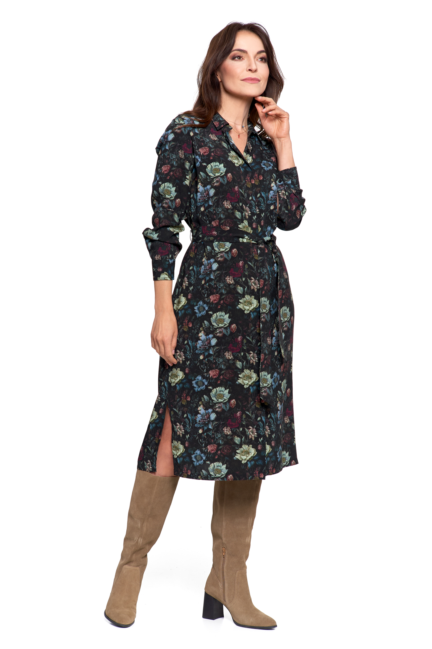 SUKIENKA DAMSKA MIDI KOSZULOWA SUKNIA Z WISKOZY W KWIATY MODNA MORAJ