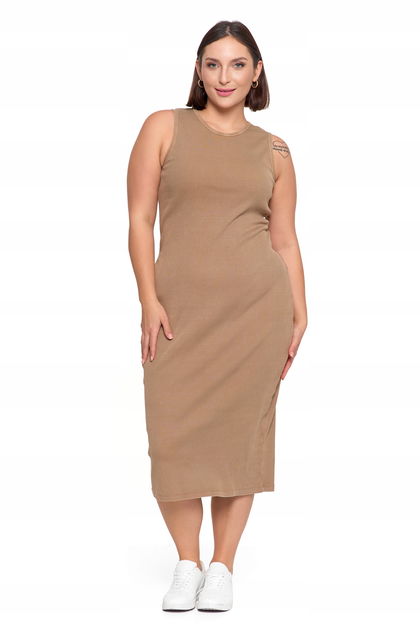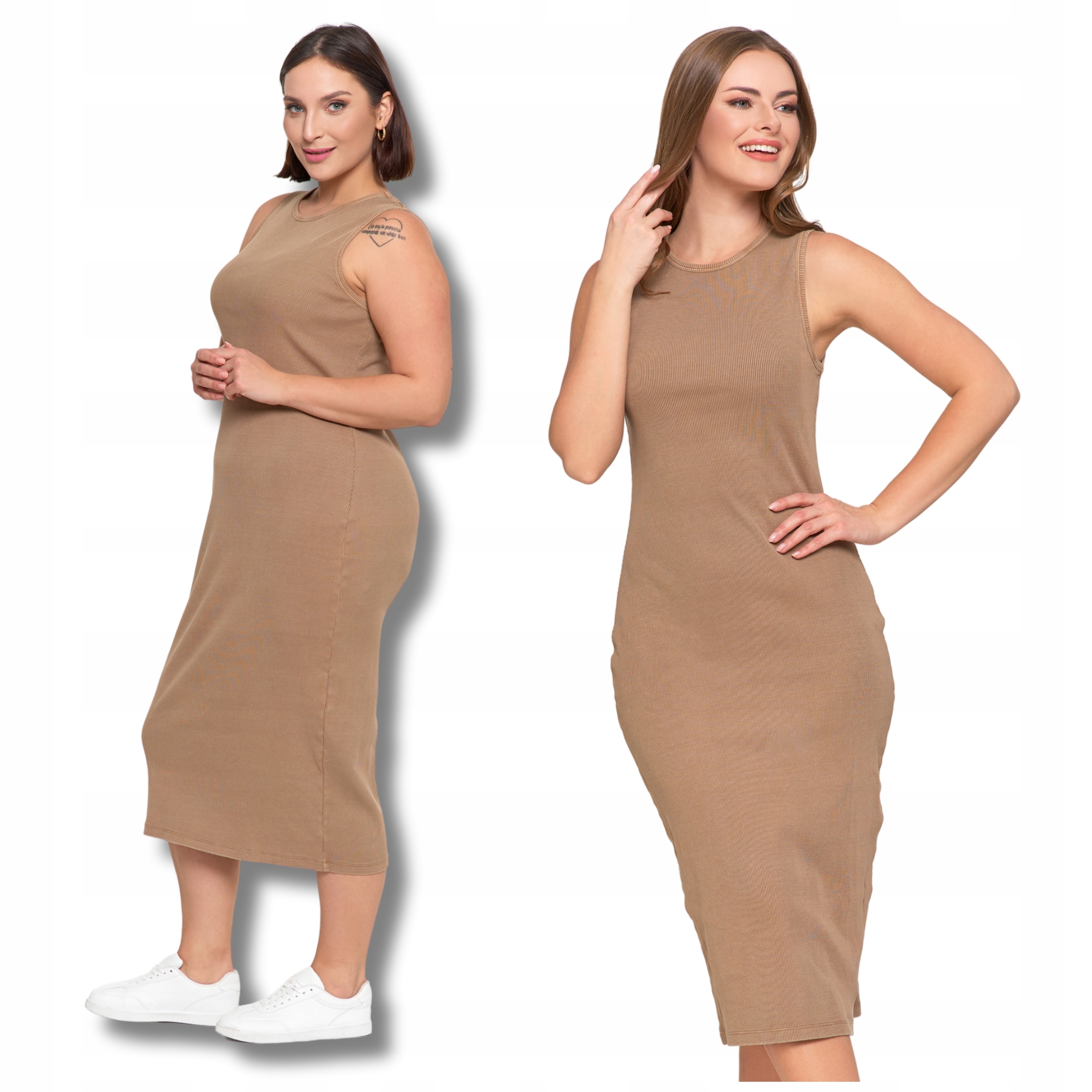 Ta sukienka midi w prążek łączy modny, sportowo-casualowy wygląd z maksymalnym komfortem. Miękka, elastyczna bawełniana dzianina z elastanem idealnie dopasowuje się do sylwetki, podkreślając kobiecą figurę.