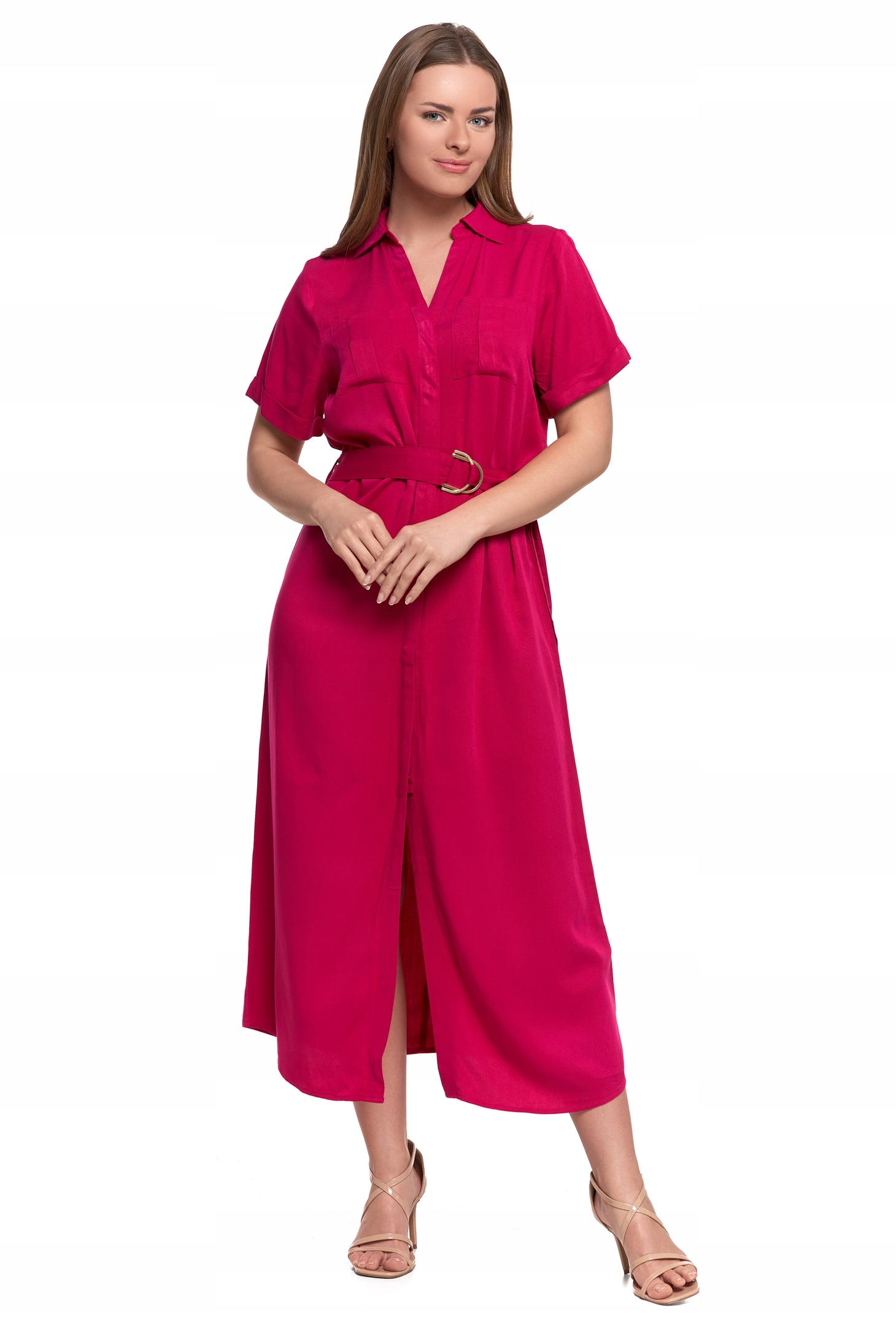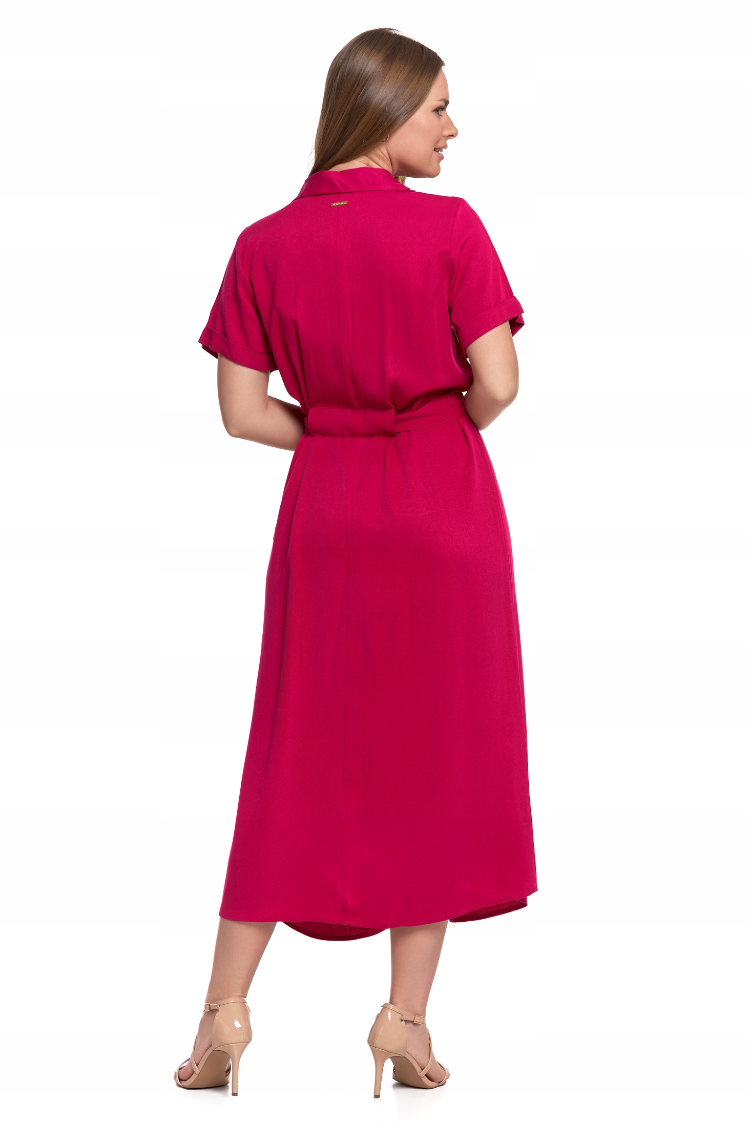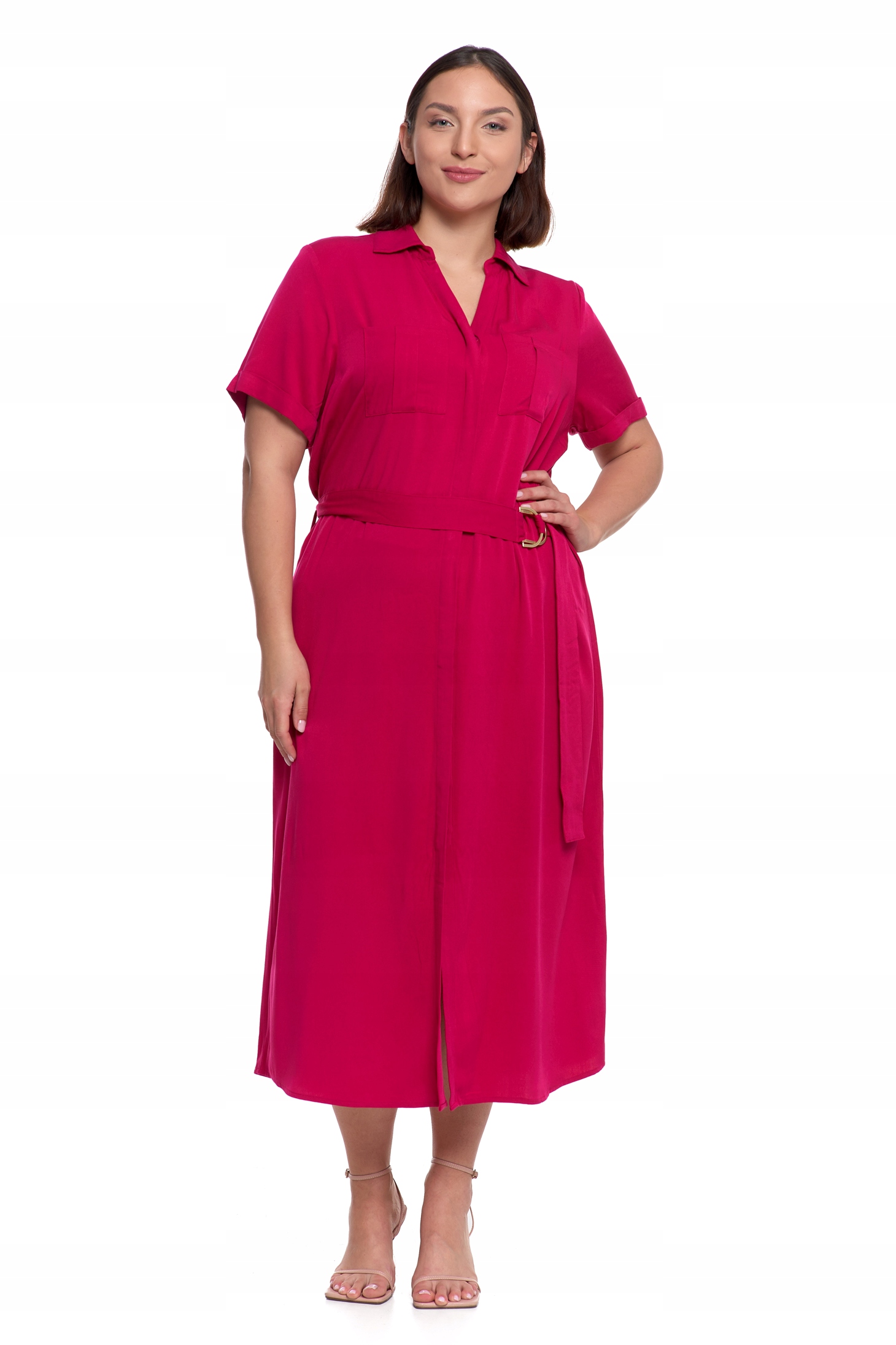 Ta stylowa sukienka szmizjerka midi to doskonały wybór dla kobiet ceniących klasyczną elegancję i komfort. Wykonana w 100% z lekkiej, przewiewnej wiskozy, zapewnia wygodę nawet w ciepłe dni. Luźny krój subtelnie podkreśla sylwetkę, a pasek w talii pozwala na idealne dopasowanie i podkreślenie kobiecych kształtów.