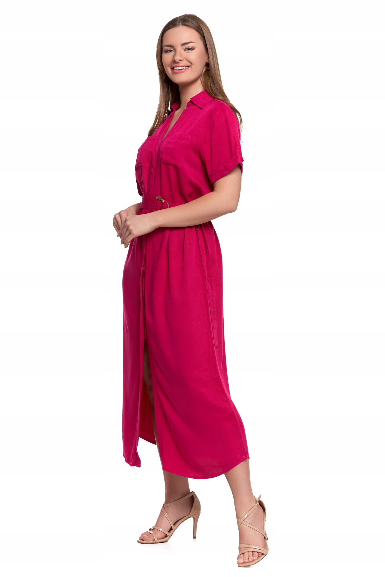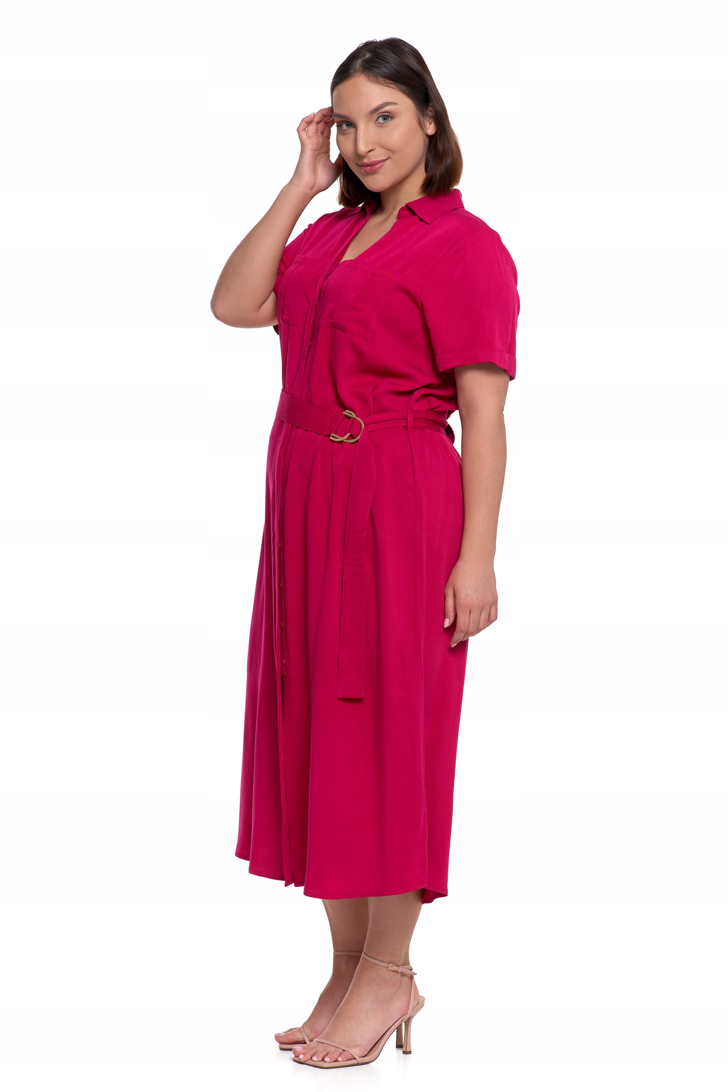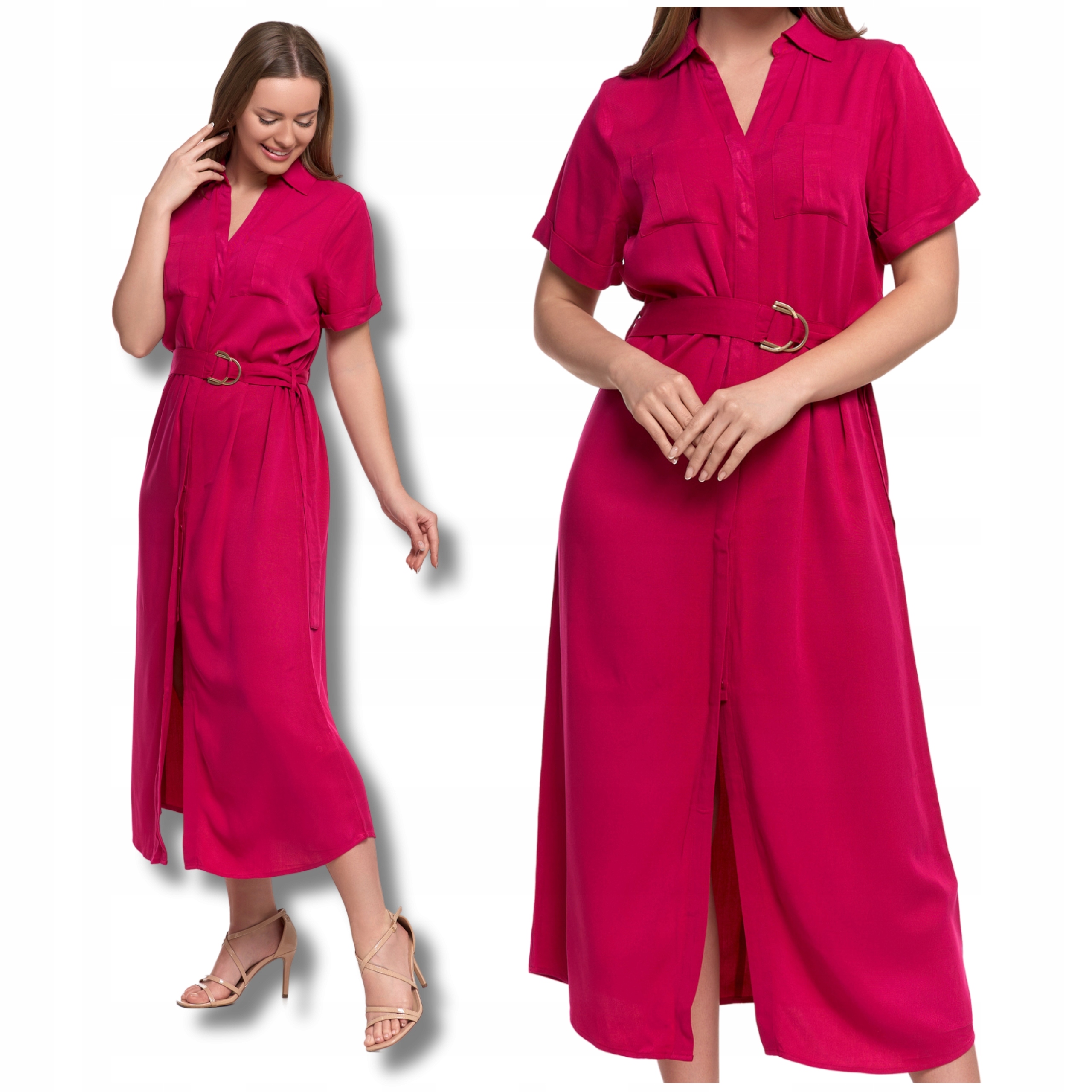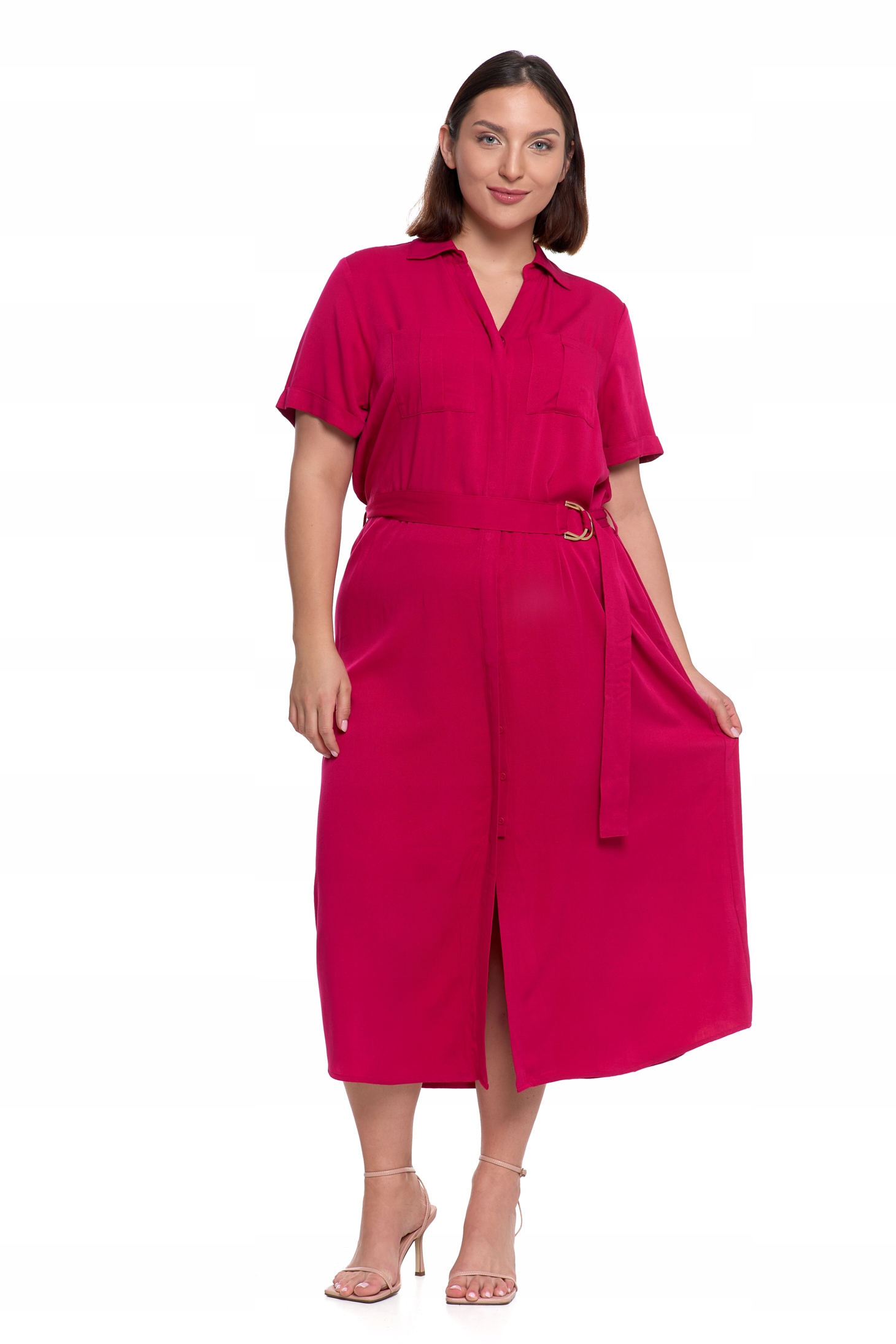 Ta stylowa sukienka szmizjerka midi to doskonały wybór dla kobiet ceniących klasyczną elegancję i komfort. Wykonana w 100% z lekkiej, przewiewnej wiskozy, zapewnia wygodę nawet w ciepłe dni. Luźny krój subtelnie podkreśla sylwetkę, a pasek w talii pozwala na idealne dopasowanie i podkreślenie kobiecych kształtów.