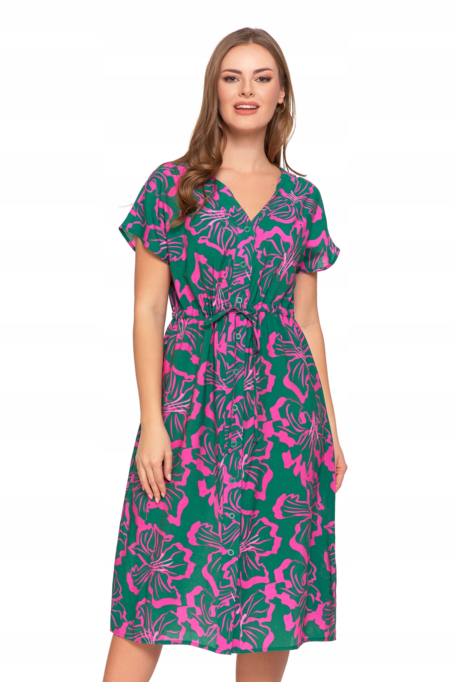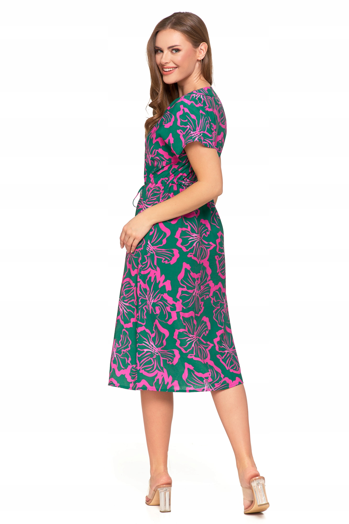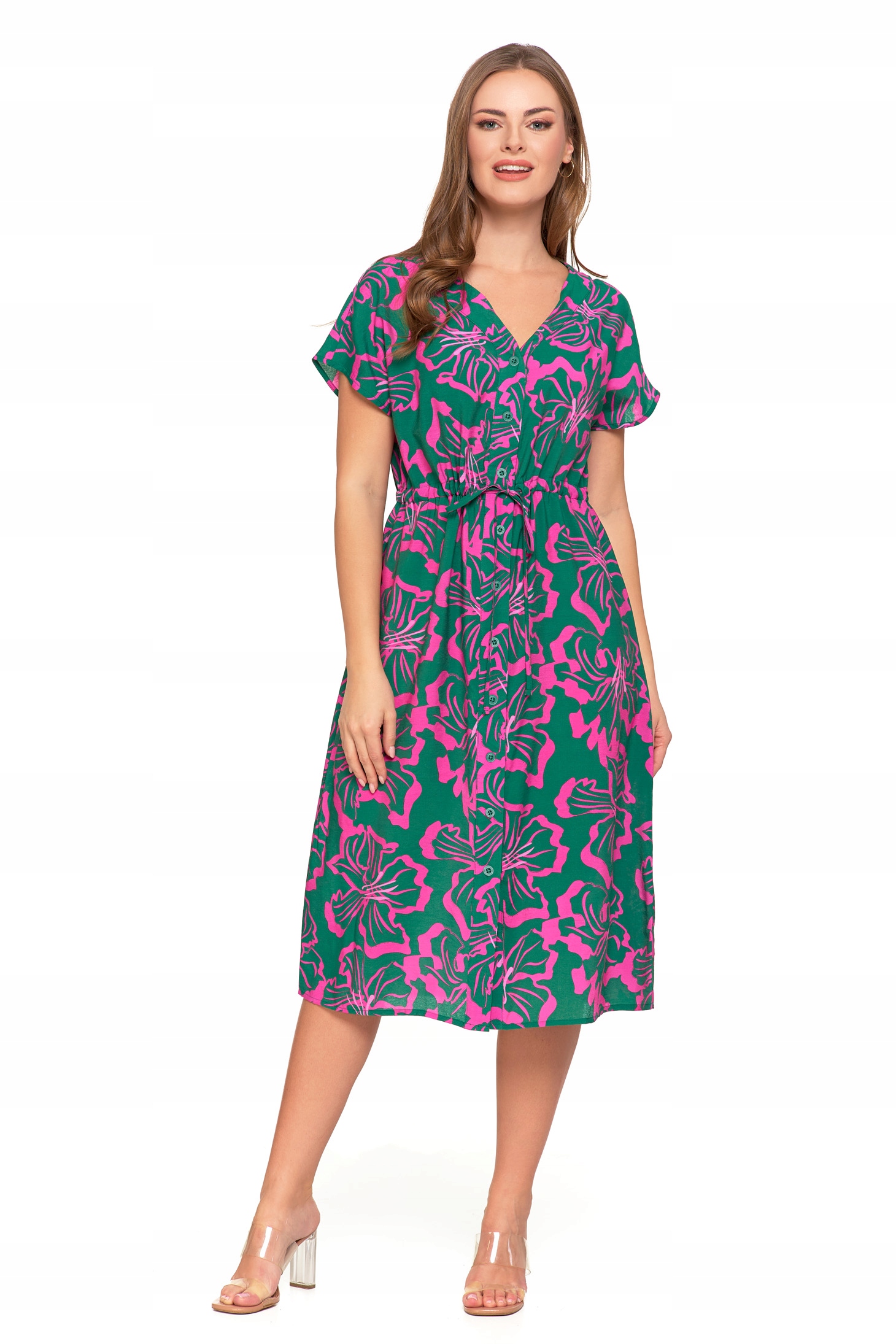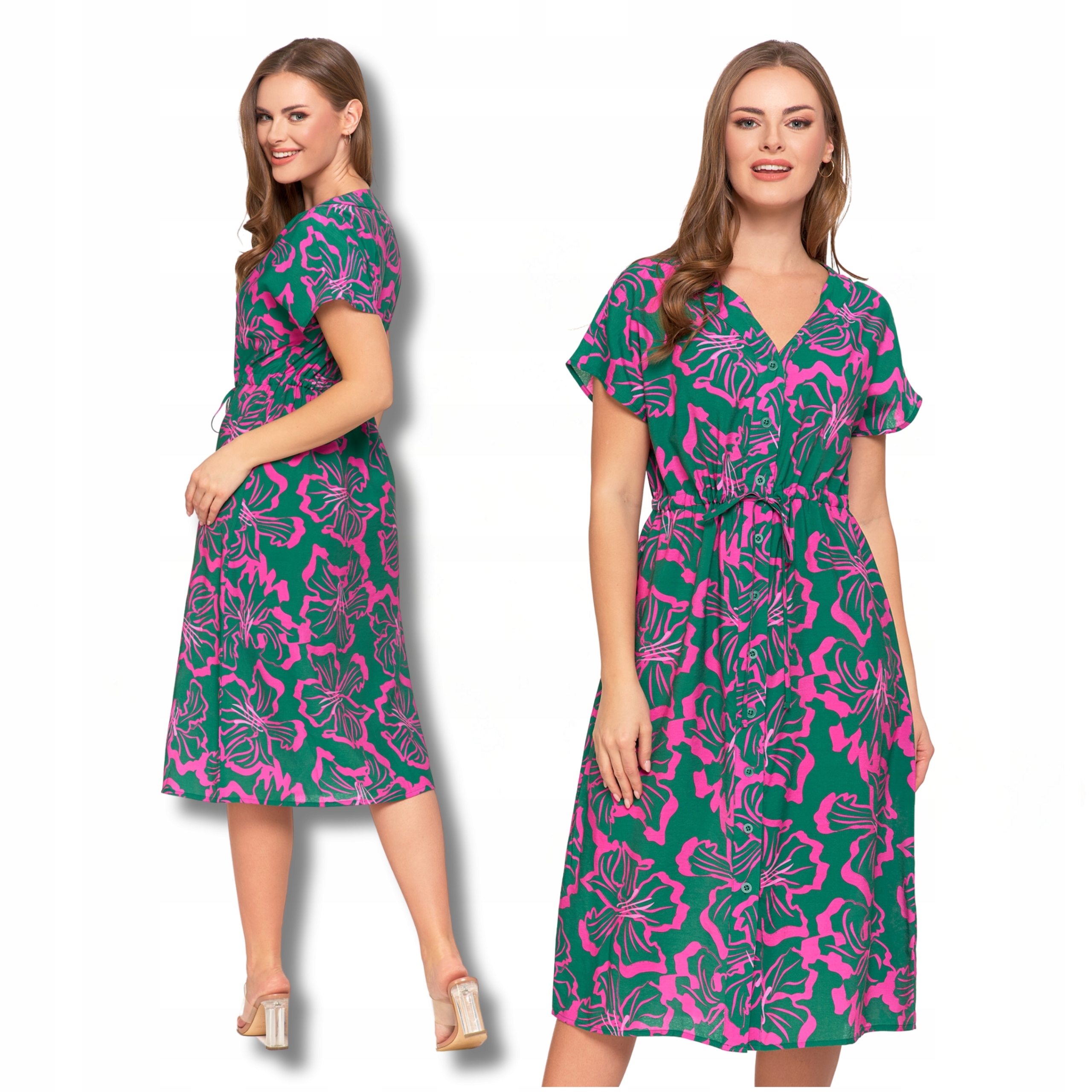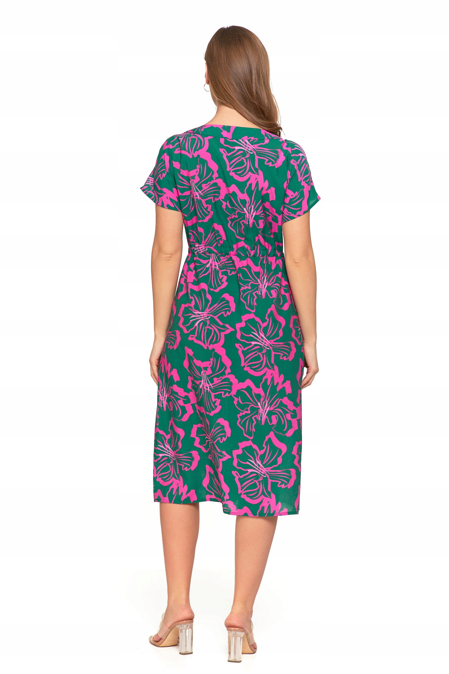 SUKIENKA DAMSKA MIDI Wzorzysta Elegancka Suknia na Lato Lekka MORAJ