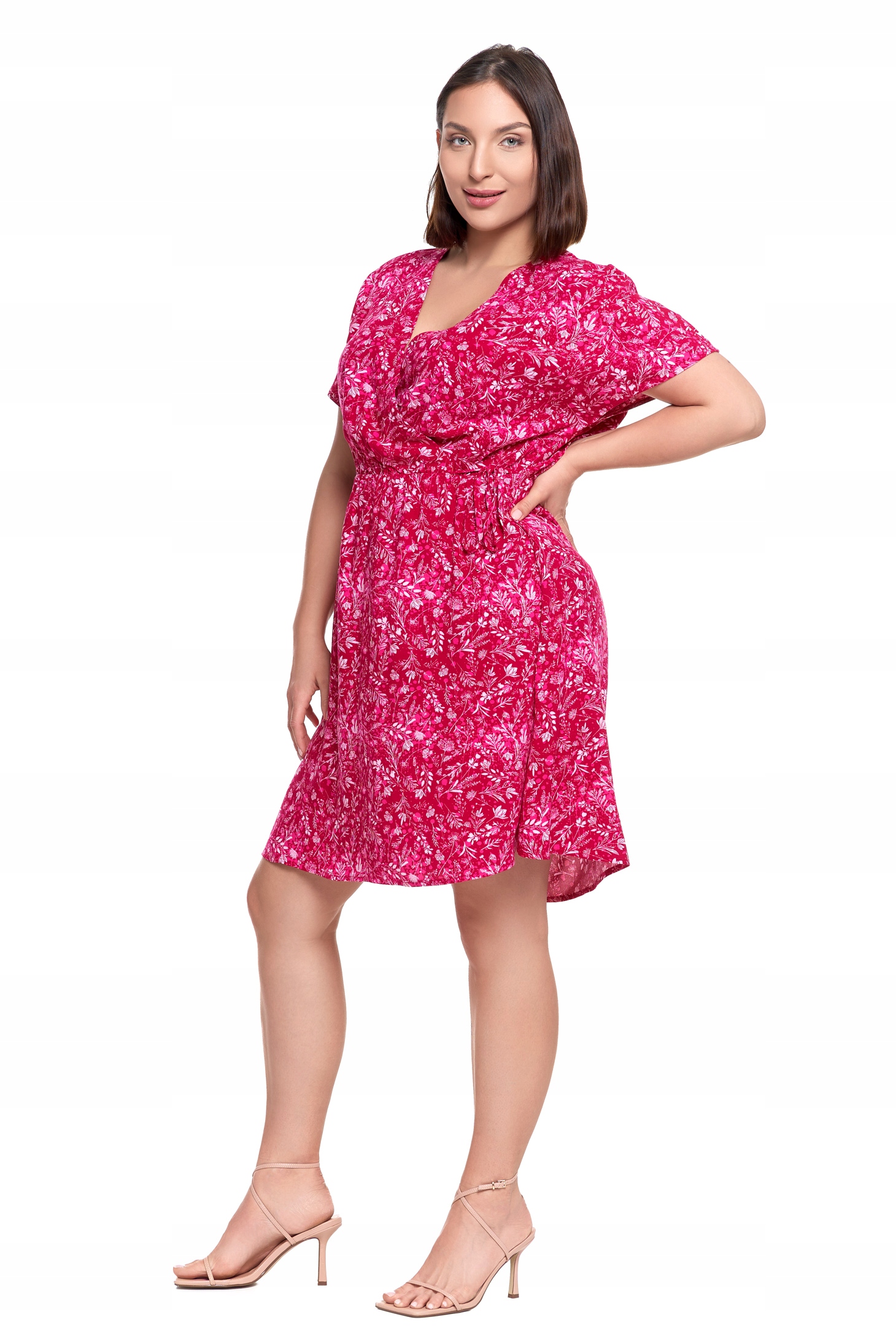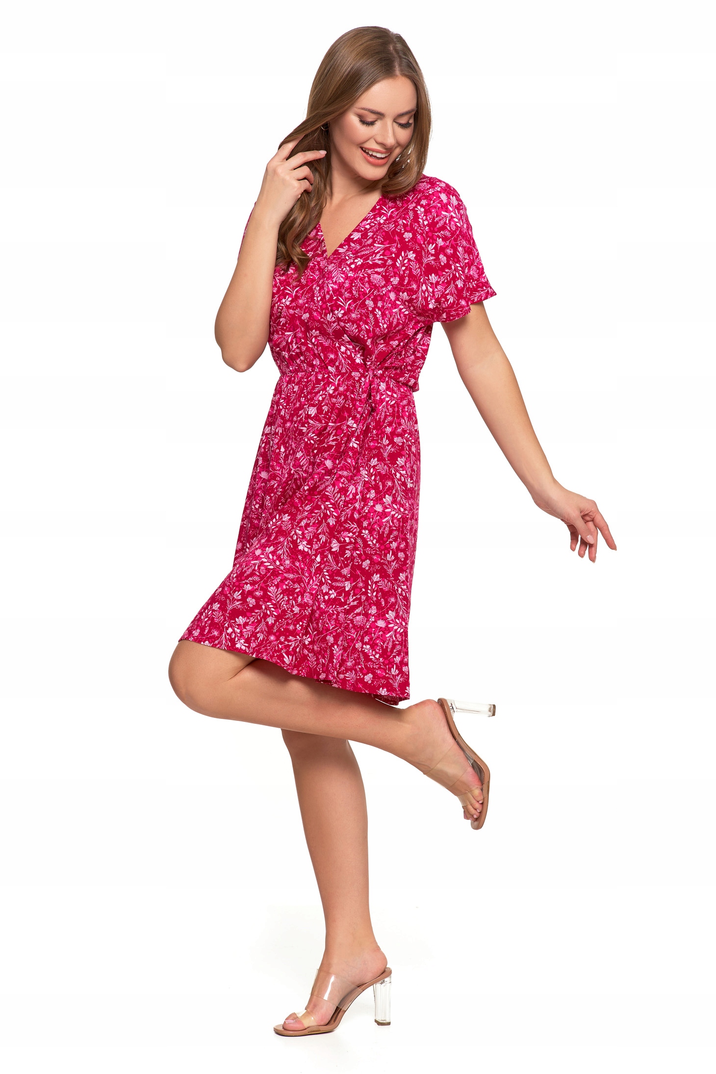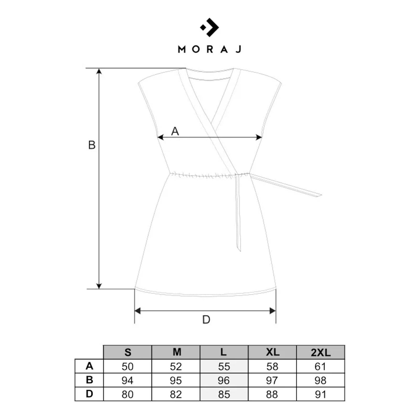 Stylowa i kobieca sukienka mini MORAJ to doskonały wybór na każdą okazję. Jej lekki, zwiewny materiał zapewnia komfort noszenia, a kopertowy dekolt pięknie podkreśla sylwetkę. Wiązanie w talii dodaje elegancji i pozwala na idealne dopasowanie, podkreślając kobiece kształty.