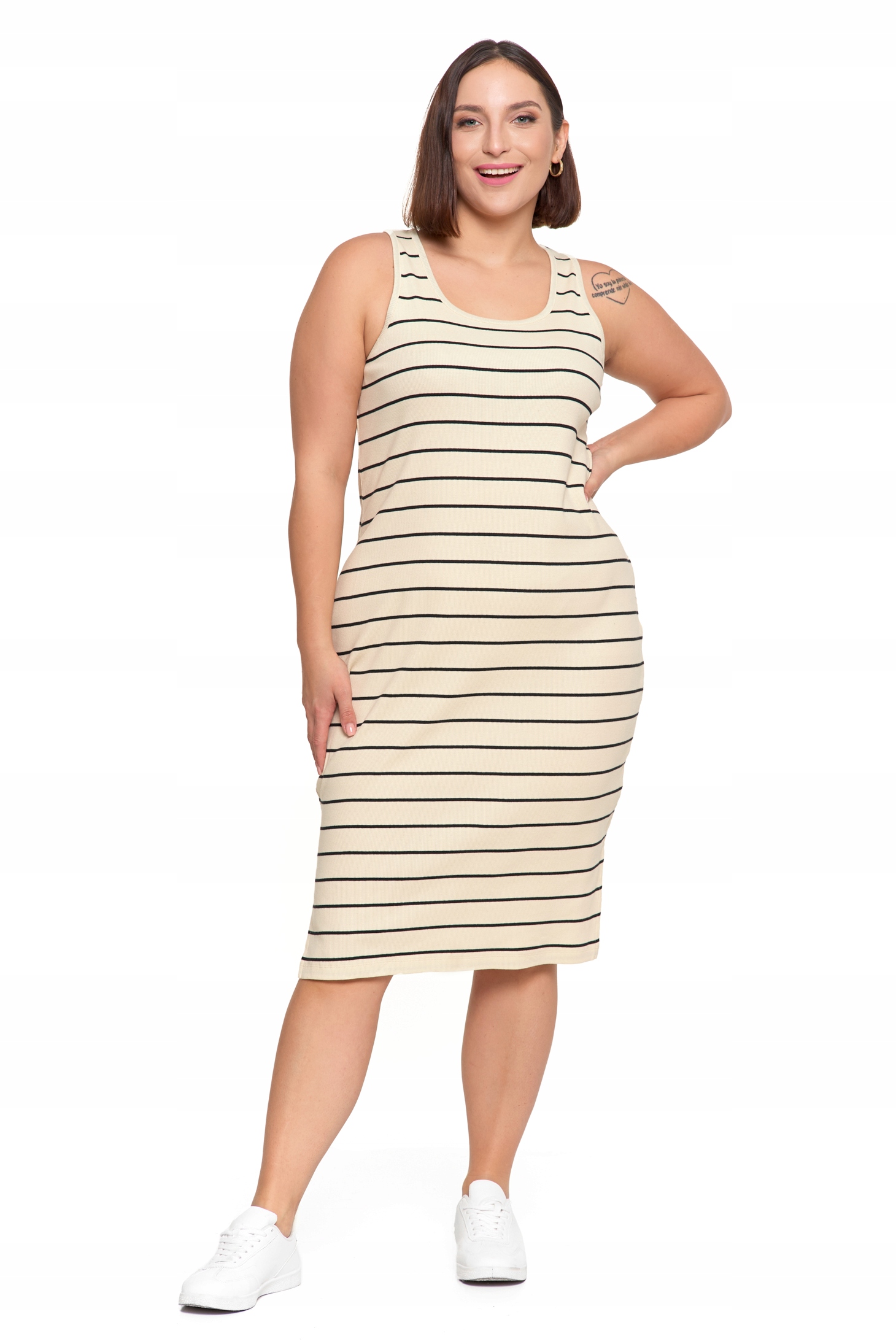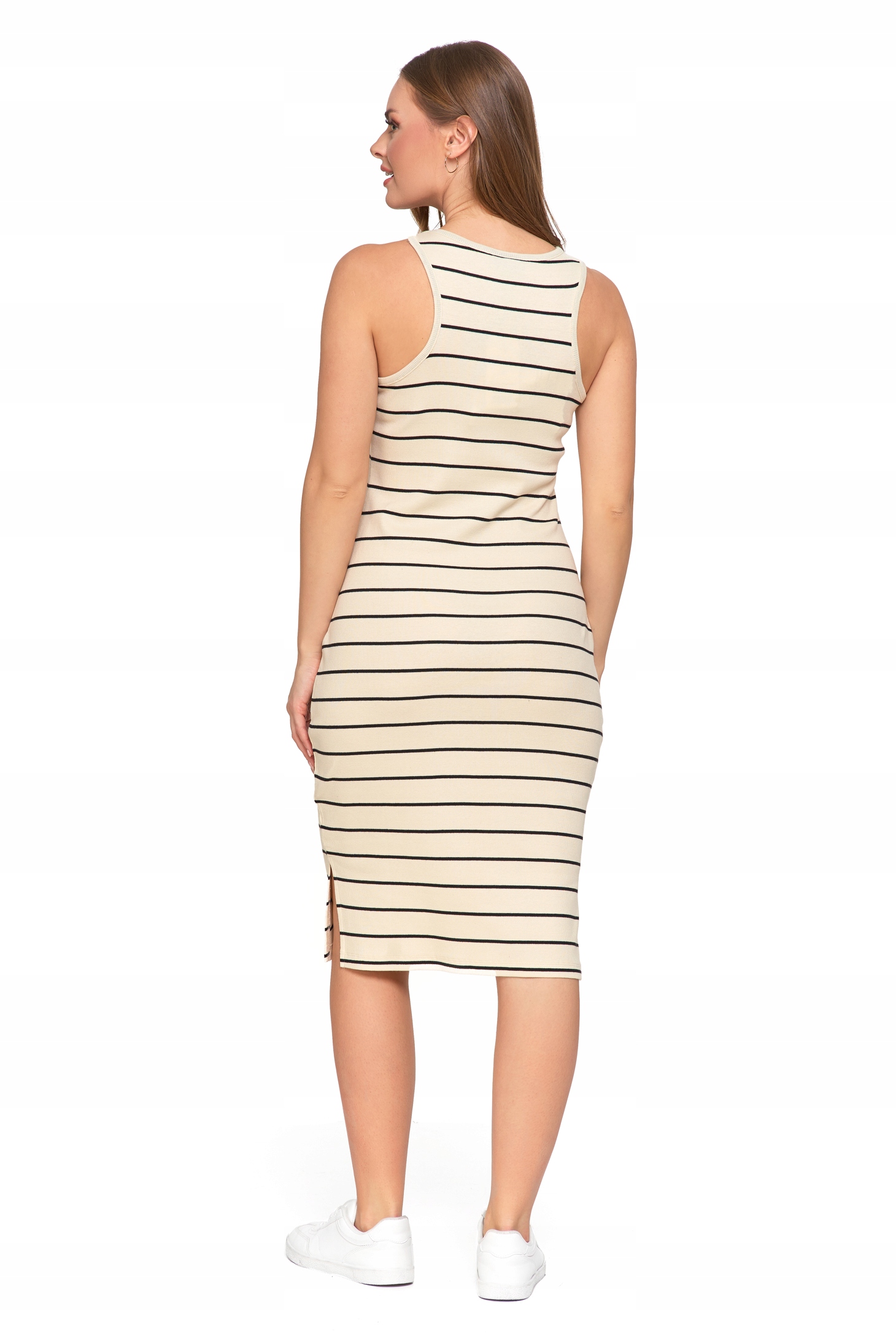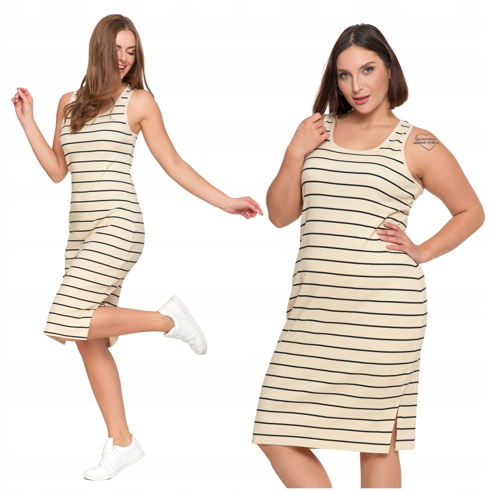 Sukienka Damska Prążkowana z Rozcięciami Prosta w Paski Na Lato MORAJ