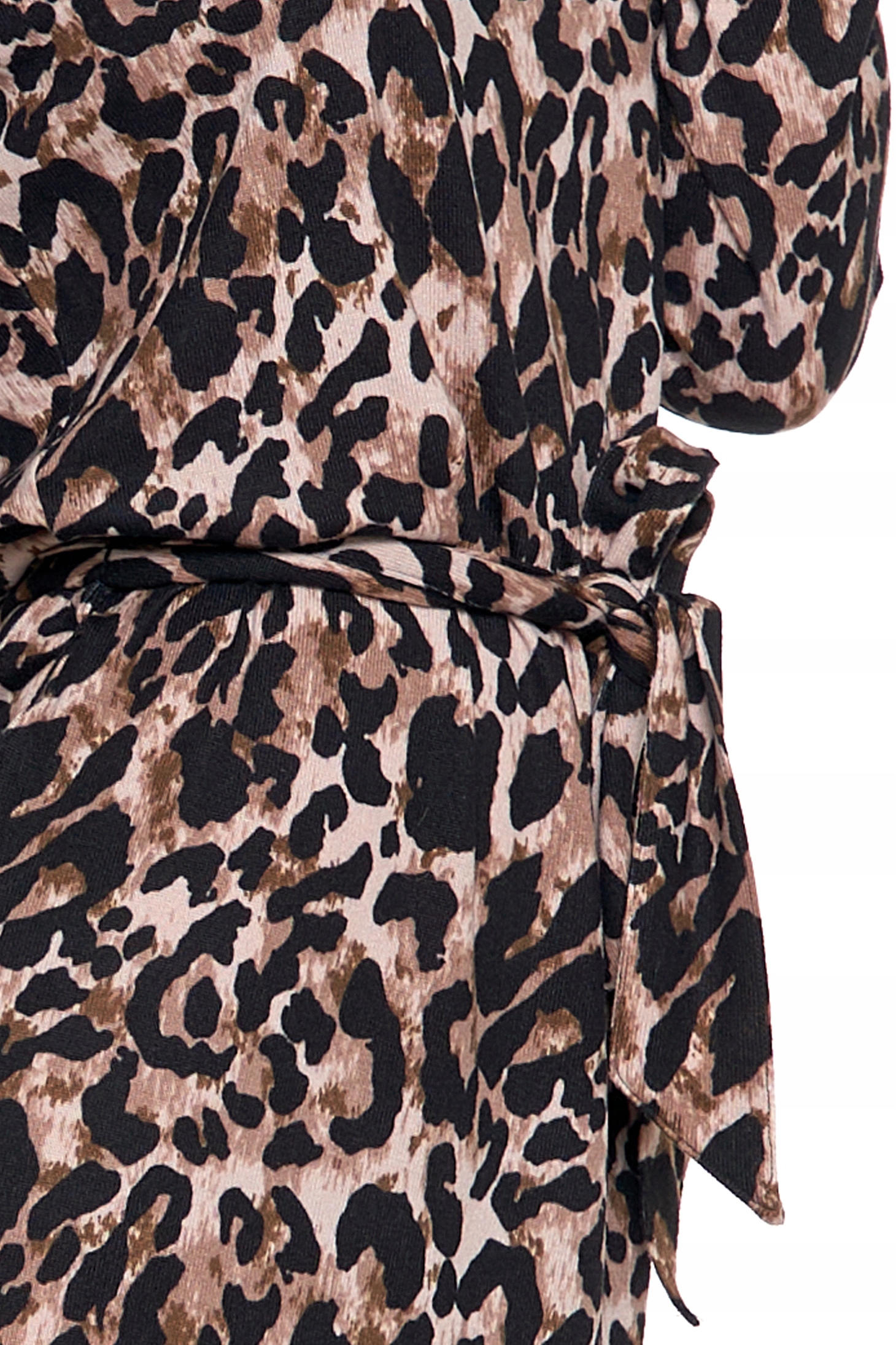 Sukienka Damska w Panterkę z Paskiem na Długi Rękaw przed Kolano MORAJ