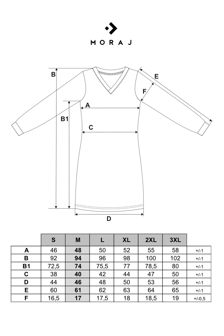 Sukienka wykonana jest z elastycznego, miękkiego materiału, który dopasowuje się do sylwetki, zapewniając komfort noszenia przez cały dzień. Długi rękaw doskonale sprawdzi się na chłodniejsze dni, dodając kreacji uniwersalnego charakteru. Model ma długość przed kolano, co czyni ją elegancką, ale również wygodną w noszeniu. Dodatkowo sukienka posiada pasek wiązany w talii, który pozwala na podkreślenie kobiecej sylwetki i indywidualne dopasowanie do figury.