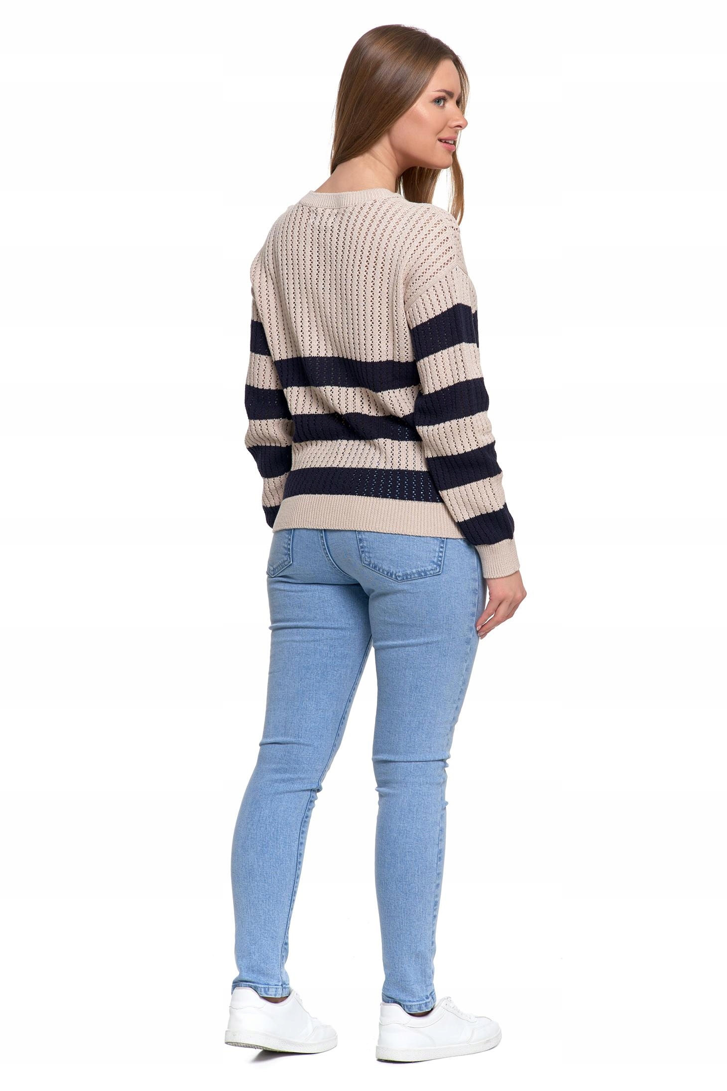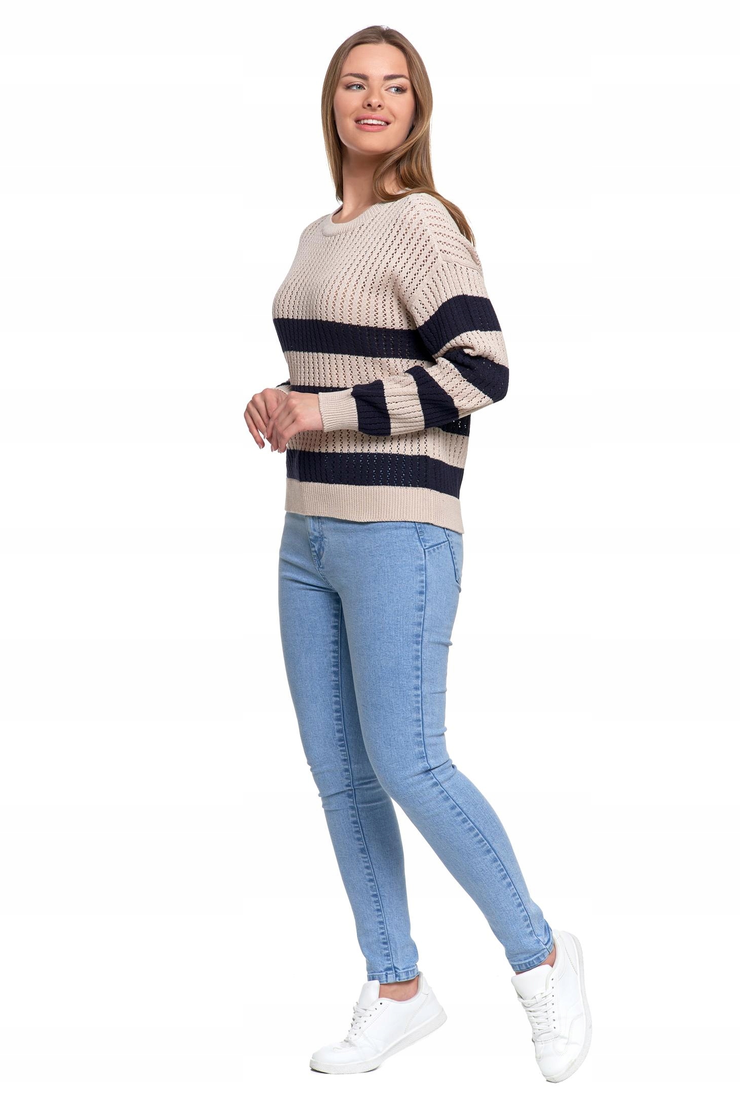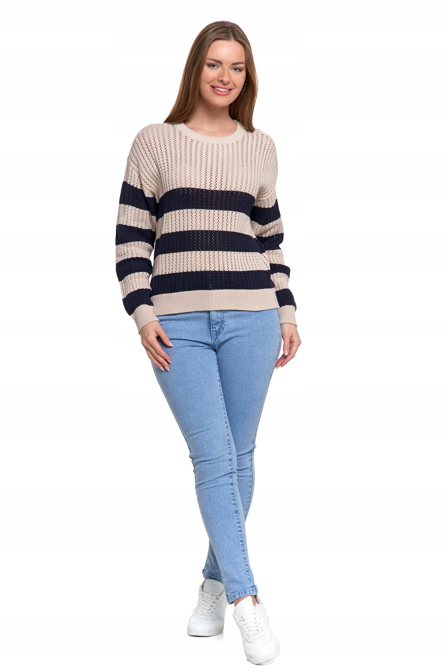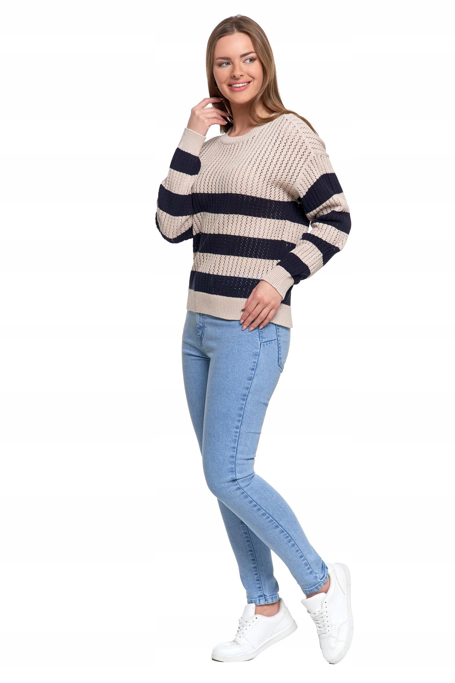 Sweter Damski Ażurowy Delikatny Sweterek w Paski Modny Wzór Kolor MORAJ